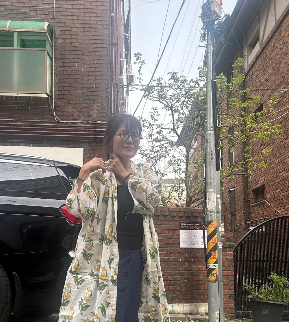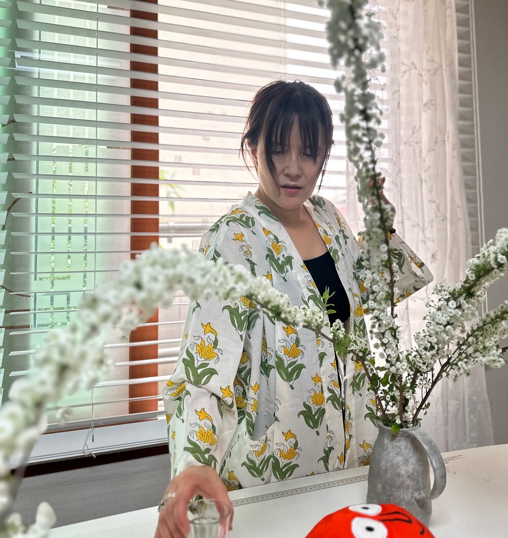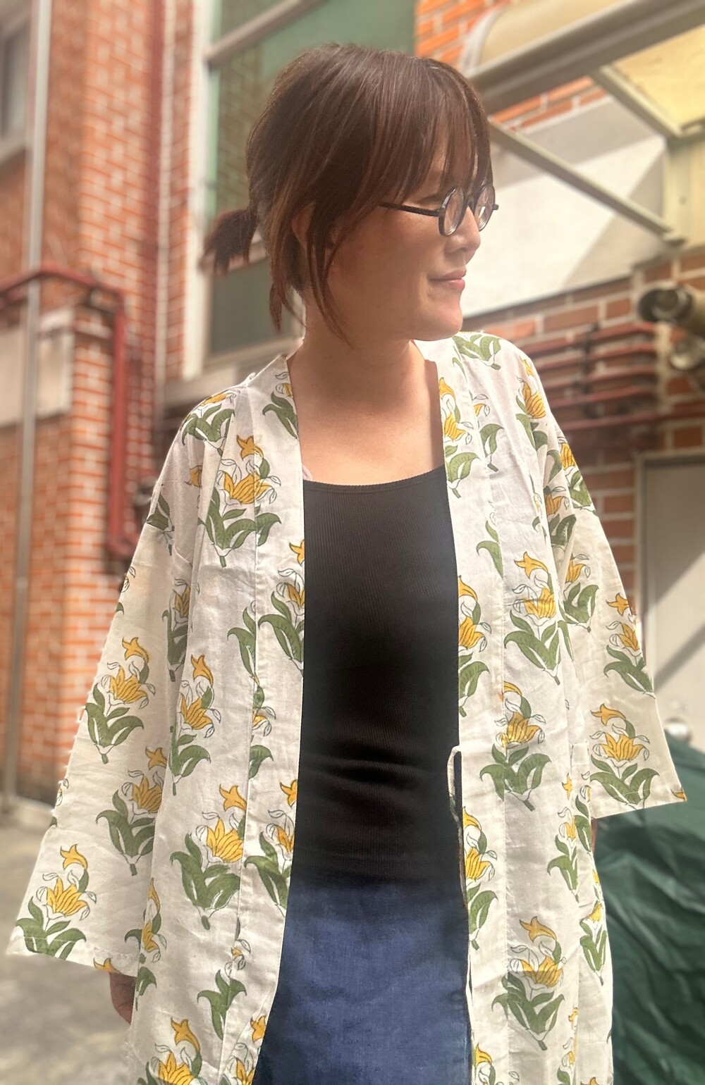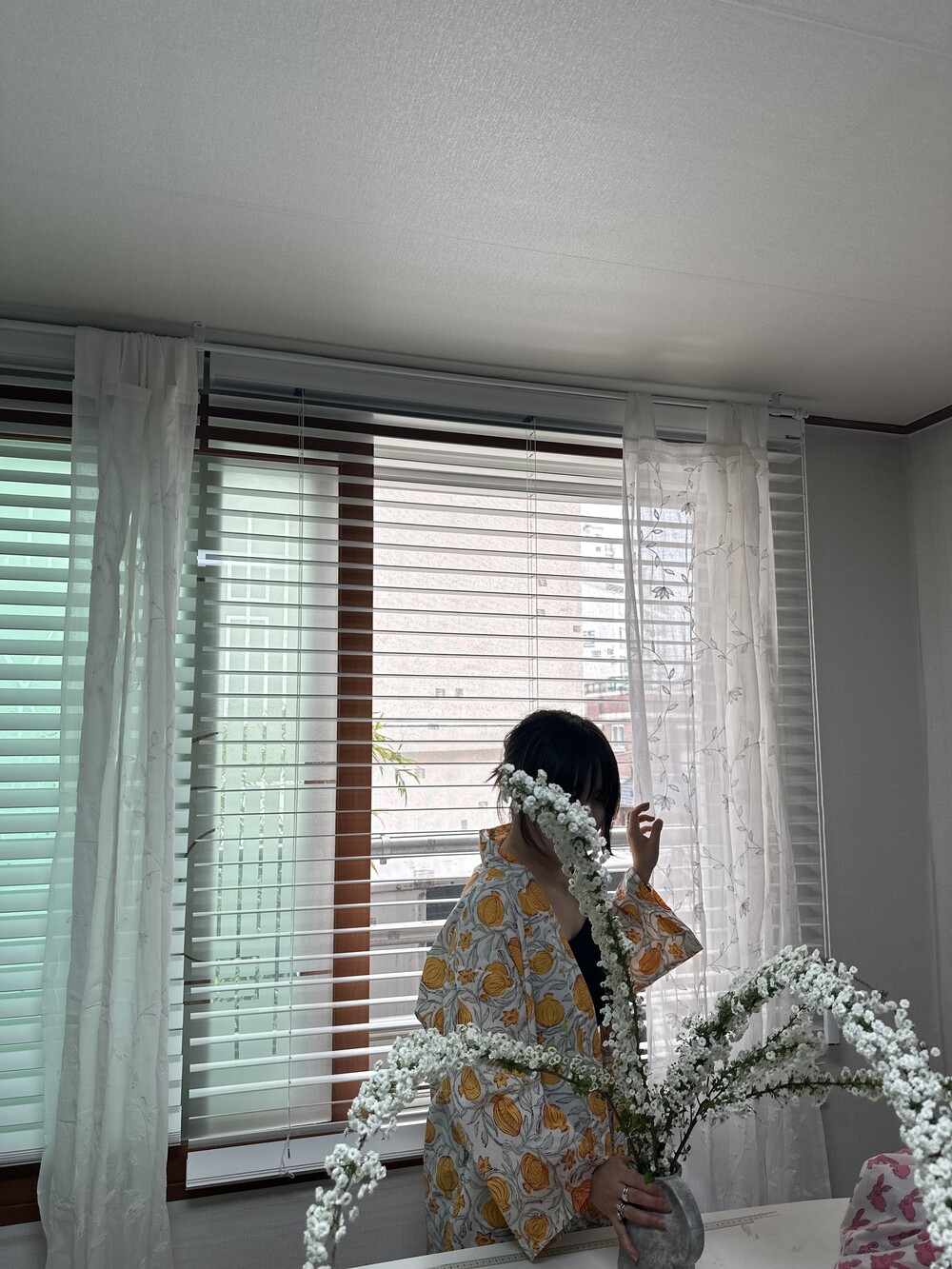 로브는 손목이 나오게 입어야 젤 예뻐요.손목 나오는 기장과 드레시한 느낌의 패턴으로 기장은 115-118정도에요. 기장이 좀 더 짧으면 좋겠다하시면 기장을 메모해주세요❤️ 면 백퍼센트이고 정말 사랑스러운 수선화와 석류 청화뱍자에요❤️