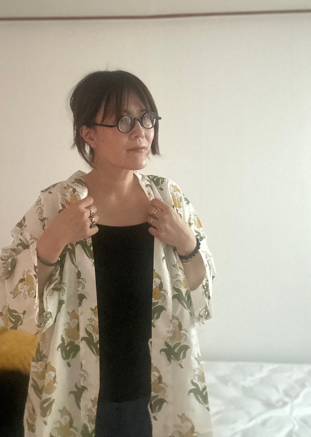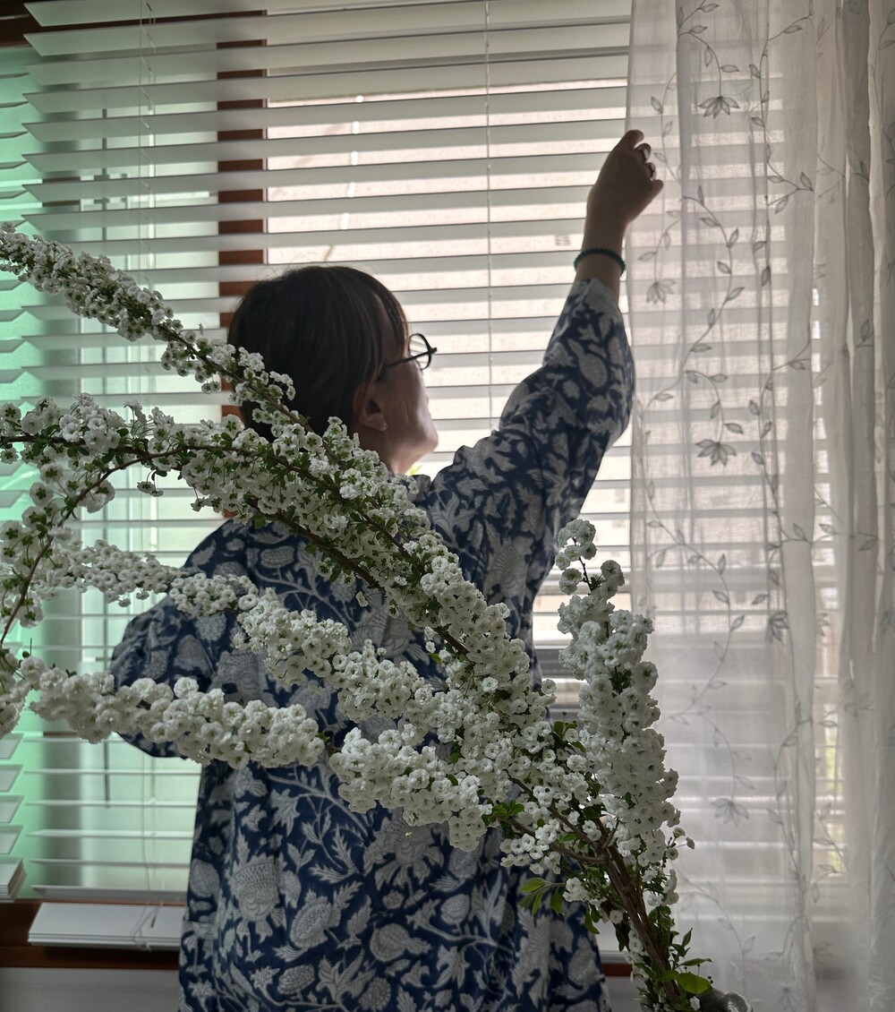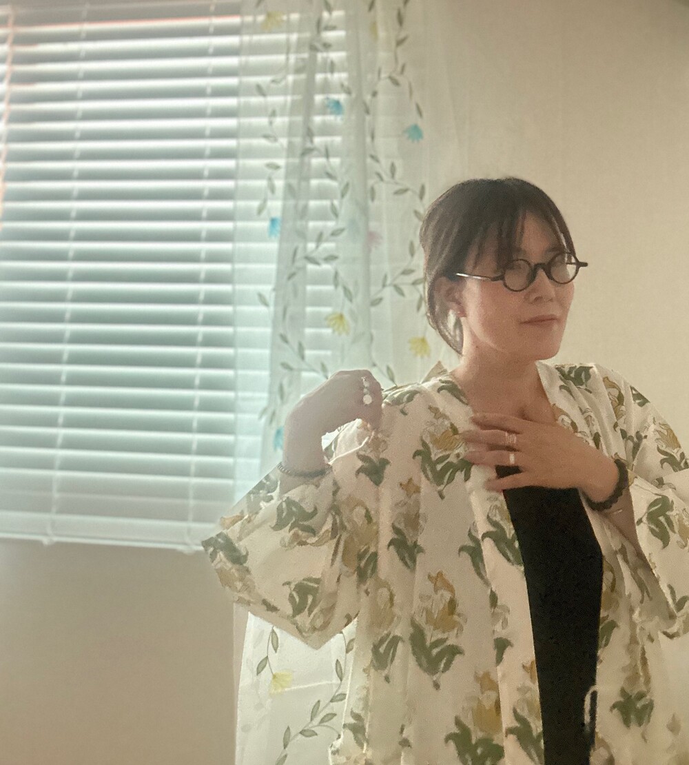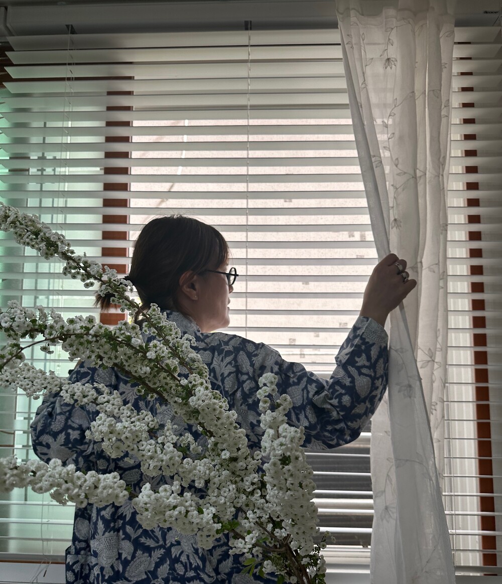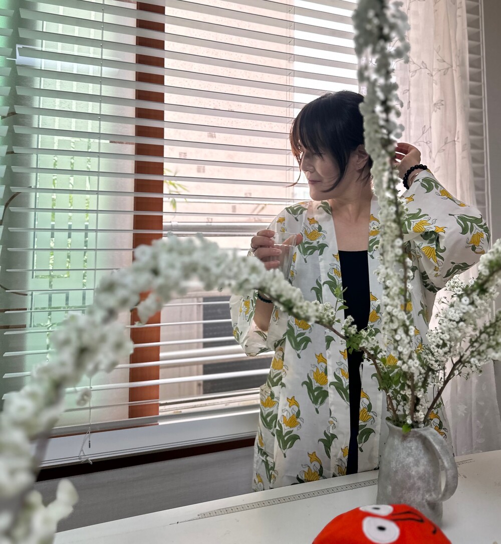 로브는 손목이 나오게 입어야 젤 예뻐요.손목 나오는 기장과 드레시한 느낌의 패턴으로 기장은 115-118정도에요. 기장이 좀 더 짧으면 좋겠다하시면 기장을 메모해주세요❤️ 면 백퍼센트이고 정말 사랑스러운 수선화와 석류 청화뱍자에요❤️