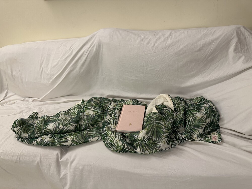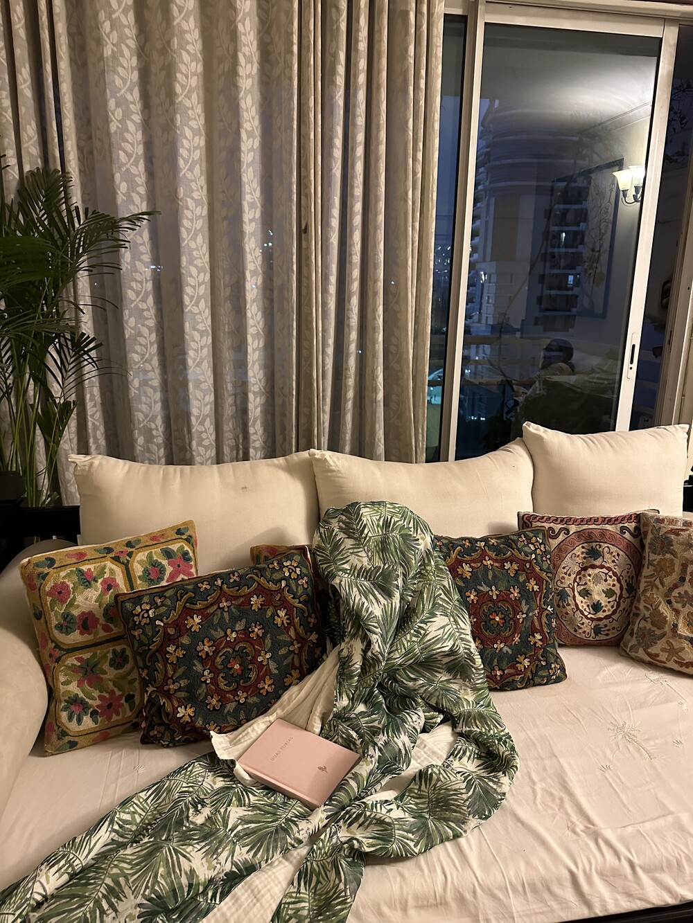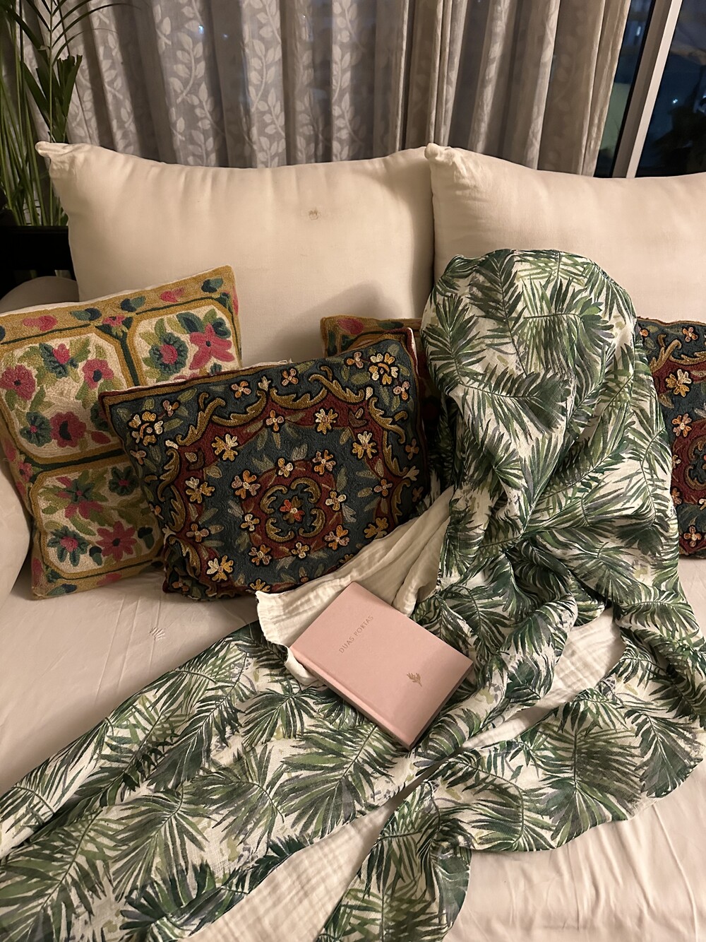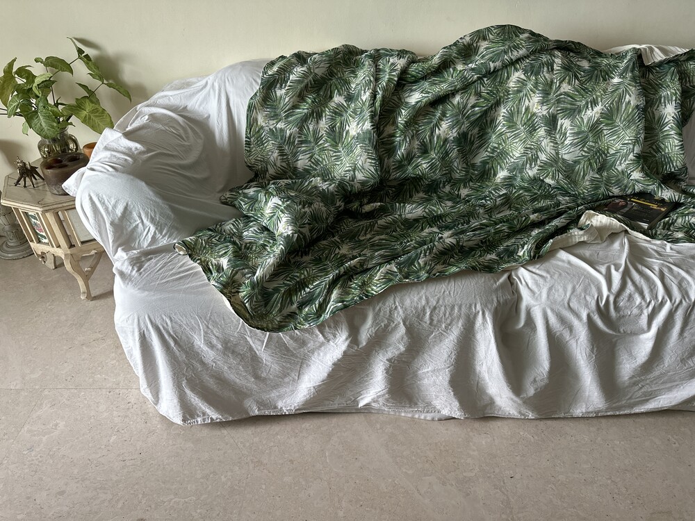 린넨과 삼중거즈 조합의 150*200사이즈의 이불이에요.눈으로 바라만 보고 있어도 좋죠.방구석 여행자를 하고픈 마음❤️책한권들고 소파에 누워 뒹굴뒹굴,