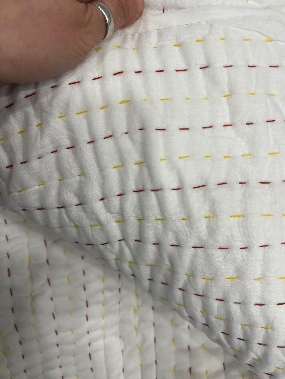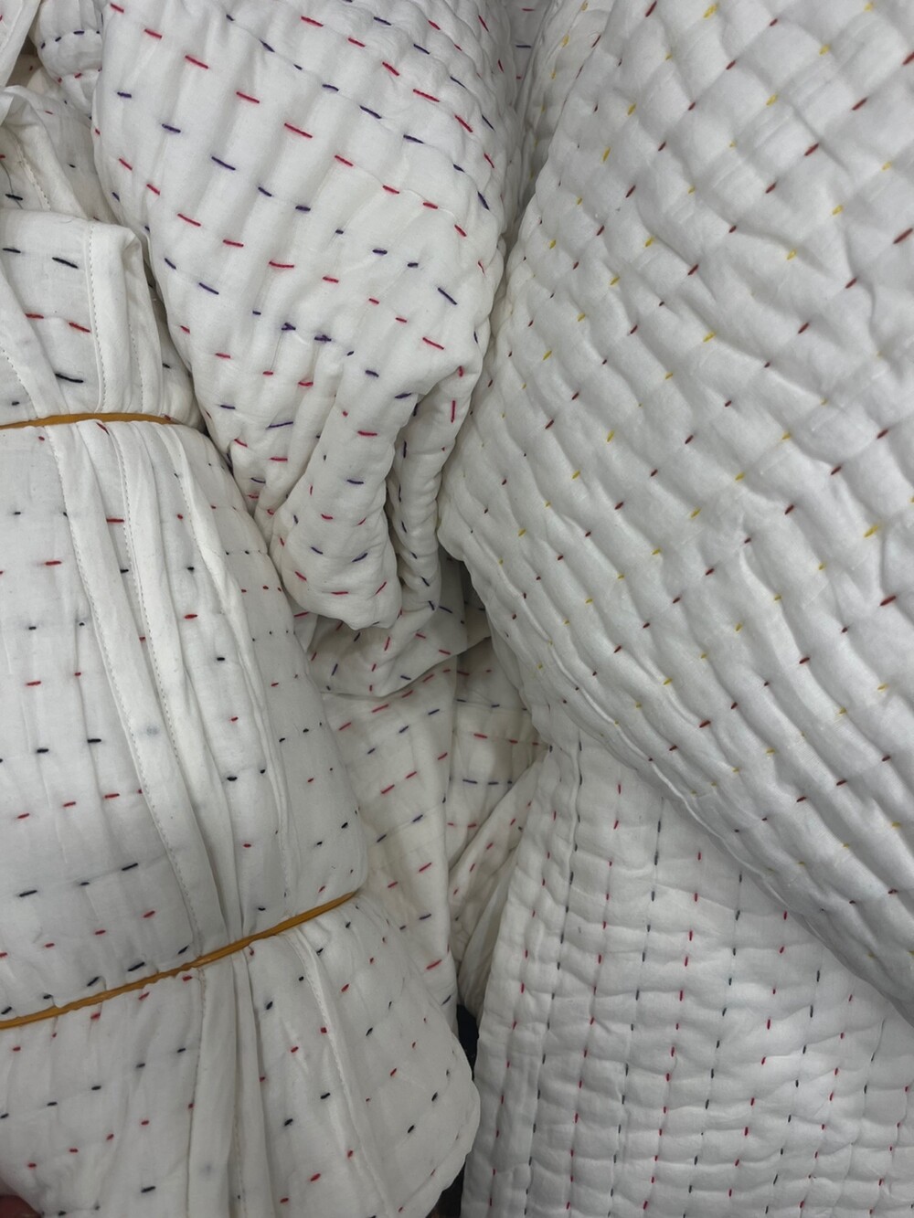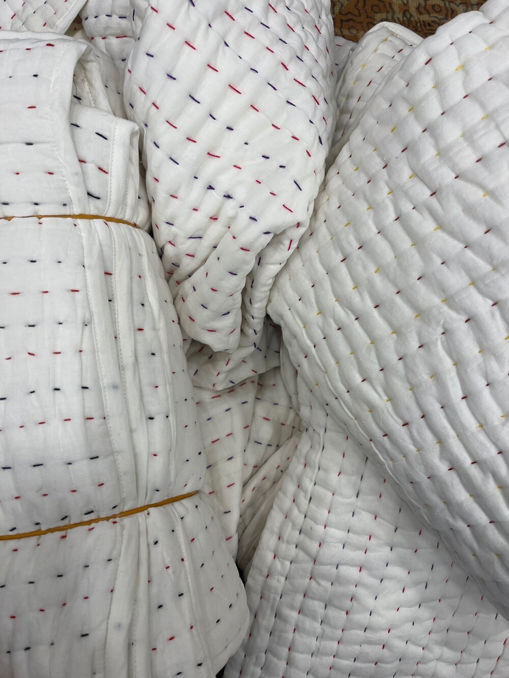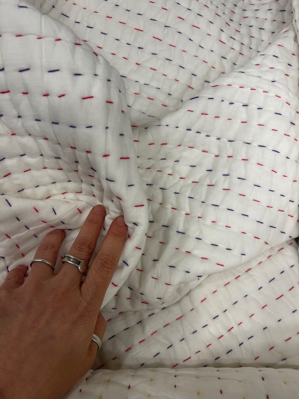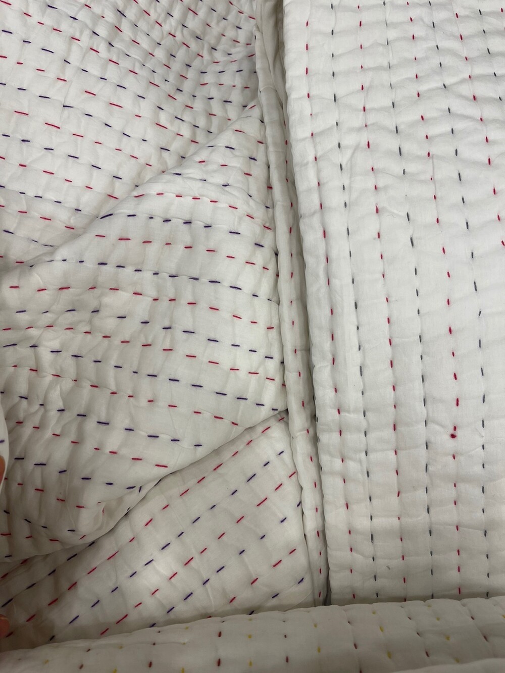 겨울이외에는 홑이불로 덮으셔도되고 겨울엔 폭삭하게 깔고 누우심 손바느질의 느낌도 아주좋아요.