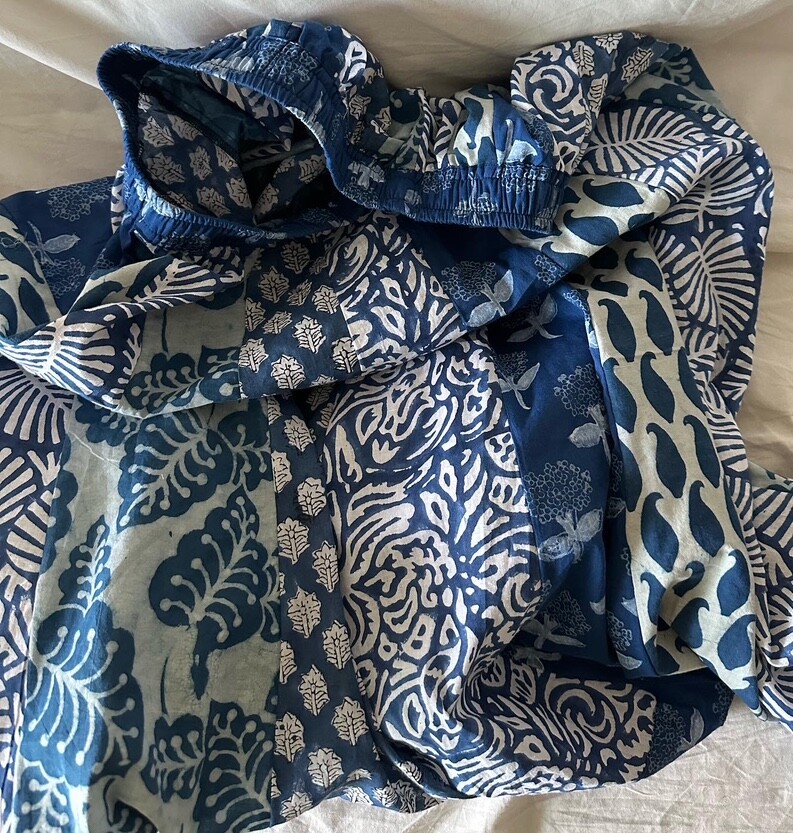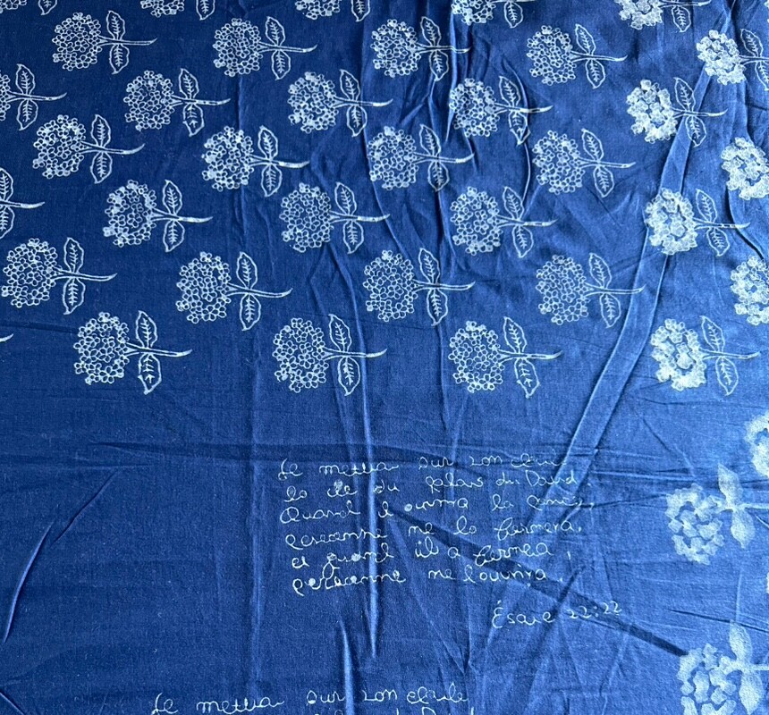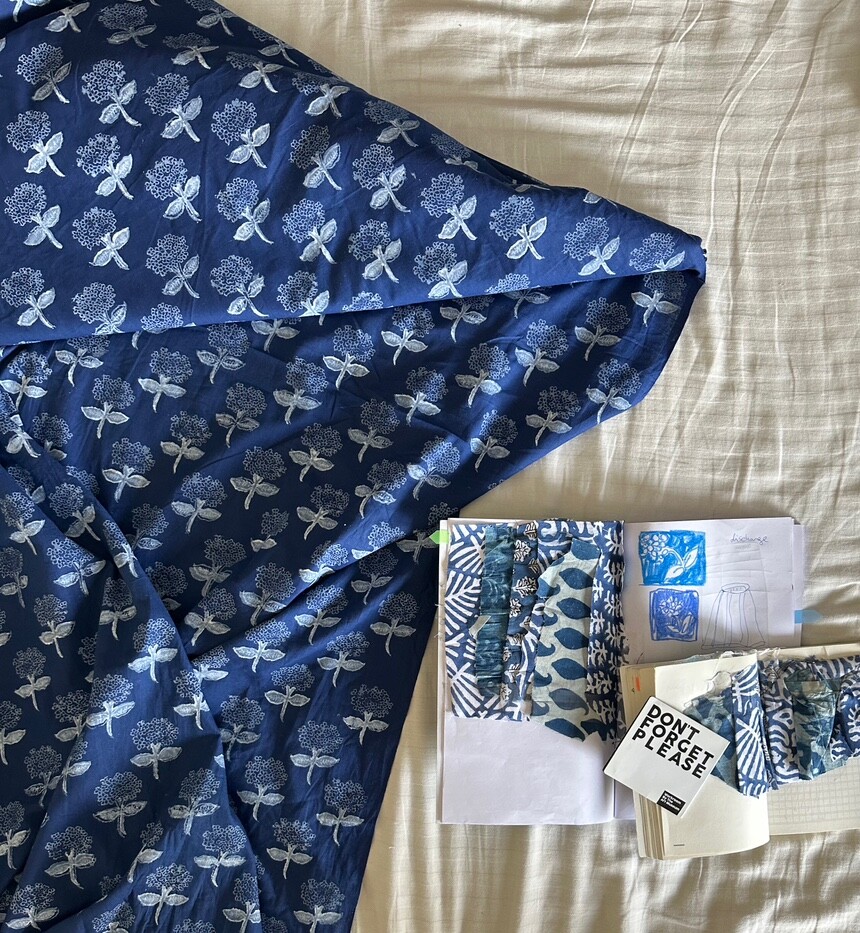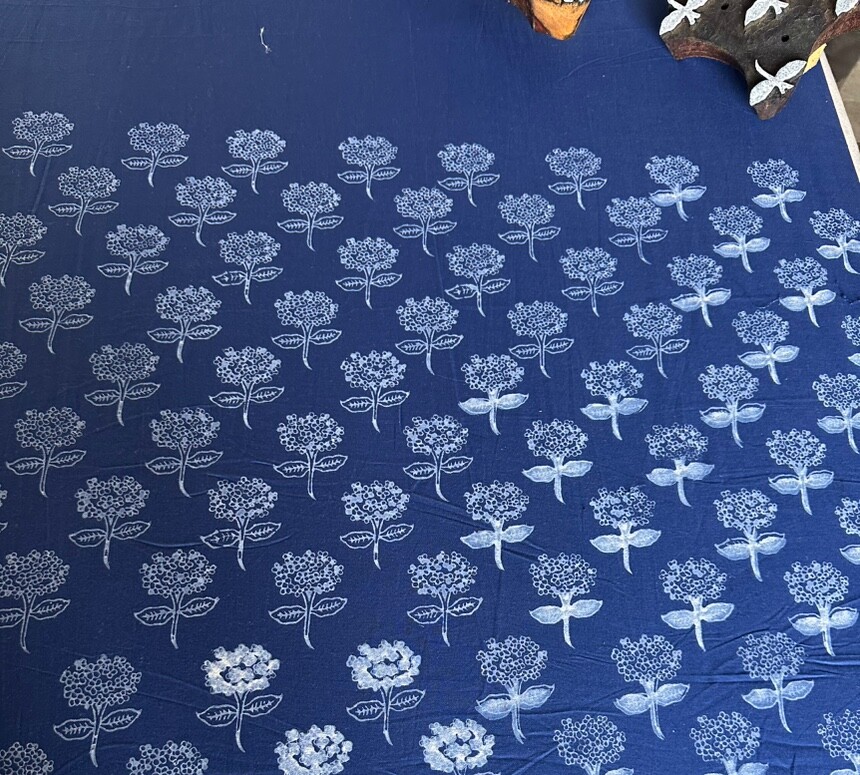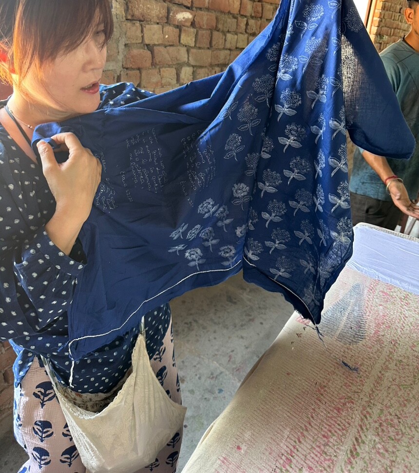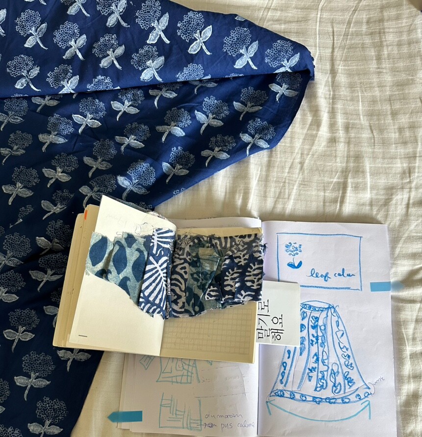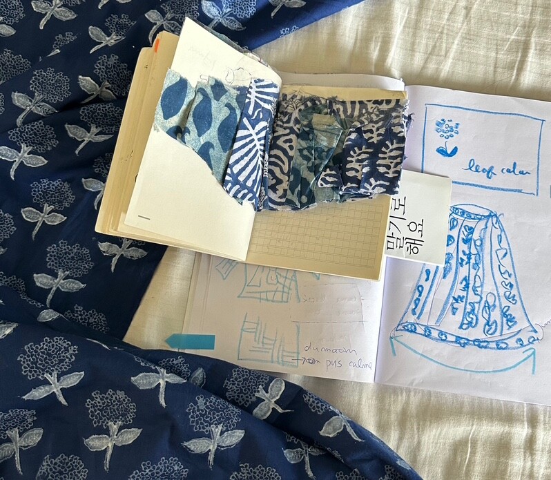 저의 그림으로 수국 프린트를 만들었어요 귀엽죠,인디고는 단독세탁이에요❤️