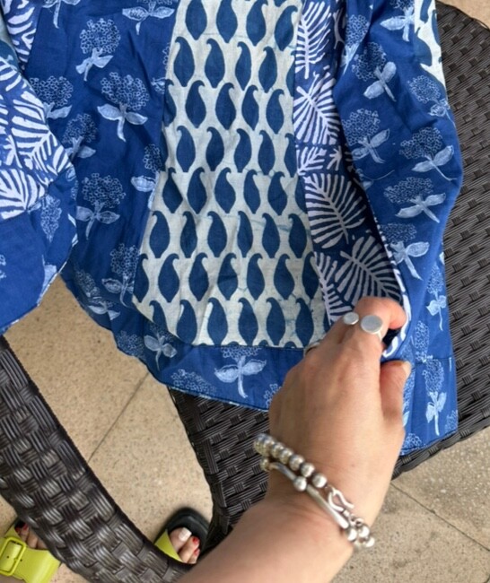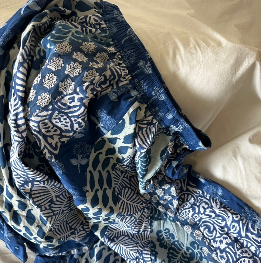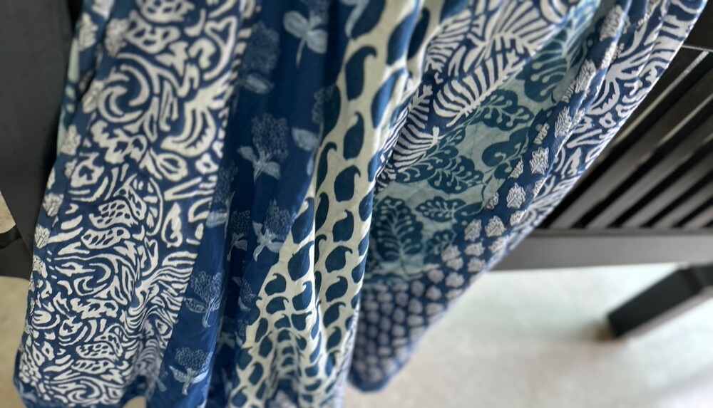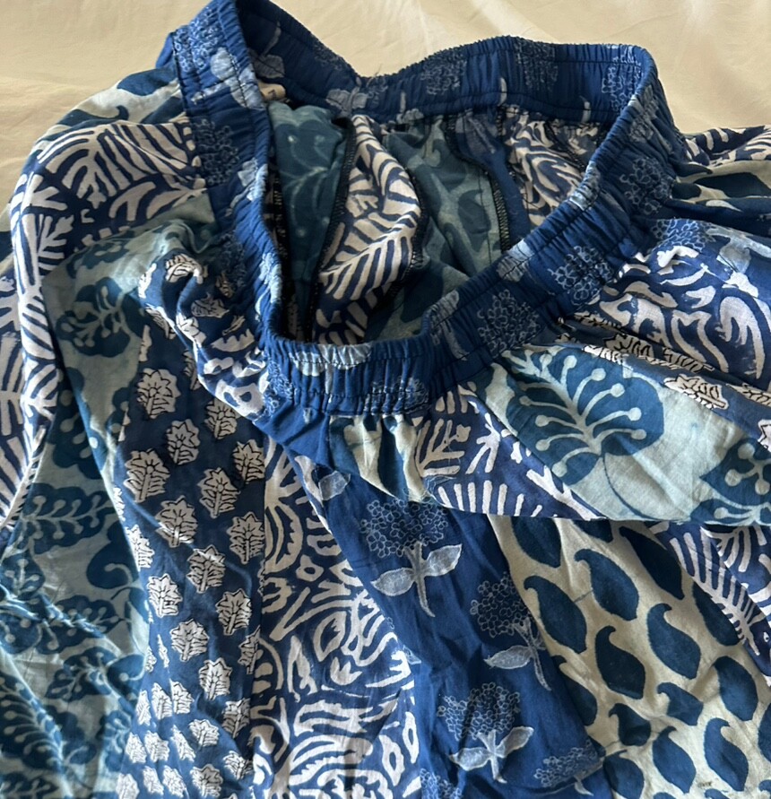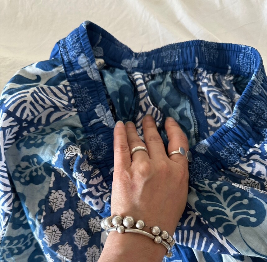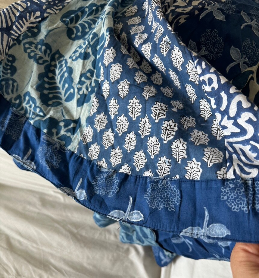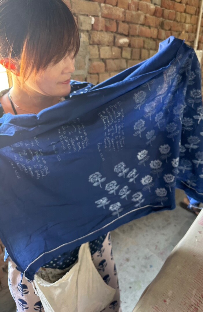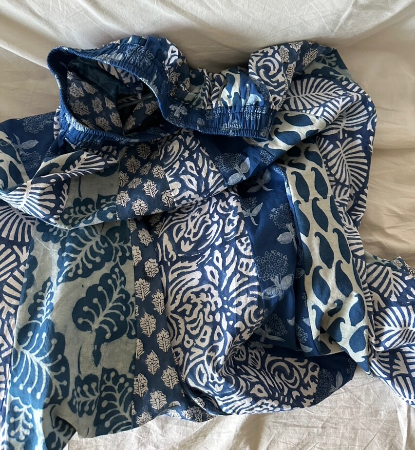 저의 그림으로 수국 프린트를 만들었어요 귀엽죠,인디고는 단독세탁이에요❤️