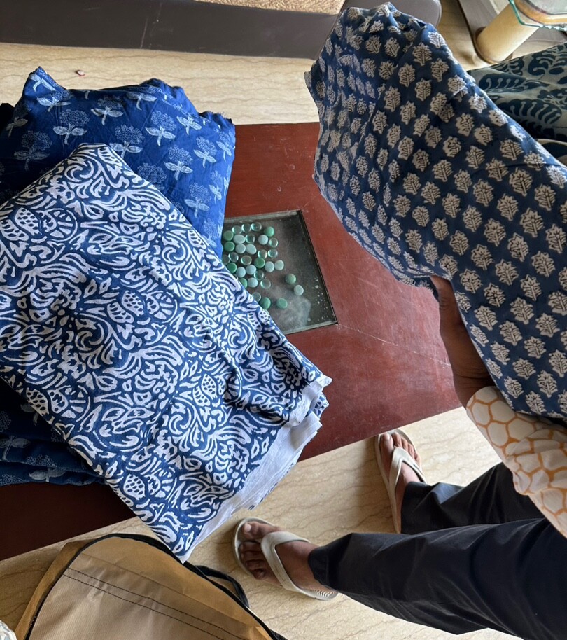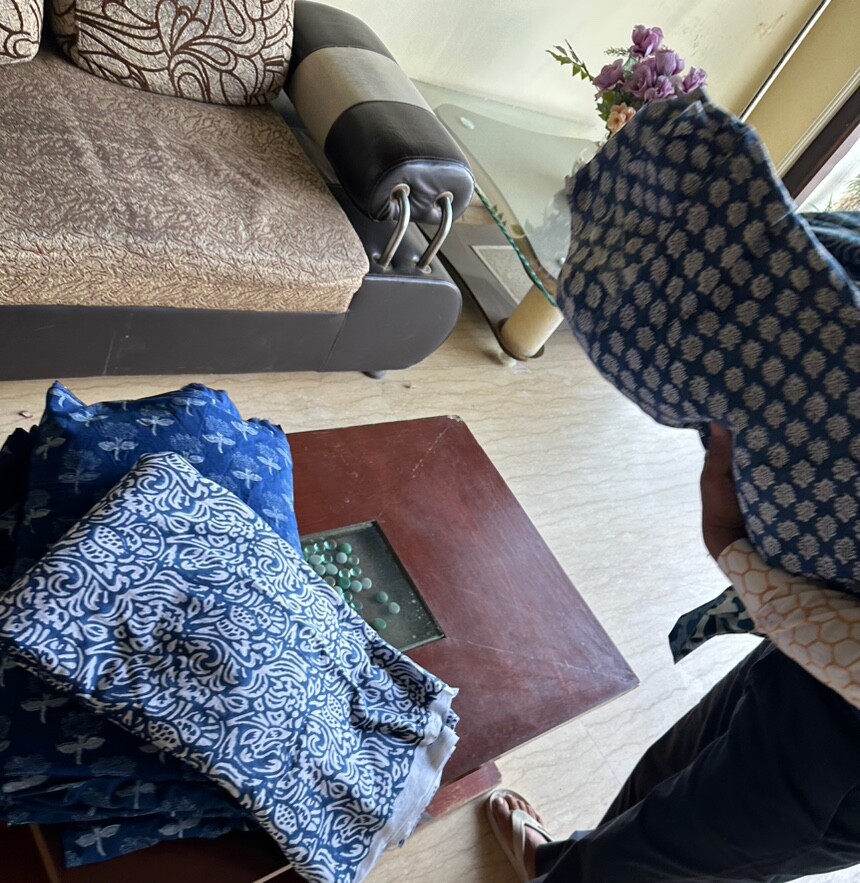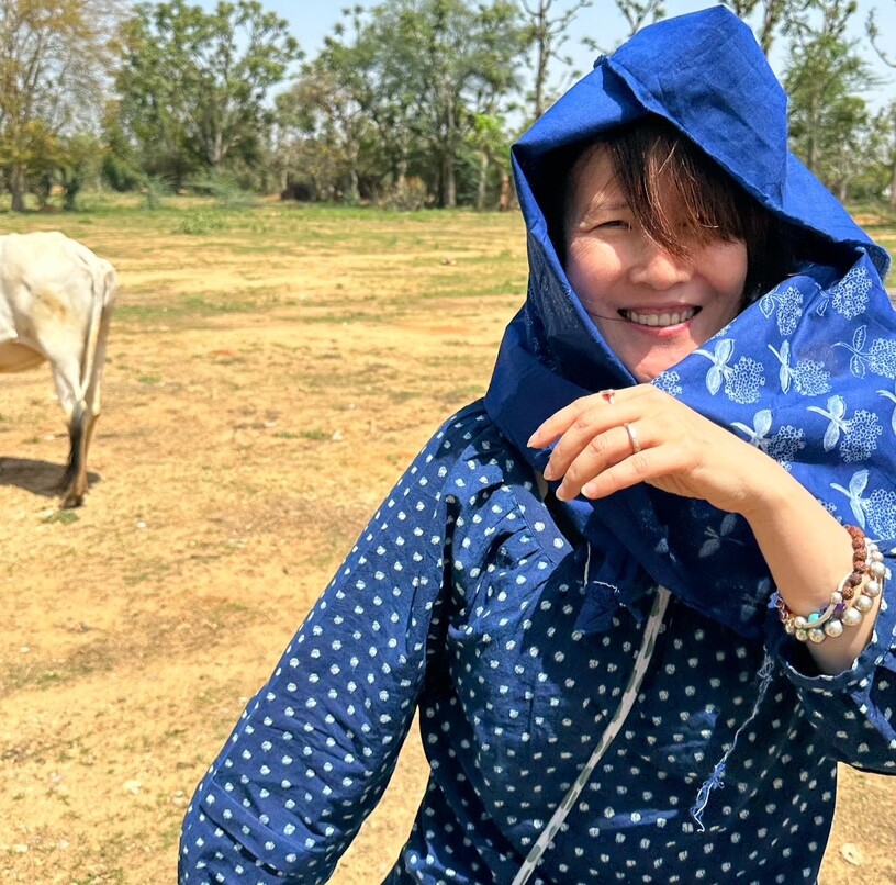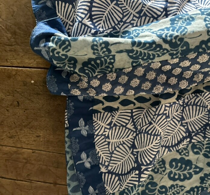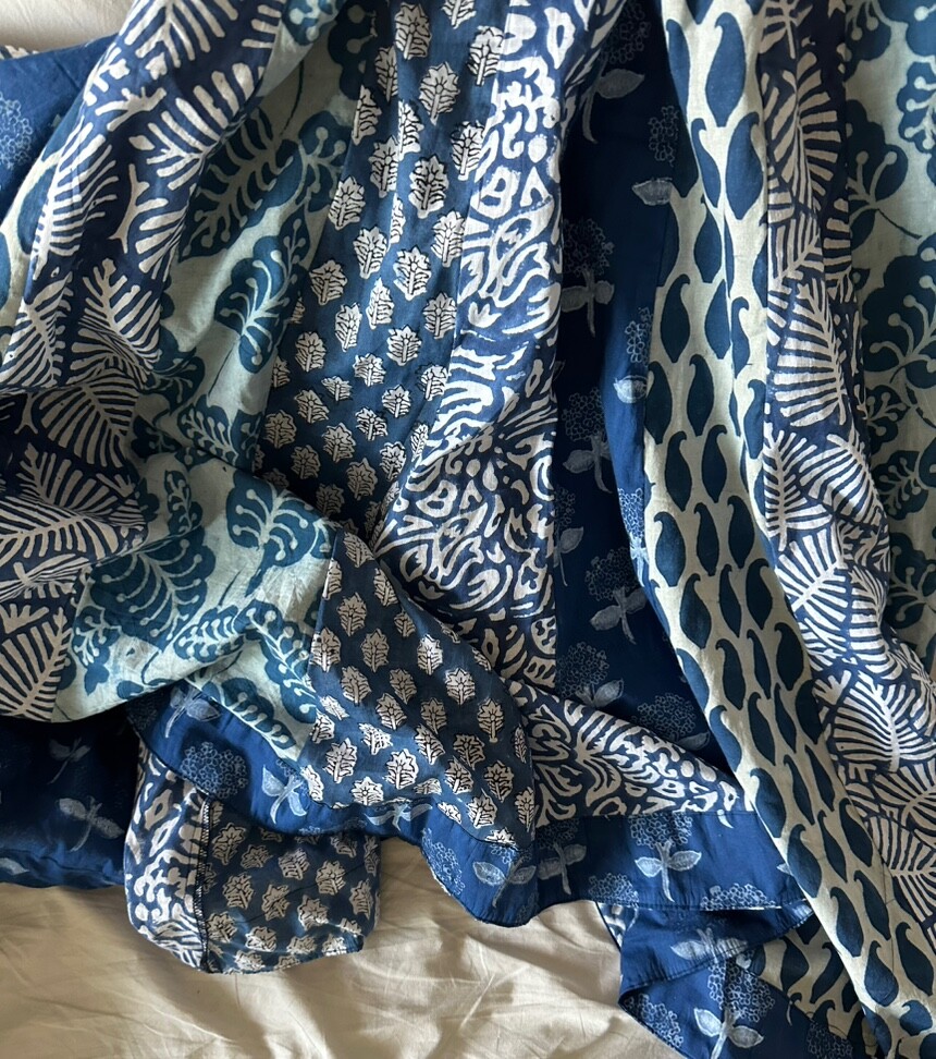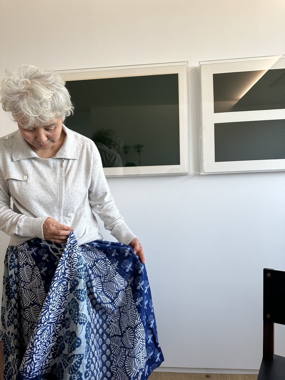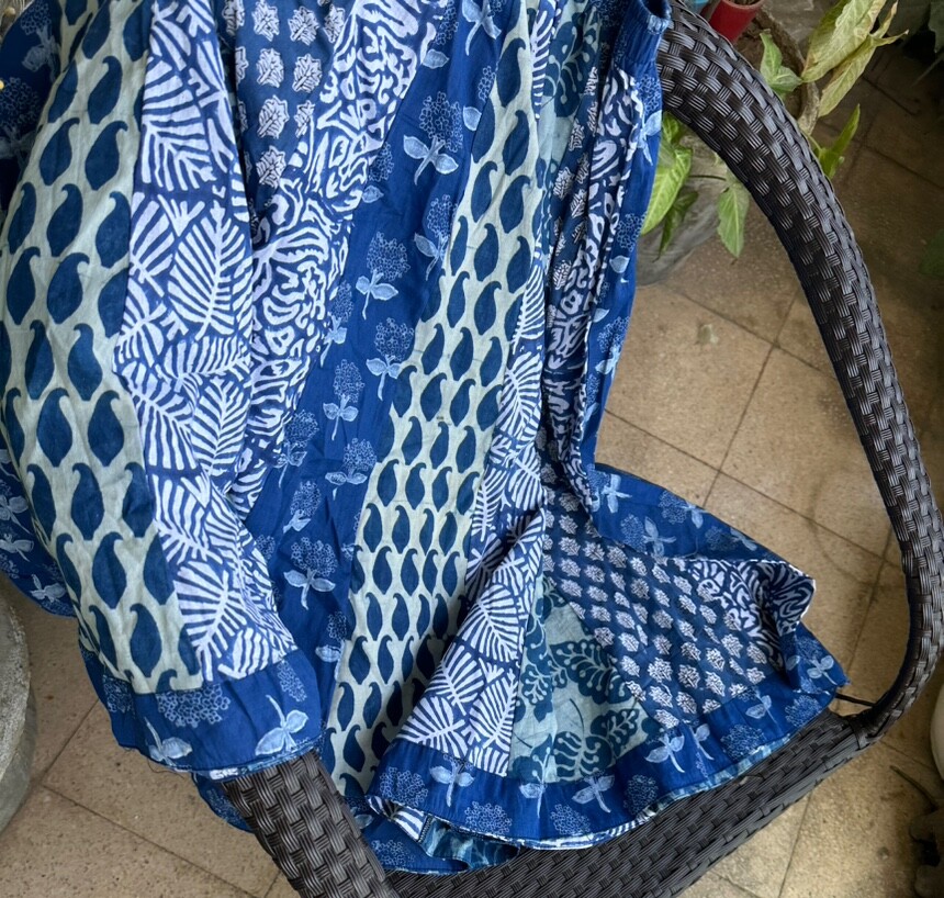 저의 그림으로 수국 프린트를 만들었어요 귀엽죠,인디고는 단독세탁이에요❤️