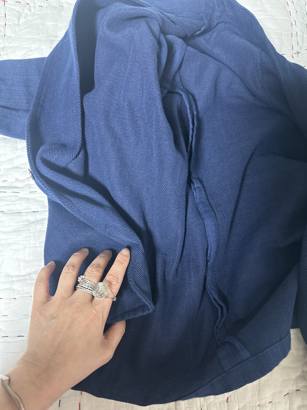 정말 구하기 힘든 귀한소재에요❤️ 인디고 소재로 이염이있으니 세탁법준수해주시고 흰옷과 매칭보다는 어두운톤과의 매칭이좋고 혹여 세탁하셨거나 이염이 있으셔서 불편한점은 상담가능하지만 세탁이후제품은 환불이 힘든점 부탁드립니다