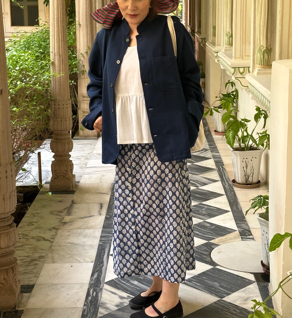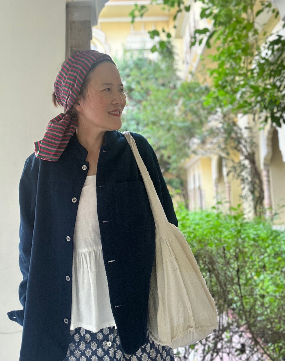 직기로 짠 handloom linen으로 마치 촉촉한 면의 느낌이에요. 가을부터 쭉 잘입으실거에요.넉넉한 맘으로 기다려주세요.