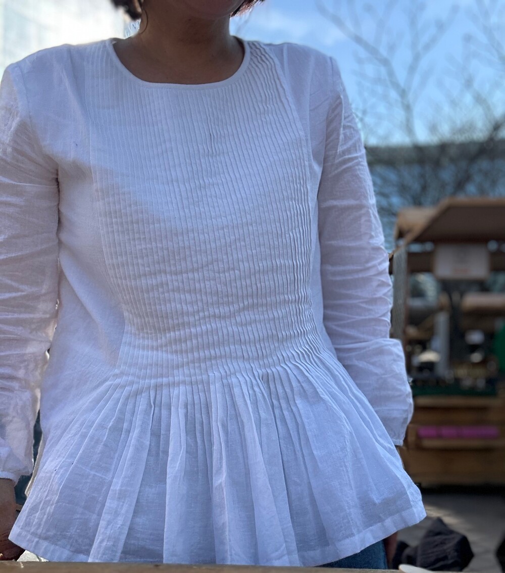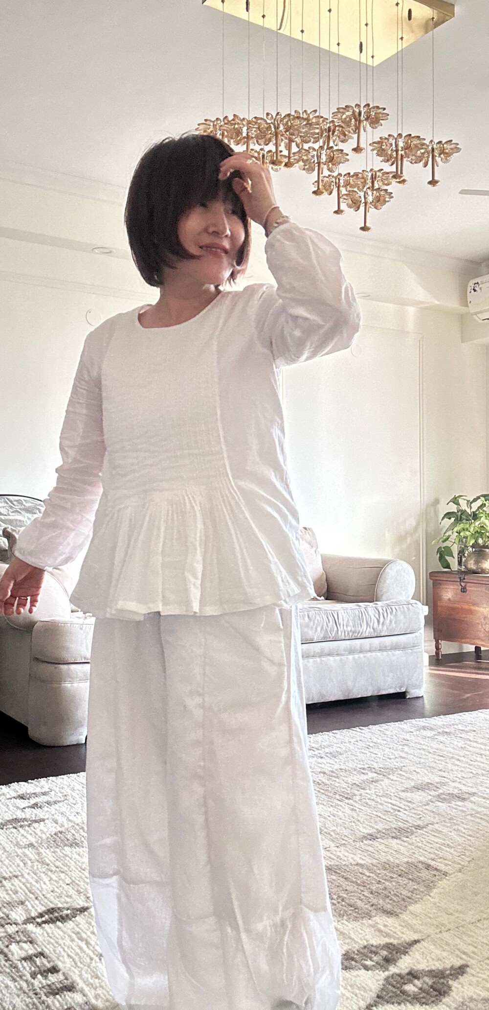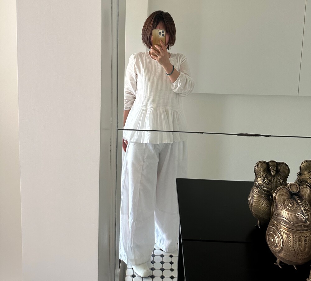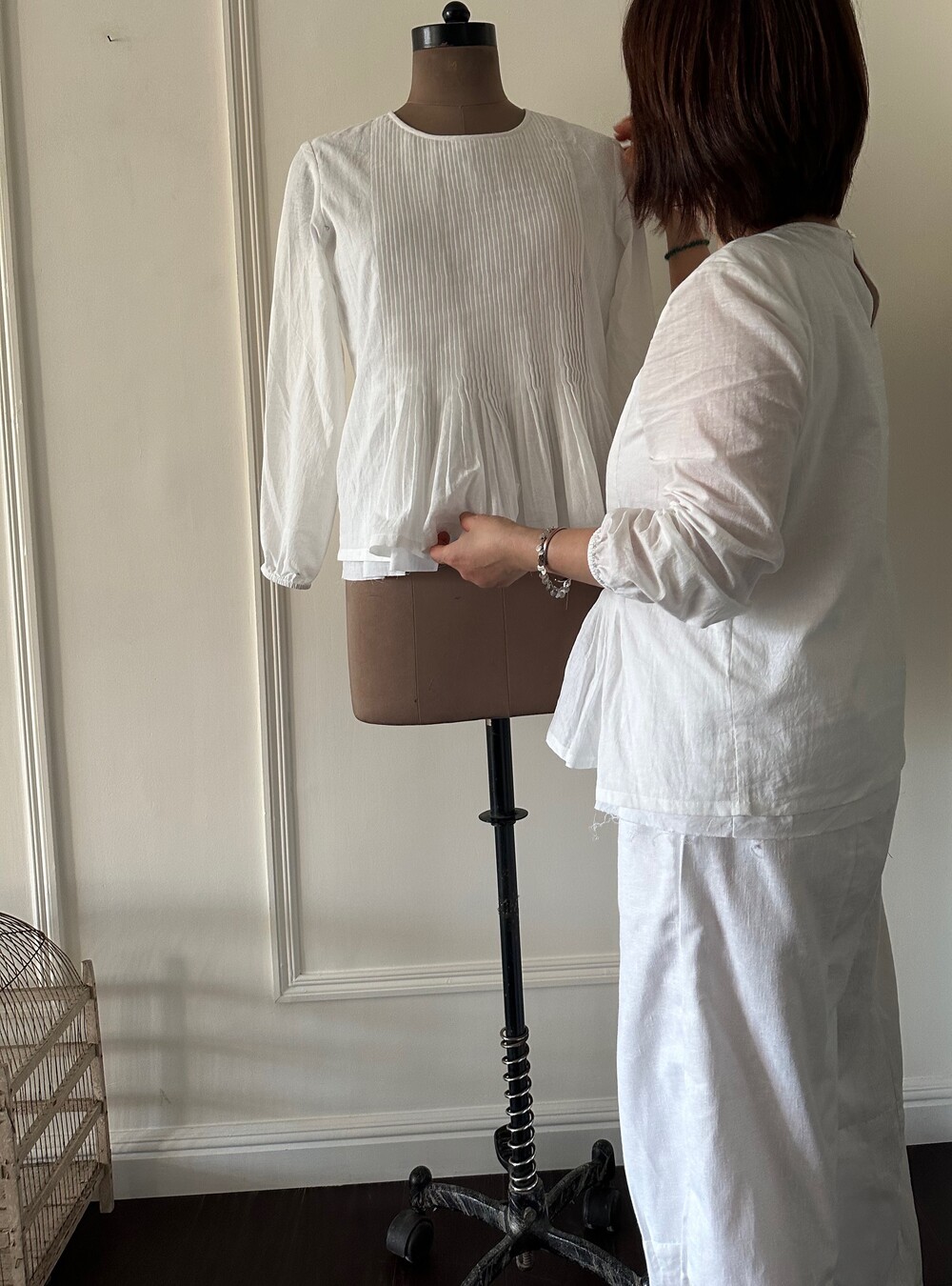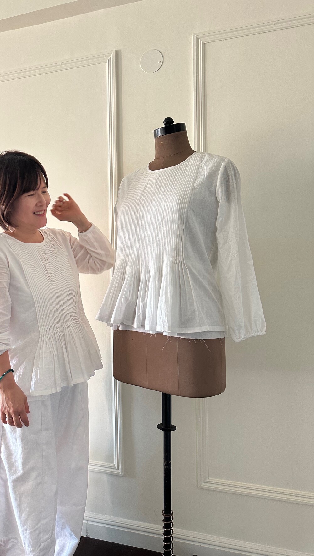 18세기 산업혁명과 프랑스 혁명은 산업을 발달시키고 유럽인의 시민의식을 높였는데 귀족 위주의 바로크.로코코 스타일에서 고대그리스 로마문화의 고전적 양식에서 이상적인 아름다움을 추구하고자했는데 그개 바로 신고전주의,사치스럽고 불편한 옷보다는 나풀거리는 얇은천으로 여성의 곡선미를 드러낸것이 바로 앰파이어 스타일,이 앰파이어 스타일을 아름답게 표현할수있었던 옷감이 바로 머슬린이었답니댱.유러피언들에게 꿈의 옷감이었던 그 머슬린으로 아름다운 핀턱 화이트를 만들어보았어요. ❤️