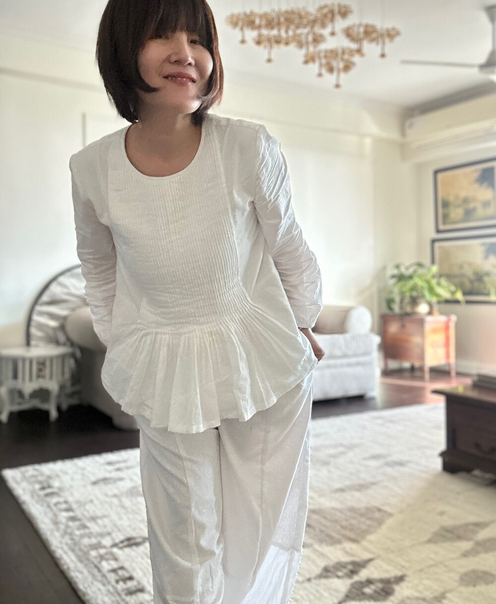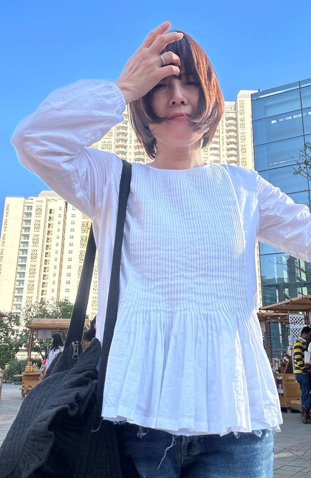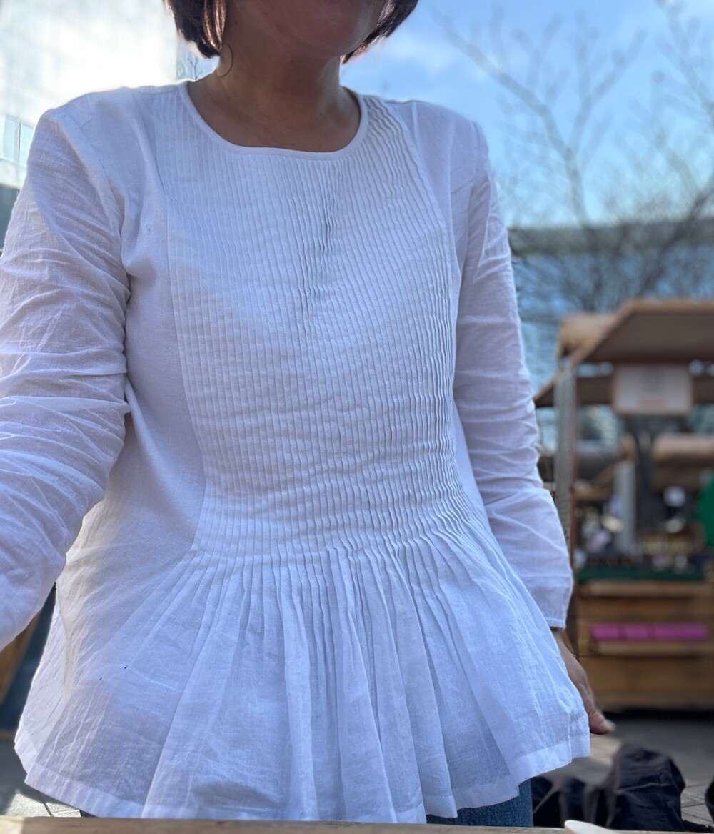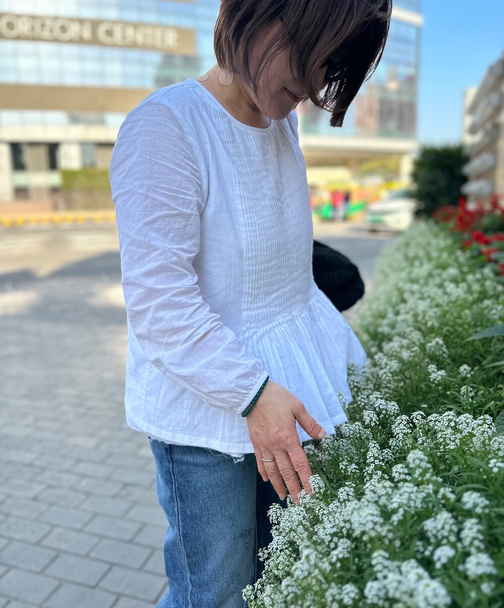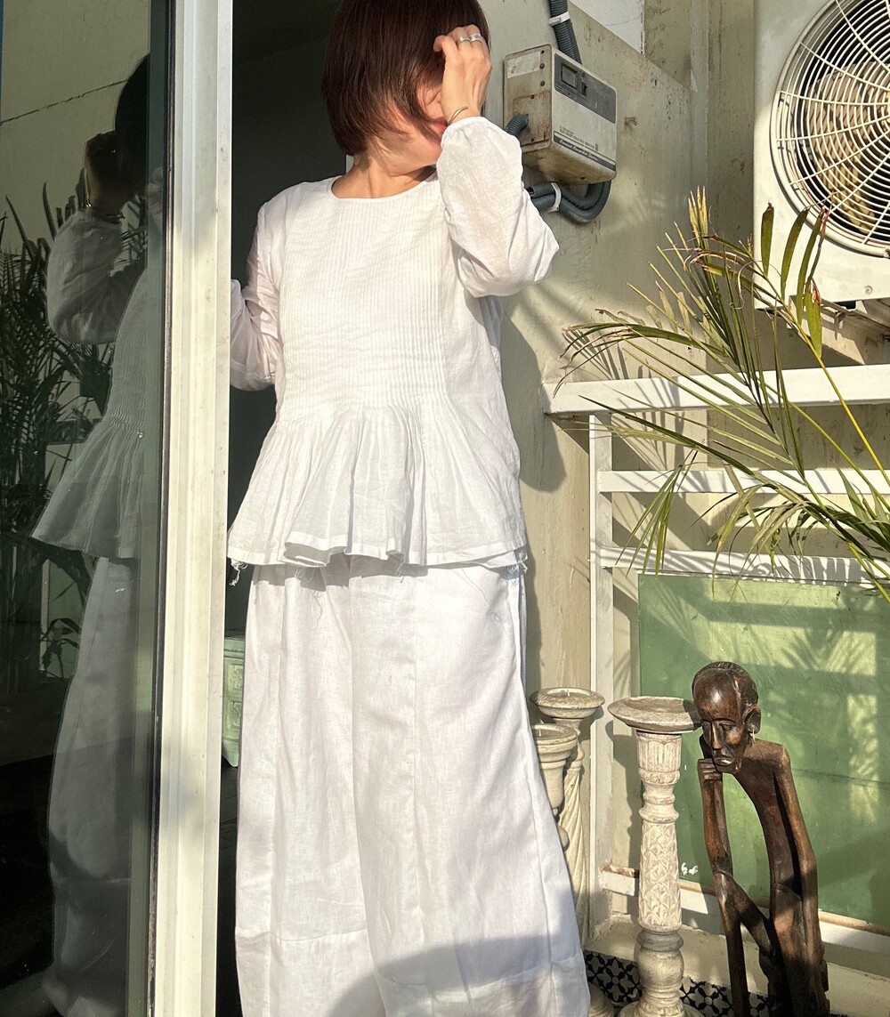 18세기 산업혁명과 프랑스 혁명은 산업을 발달시키고 유럽인의 시민의식을 높였는데 귀족 위주의 바로크.로코코 스타일에서 고대그리스 로마문화의 고전적 양식에서 이상적인 아름다움을 추구하고자했는데 그개 바로 신고전주의,사치스럽고 불편한 옷보다는 나풀거리는 얇은천으로 여성의 곡선미를 드러낸것이 바로 앰파이어 스타일,이 앰파이어 스타일을 아름답게 표현할수있었던 옷감이 바로 머슬린이었답니댱.유러피언들에게 꿈의 옷감이었던 그 머슬린으로 아름다운 핀턱 화이트를 만들어보았어요. ❤️