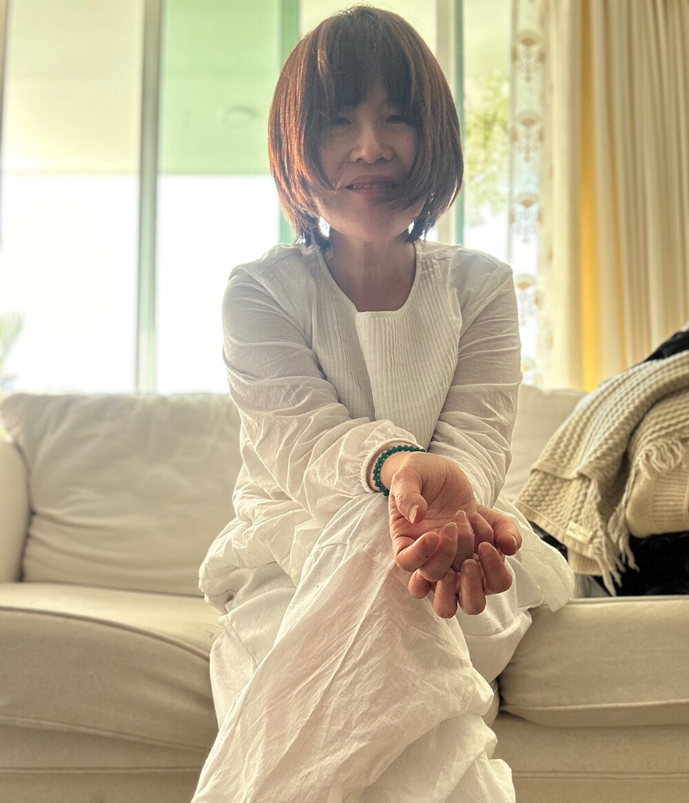 스몰미듐사이즈와 라지 두가지로 진행되며 기장은 60이고 제가 입은사이즈가 가슴둘레 53-55정도이고 조금 넉넉한사이즈는 가슴둘레 64이상 사이즈에요.소매는 고무줄로 편하게 만들어졌어요.