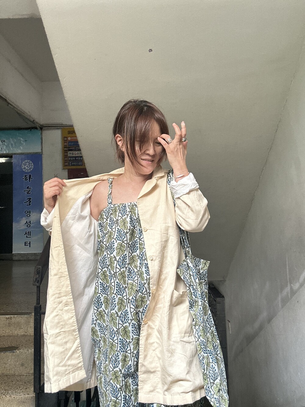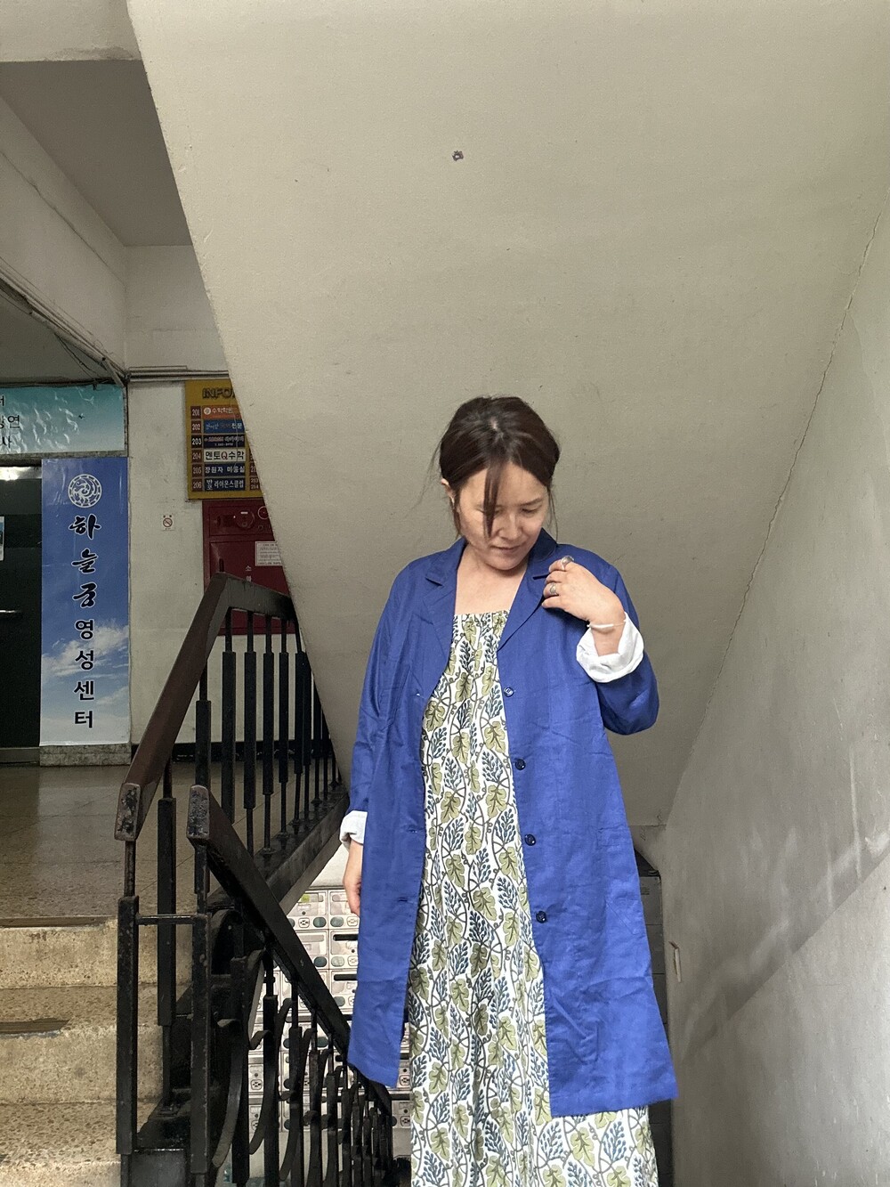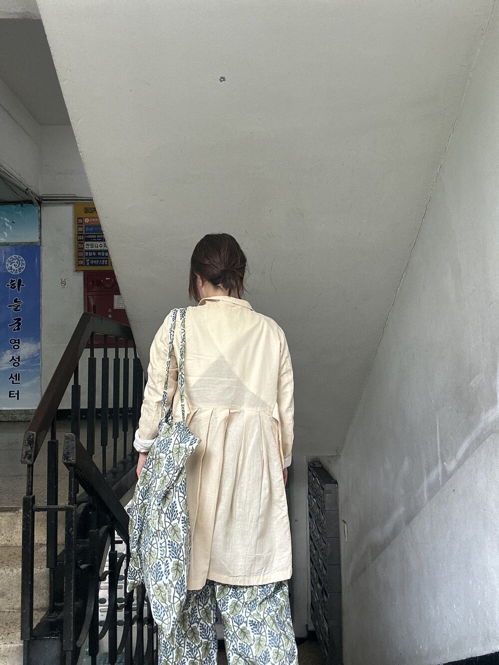 기장 116 그리고 넉넉한 품... 폭도 넓어서 입으면 살에 닿는 느낌이 더 기분좋은...원단 6마를 사용하여 넉넉하게 디자인된 ...드레시한 점프수트에요❤️