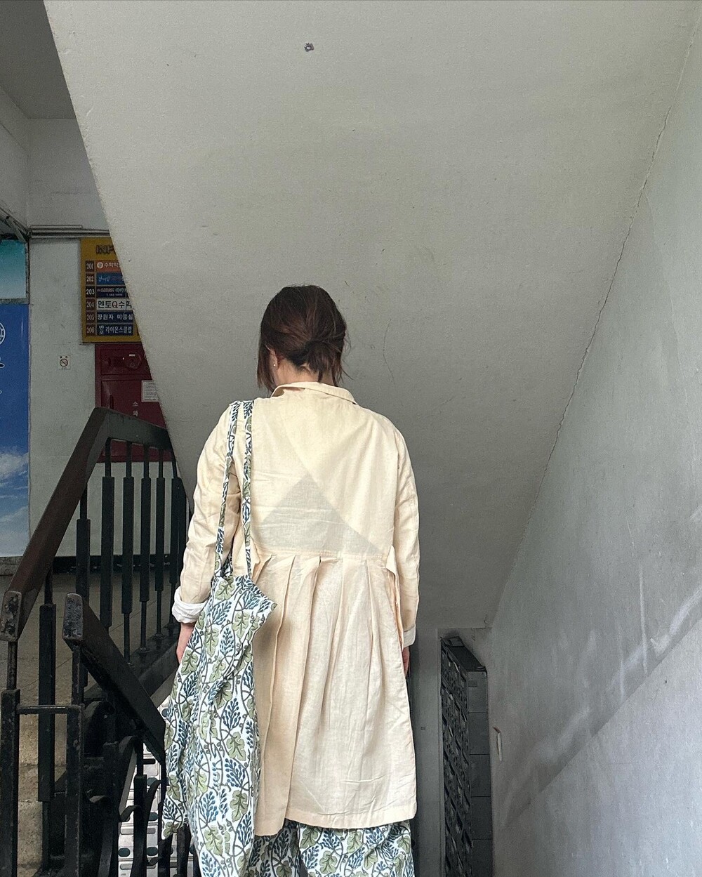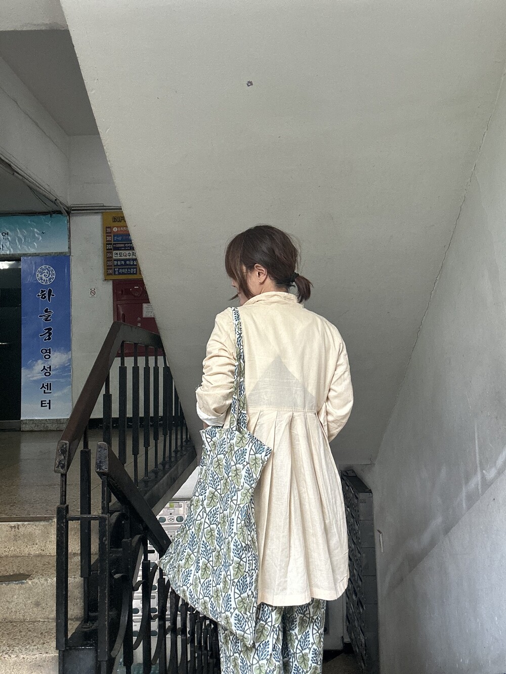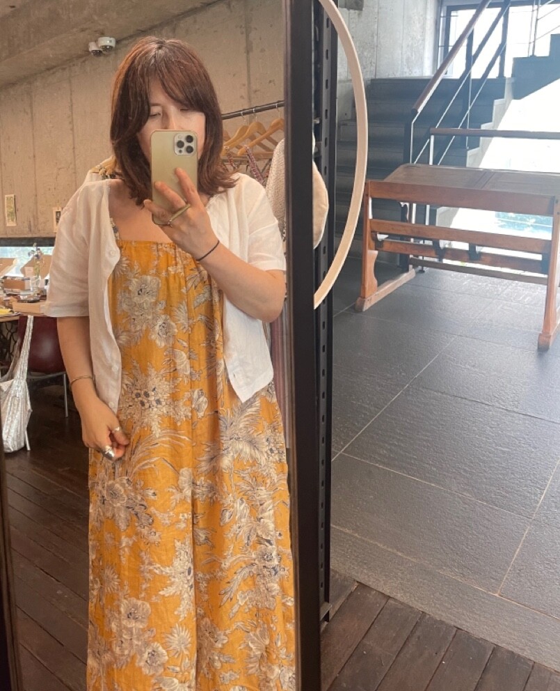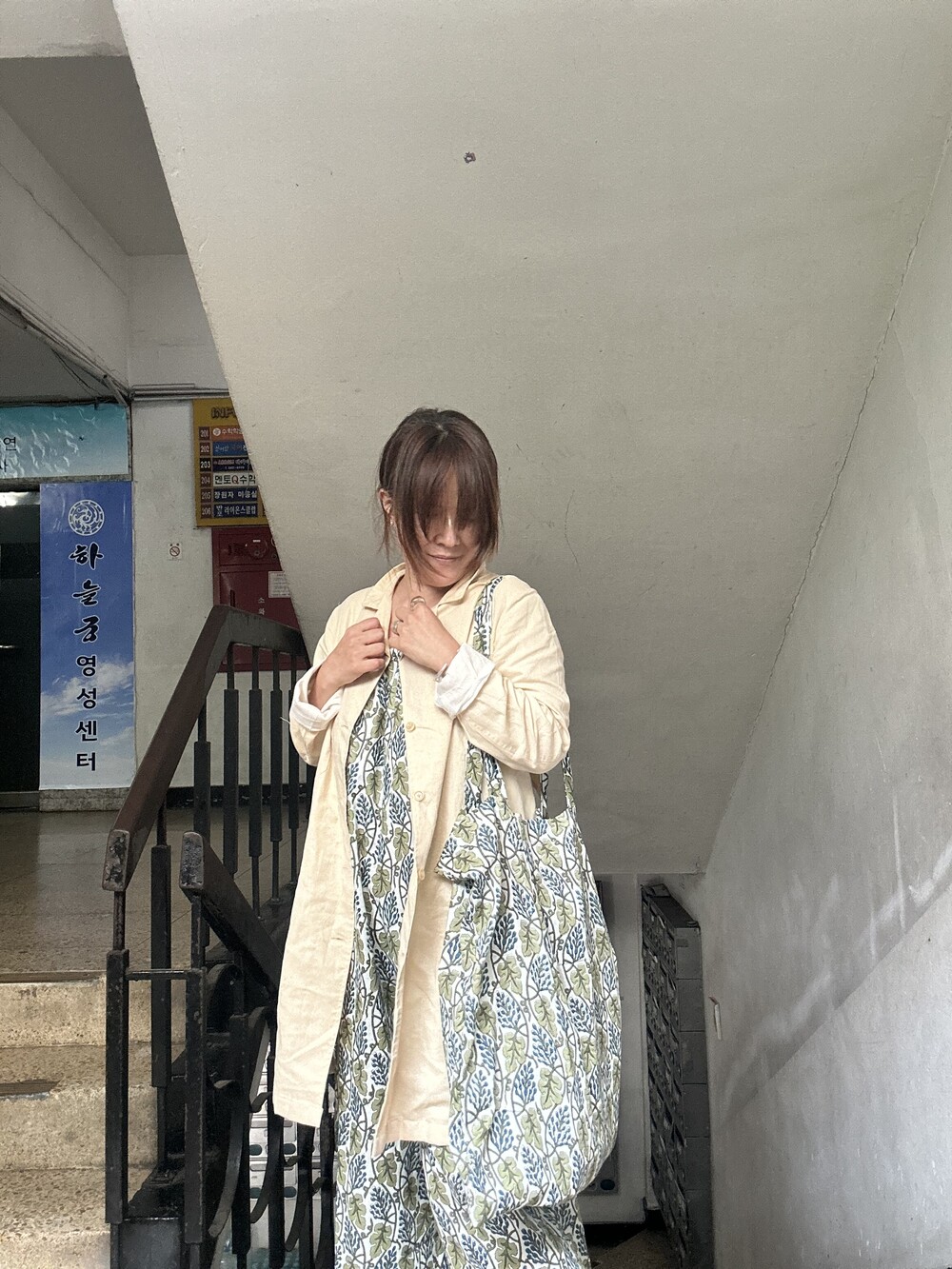 기장 116 그리고 넉넉한 품... 폭도 넓어서 입으면 살에 닿는 느낌이 더 기분좋은...원단 6마를 사용하여 넉넉하게 디자인된 ...드레시한 점프수트에요❤️