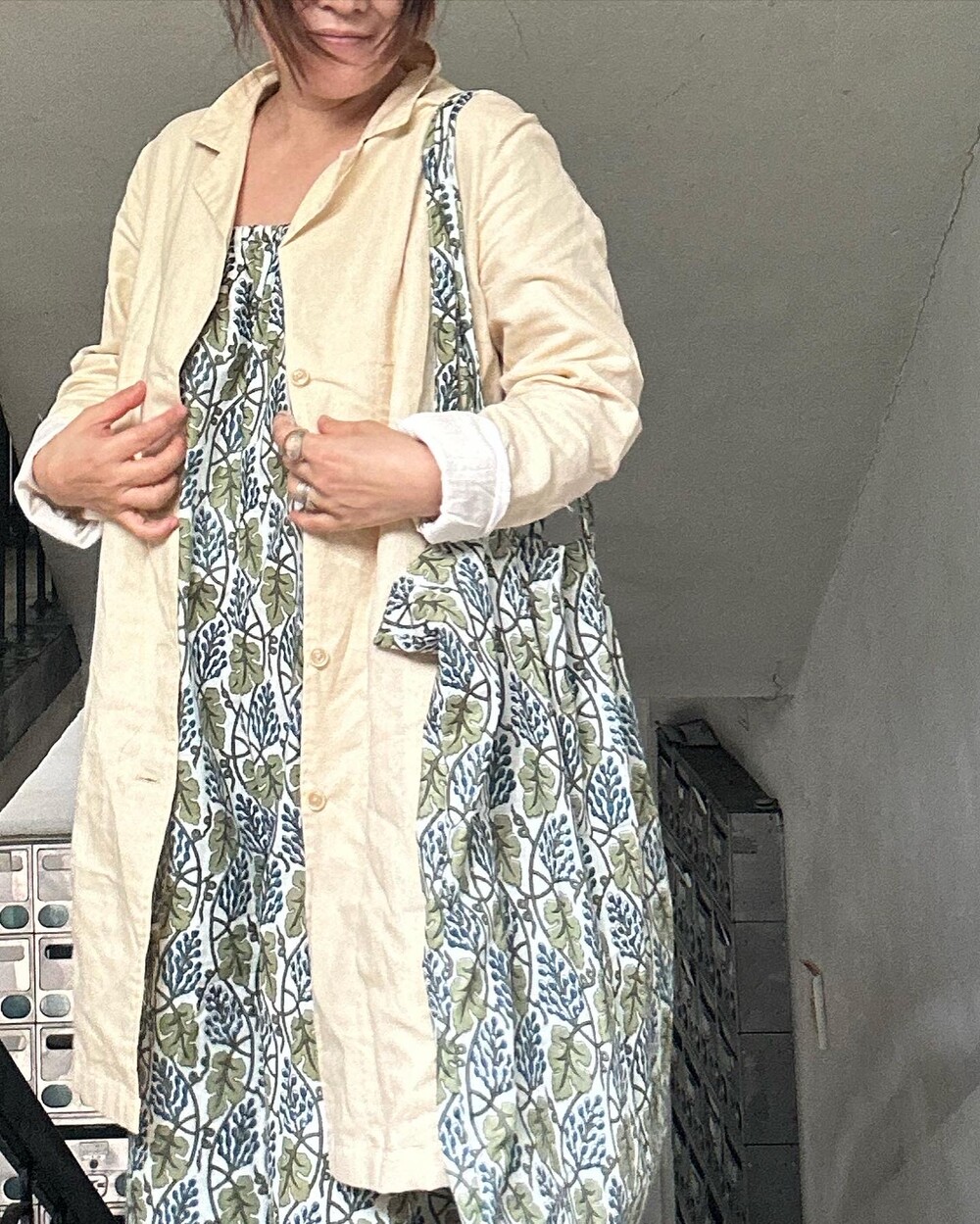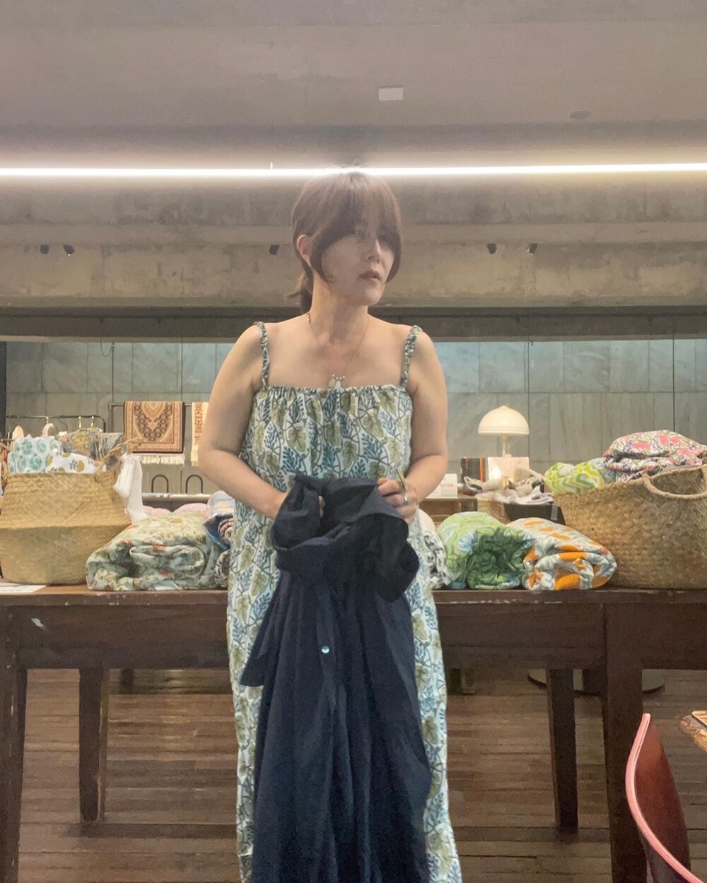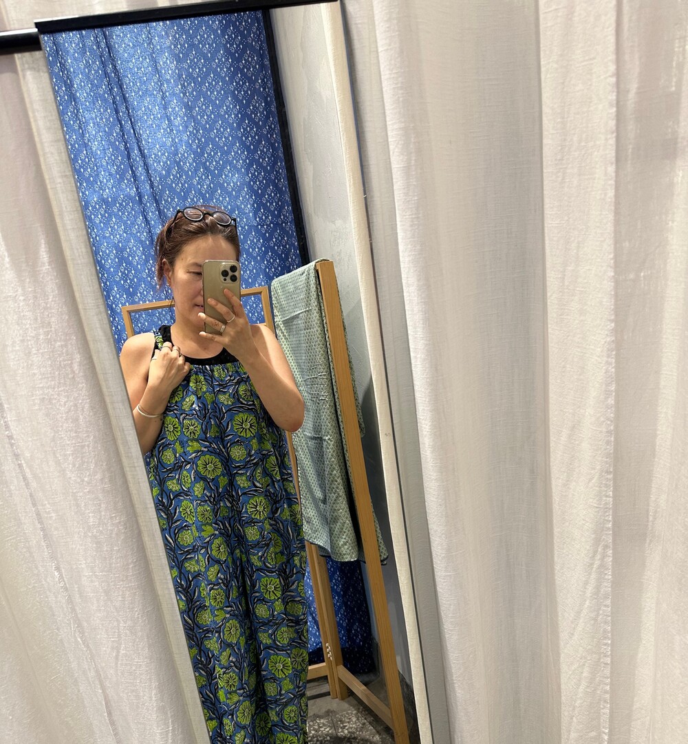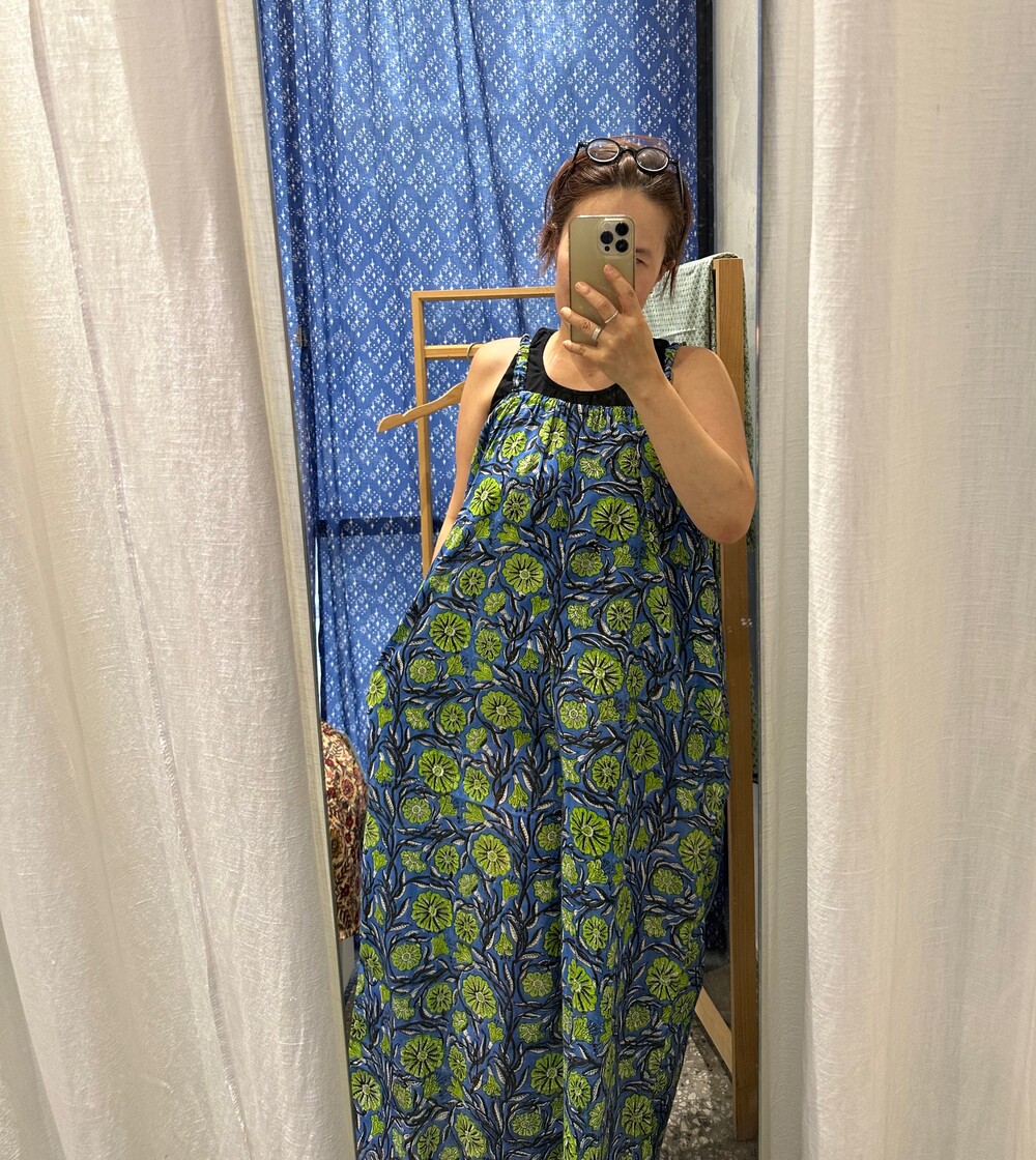 기장 116 그리고 넉넉한 품... 폭도 넓어서 입으면 살에 닿는 느낌이 더 기분좋은...원단 6마를 사용하여 넉넉하게 디자인된 ...드레시한 점프수트에요❤️