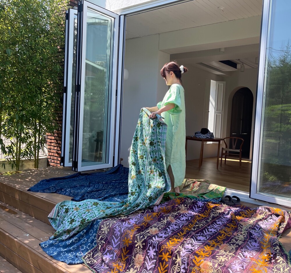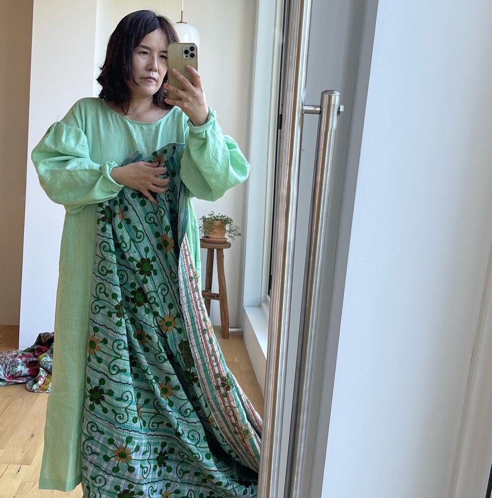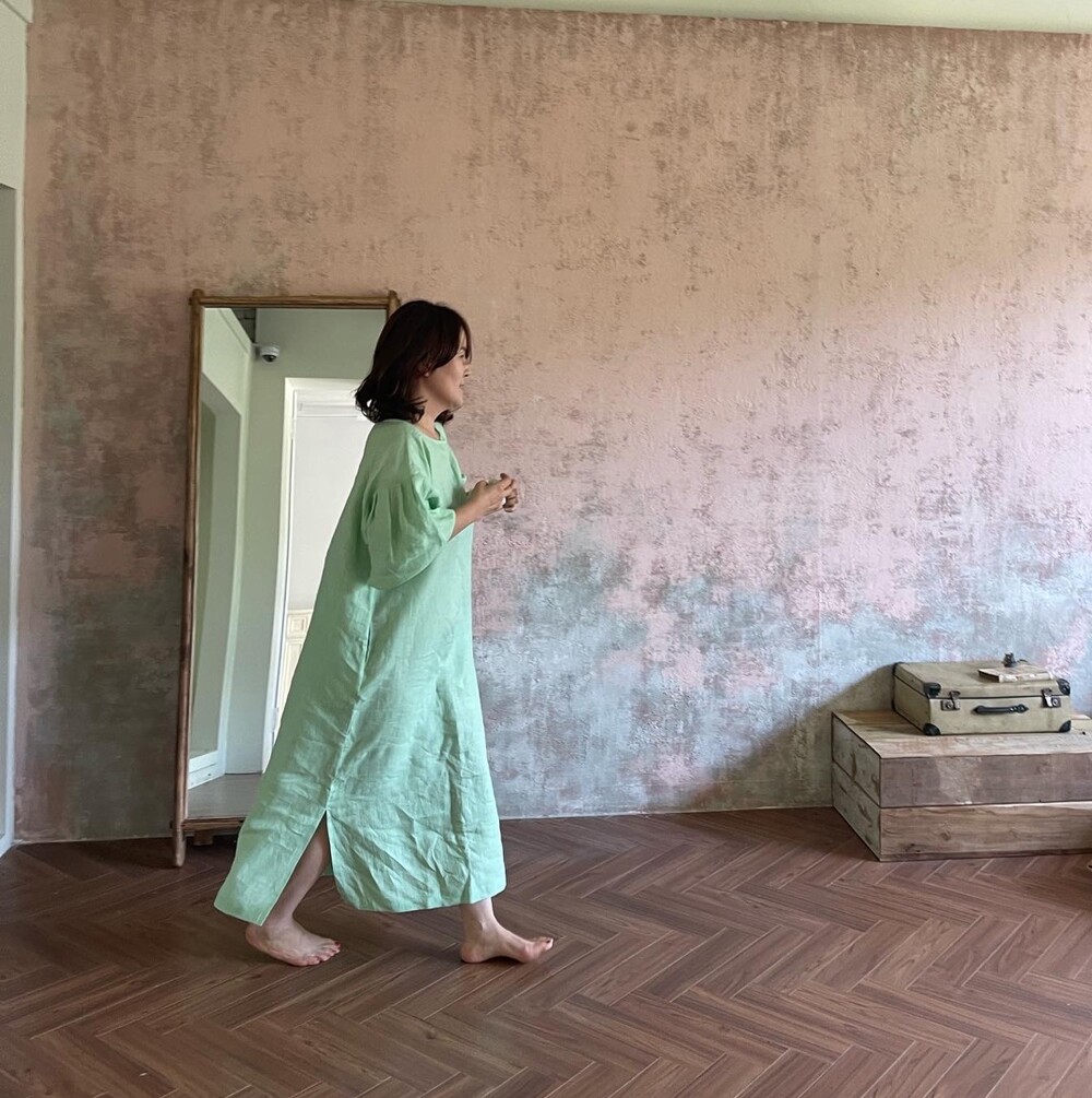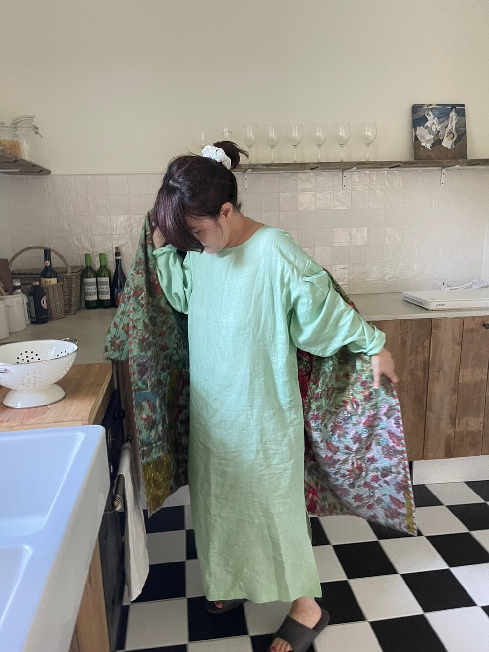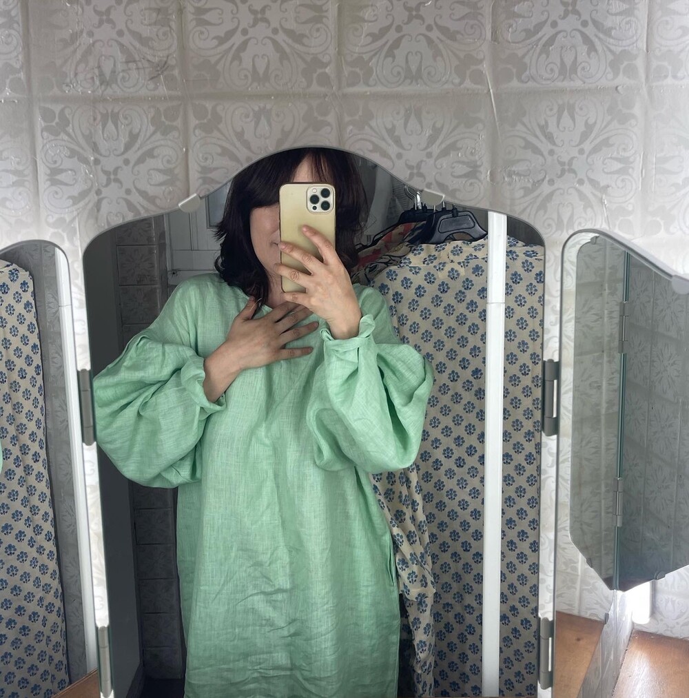 펄이지앵님께서 유투브에 입고나오신 드레스에요 몇년전에 구매해주셨는데 늘 예쁘게입어주셔서 제가 정말 감사드리죠. 인도의 린넨이고 린넨 염색시간이 오래 걸렸어요 기장은 120