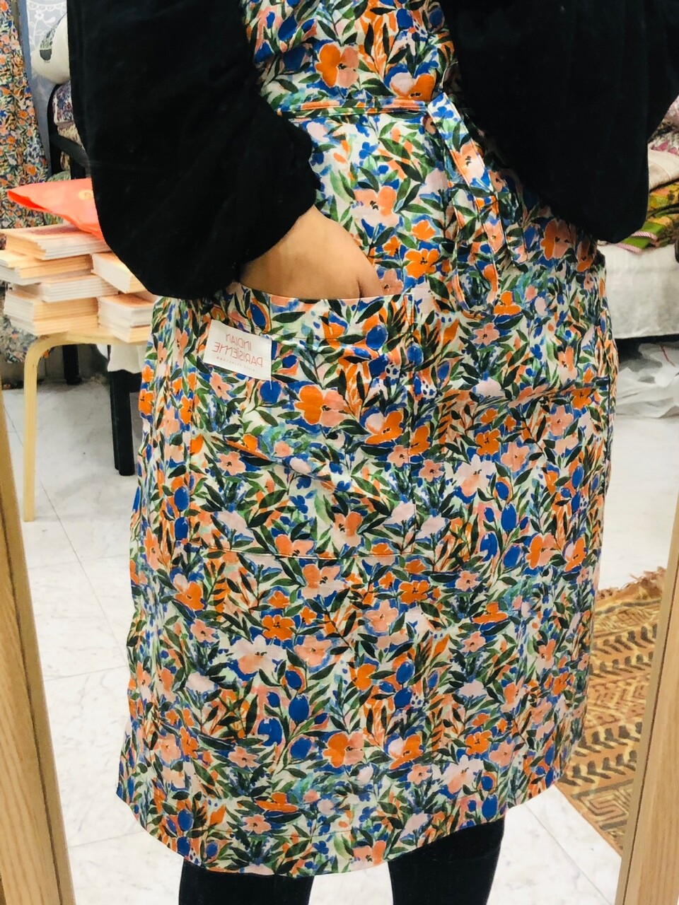 앞치마에요 파우치까지같이 포함이고 엑스자타입으로예쁜 핏으로 날씬해보이기도하고요화려한 야수파색감의 패브릭으로 디자인되었어요 60수 패브릭으로 제작되었어요🙏바로발송가능한 제품입니다