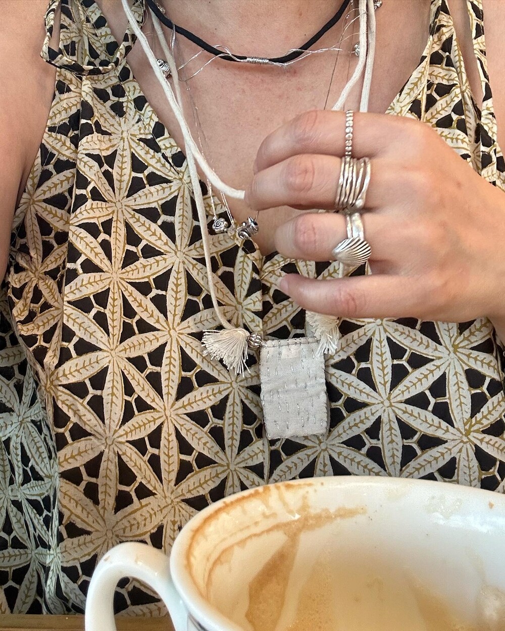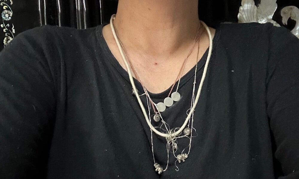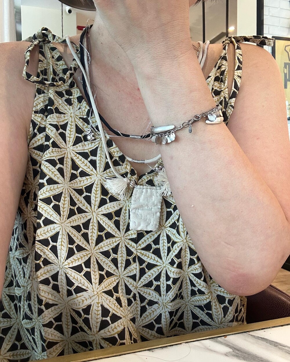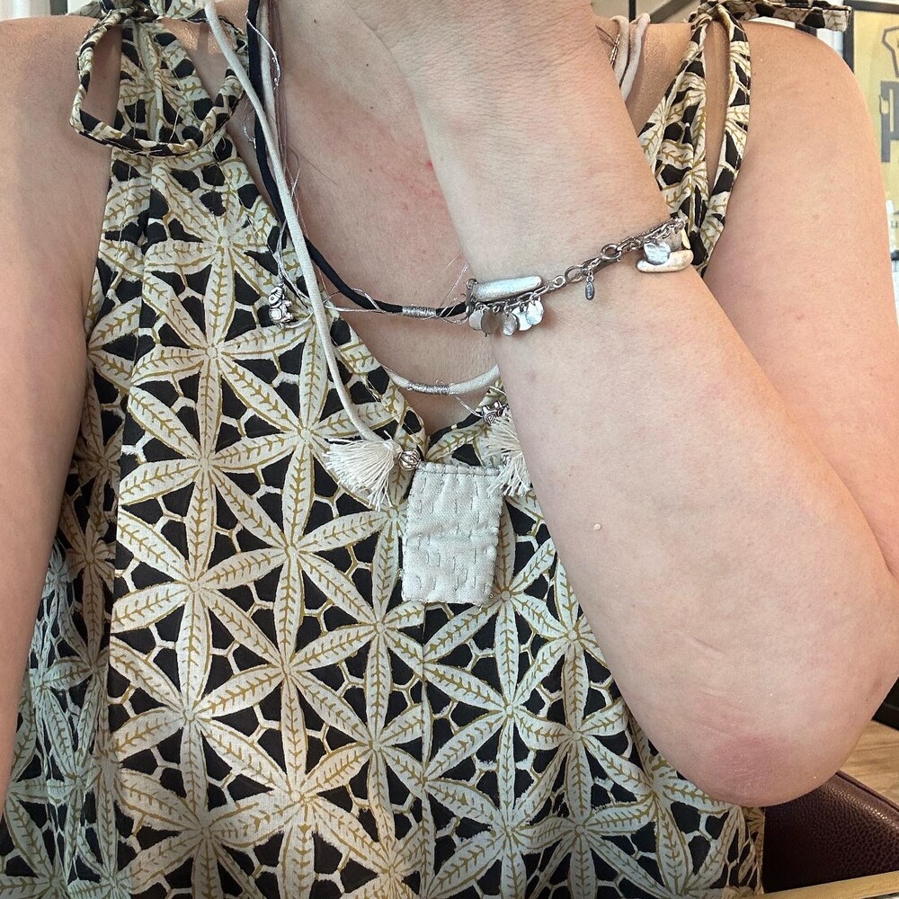주문제작이며 9.10에 발송됩니다.모두 저의 수작업이며 인도에서 모은 부자재와 악세서리로 만듭니다. 저는 샤워할때도 그냥 하지만 패브릭 소재라 물 샤워가끔 시켜 말려주심되요!!!