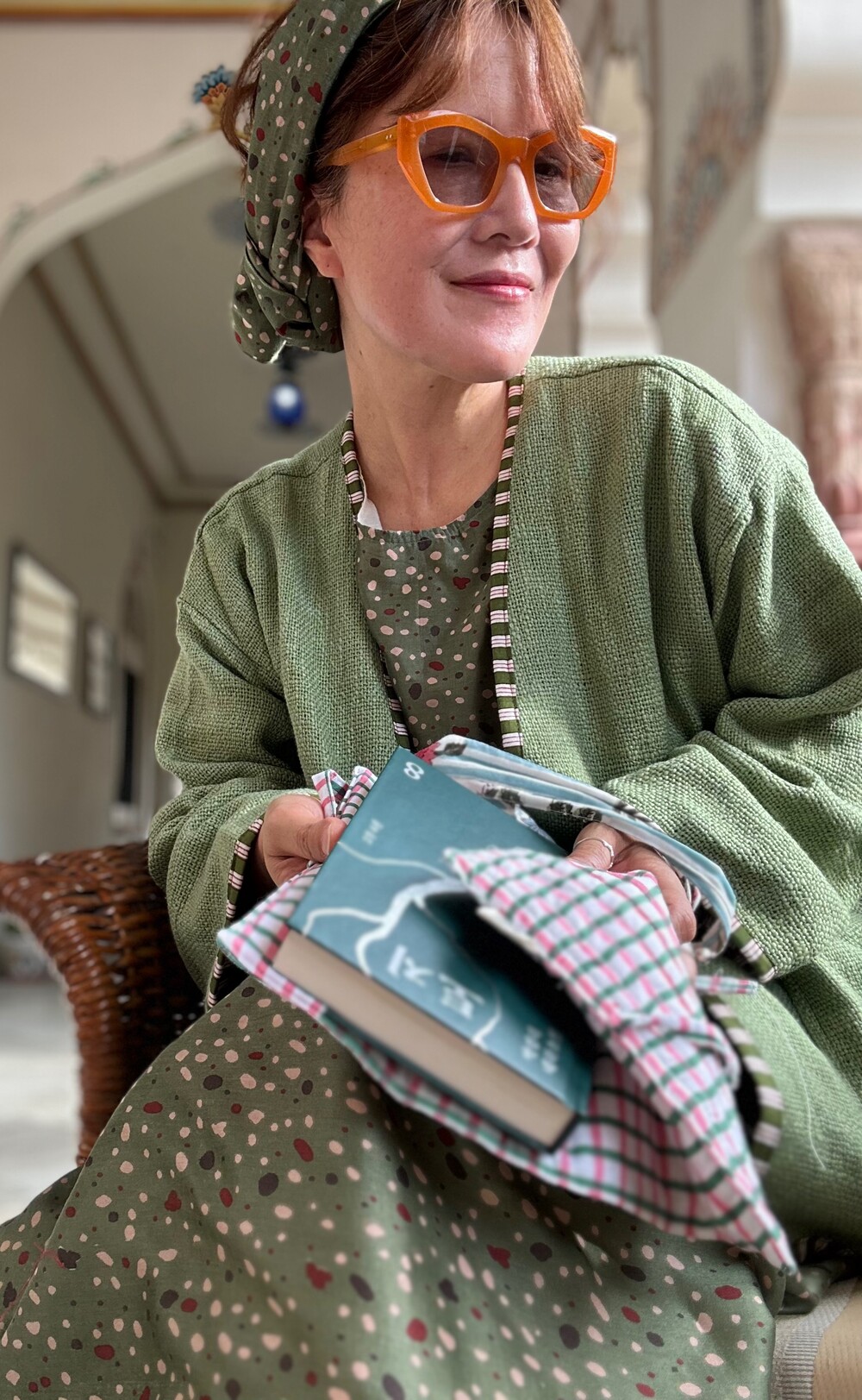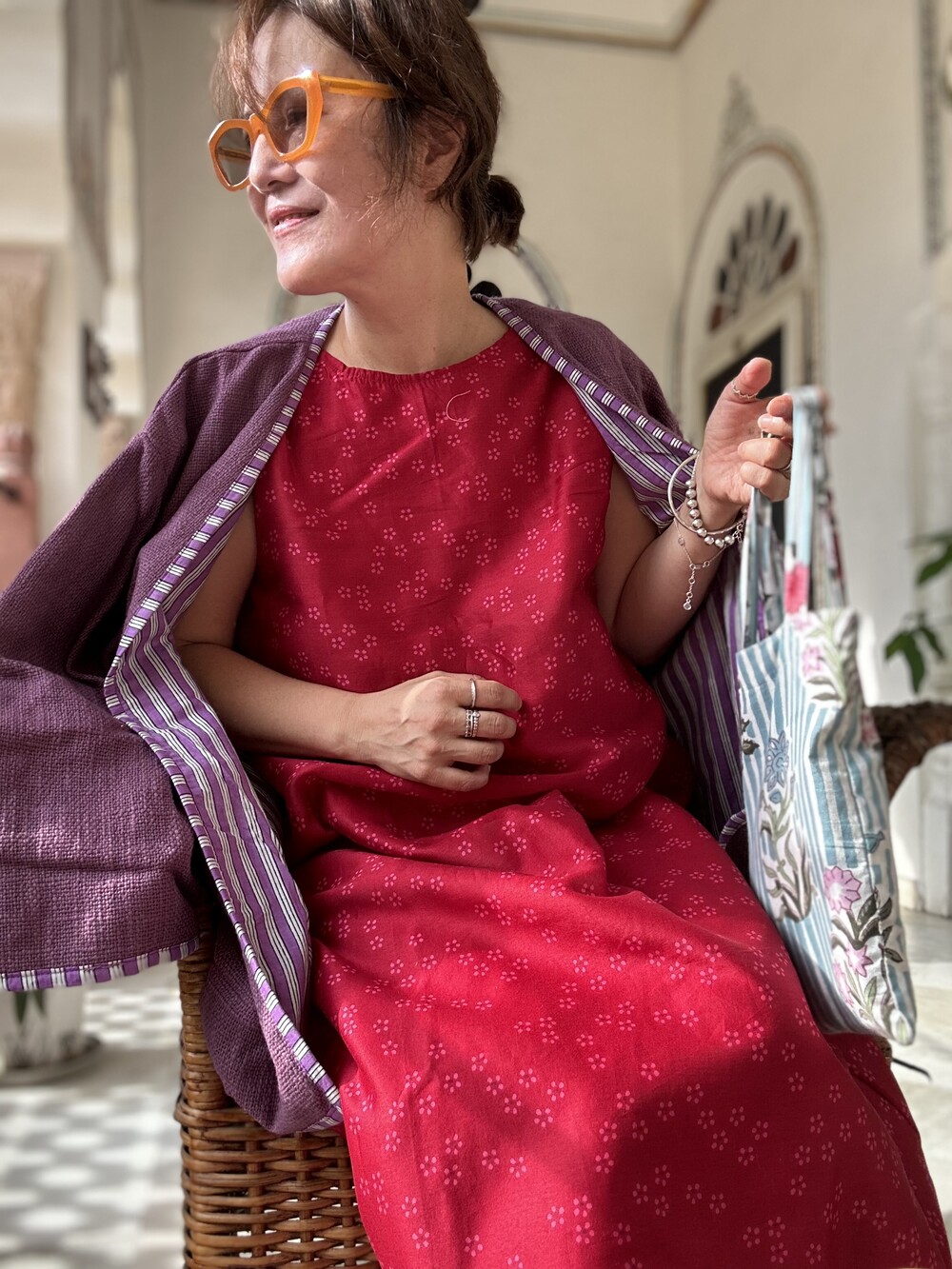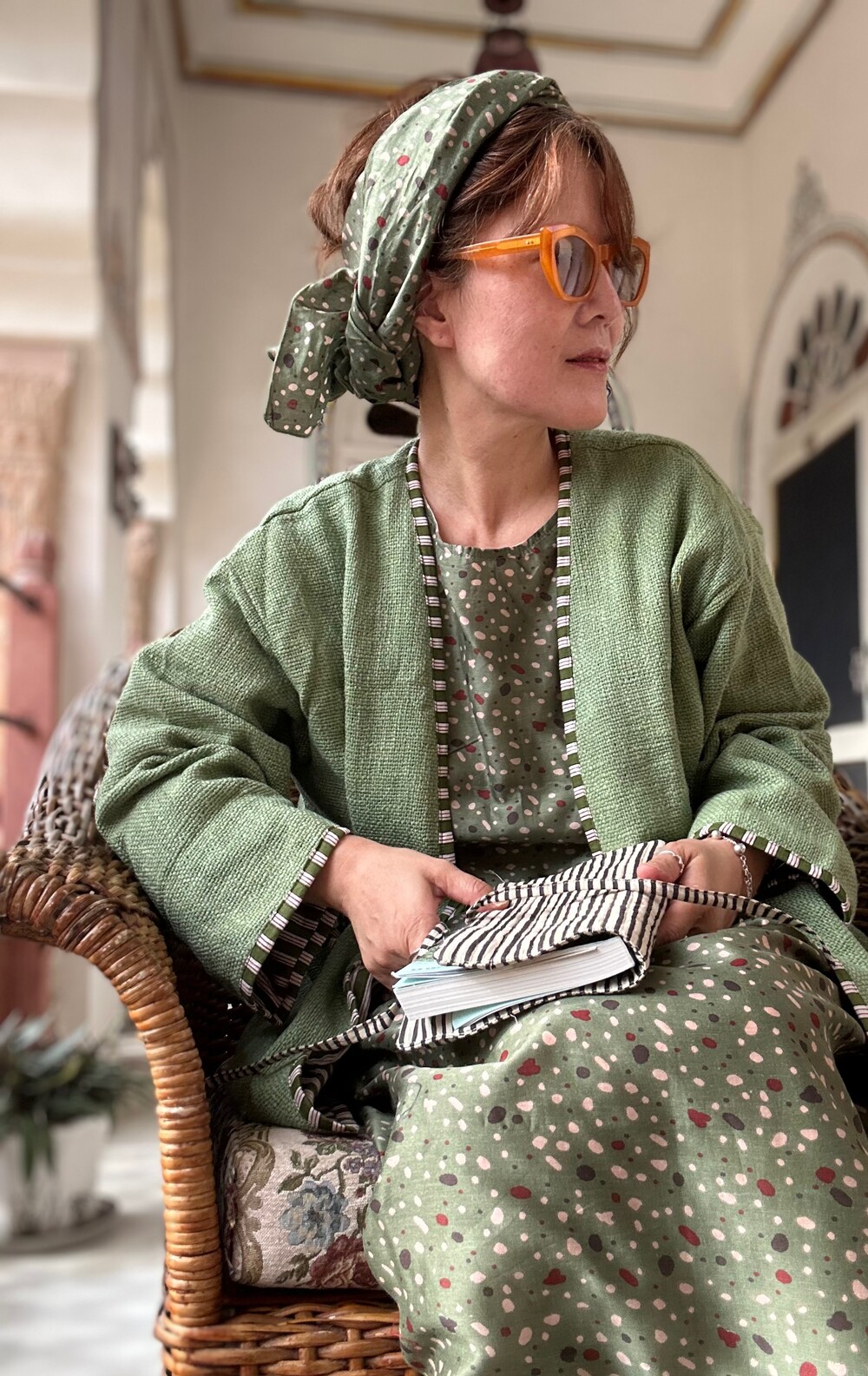 진동둘래 넉넉하고 안감은 면으로 해서 적절히 고시감있어요. 주머니도 있어요.정말 아름다운 컬러의 실크이고 드라이해주심 잴 좋고요.인도에서 구월말 발송되요.9.15까지 프리오뎌 진행하고 한정수량이며 스카프는 셋트에요.이렇게 길고 넓은 기장은 아니고 적절한기쟝을 셋트로 보내드려요.코트에서 가디건에서 스웨터와 모두 잘 입으실거에요.
