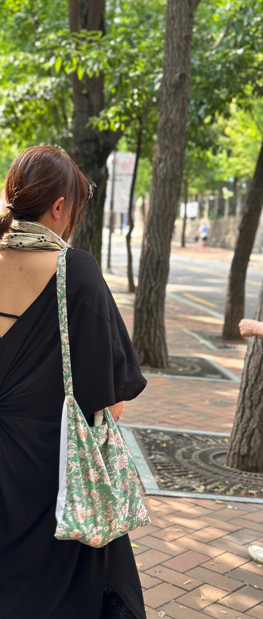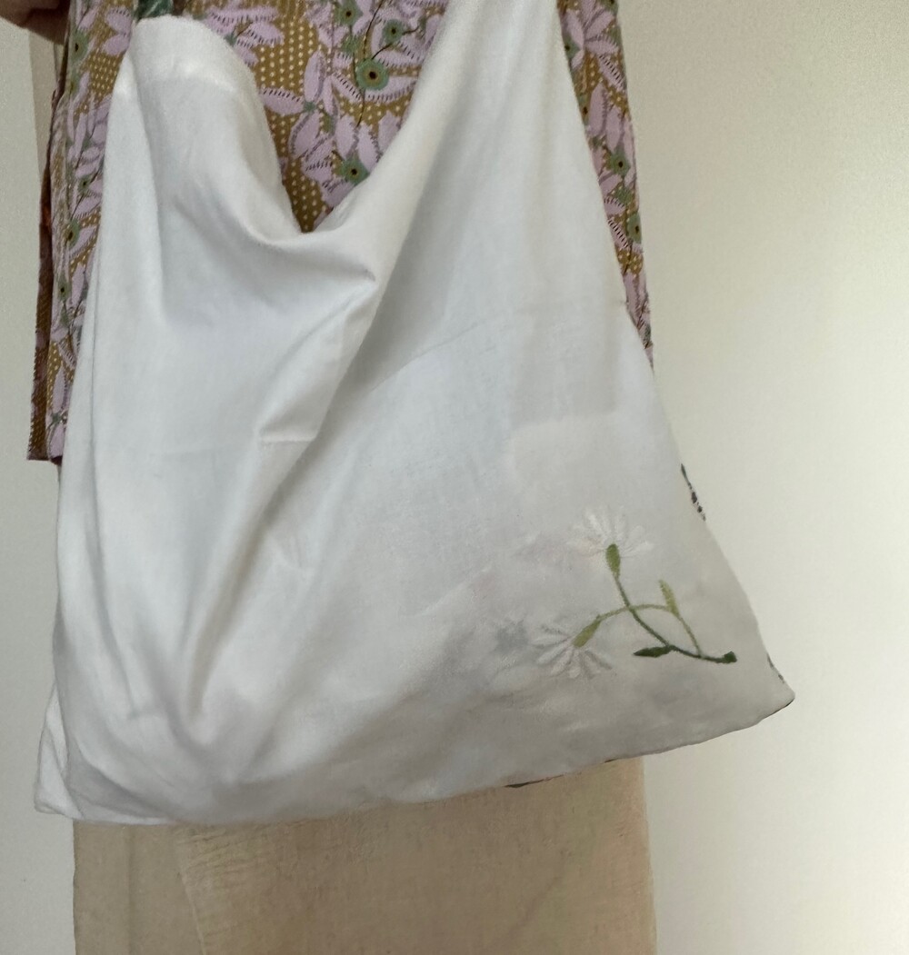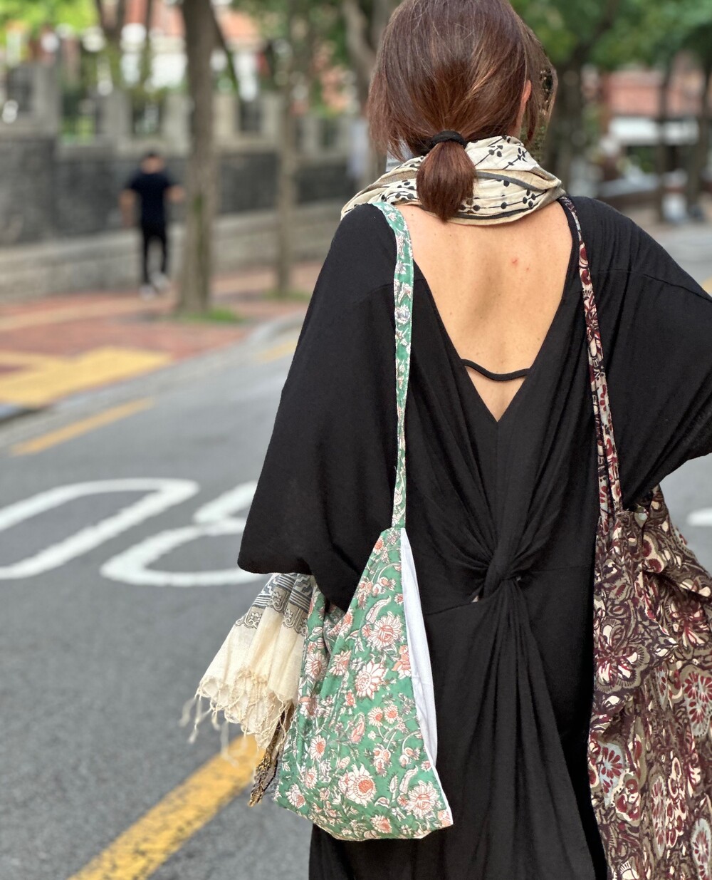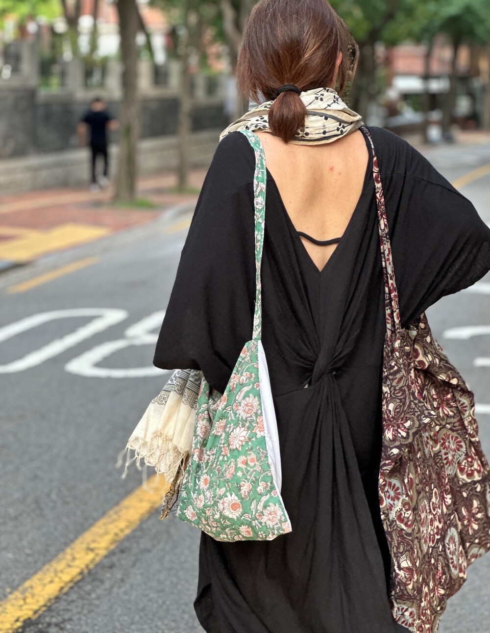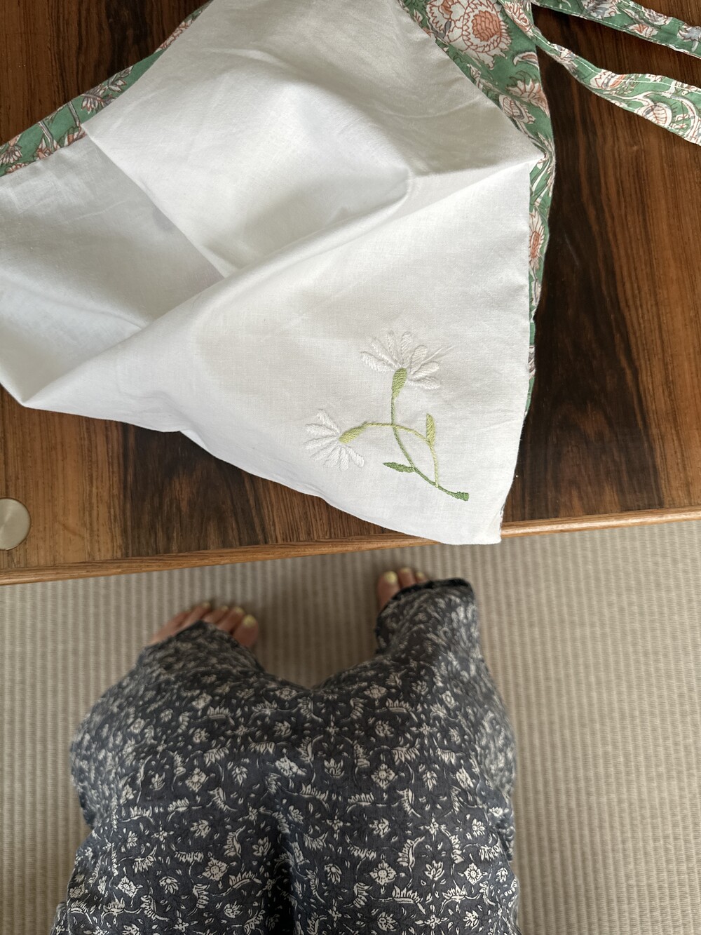 들국화 자수가 아름다운 풍경의 옥양목과 우드블럭프린팅의 가방이에요!한정수량이고