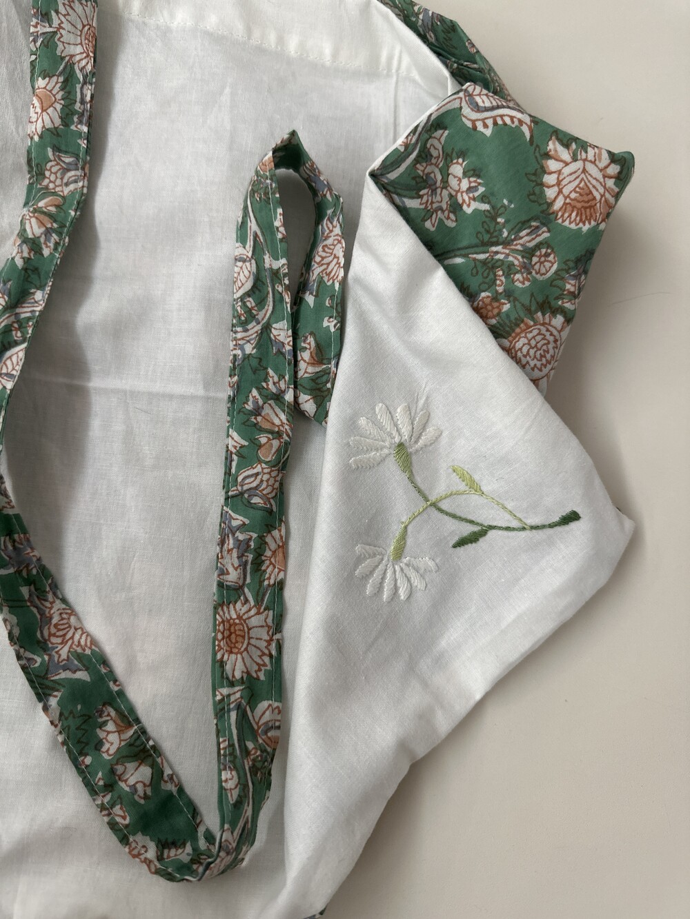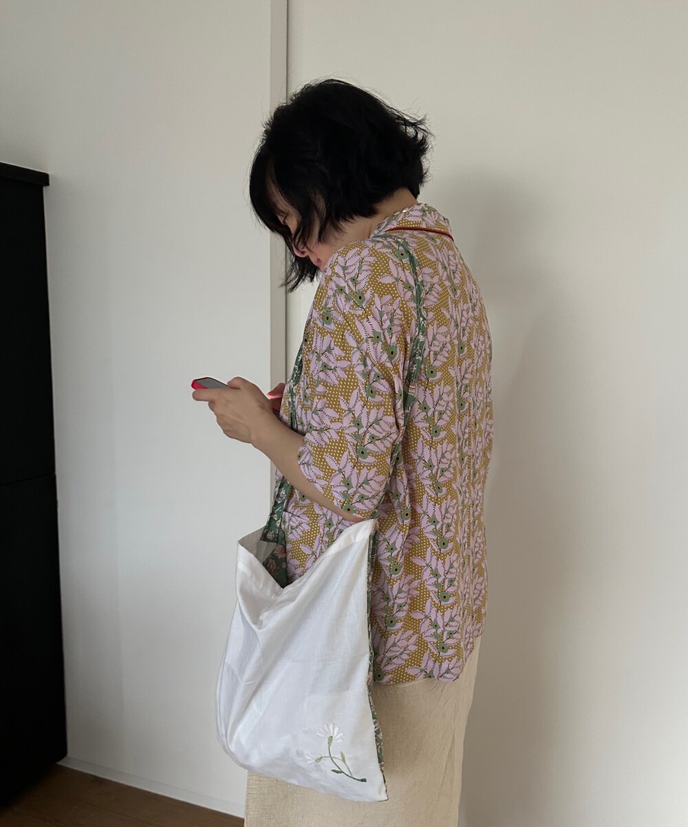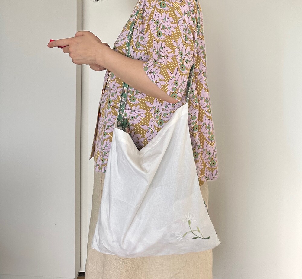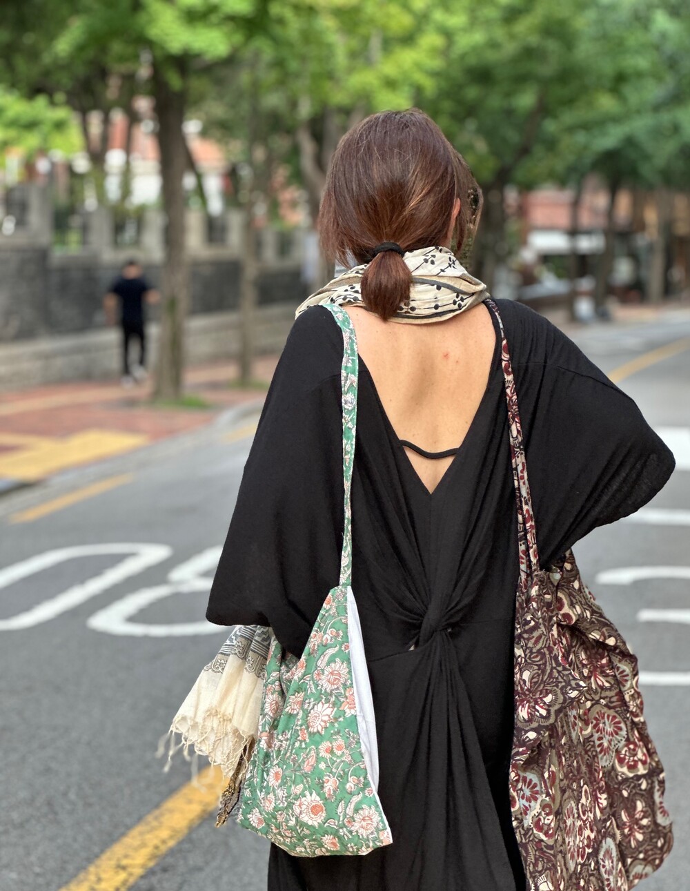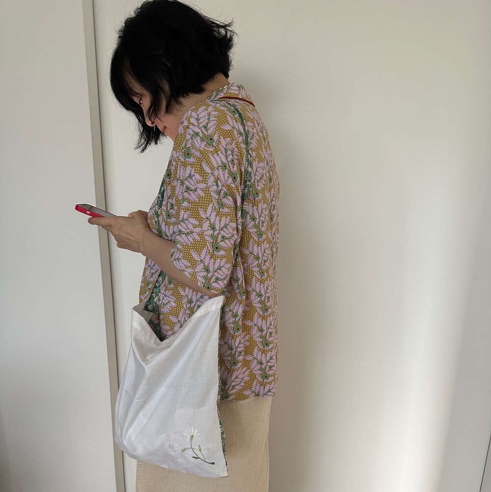 들국화 자수가 아름다운 풍경의 옥양목과 우드블럭프린팅의 가방이에요!한정수량이고