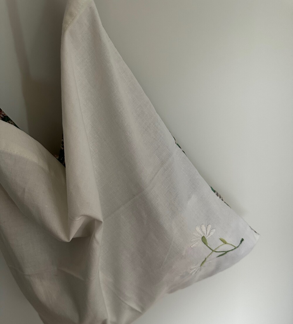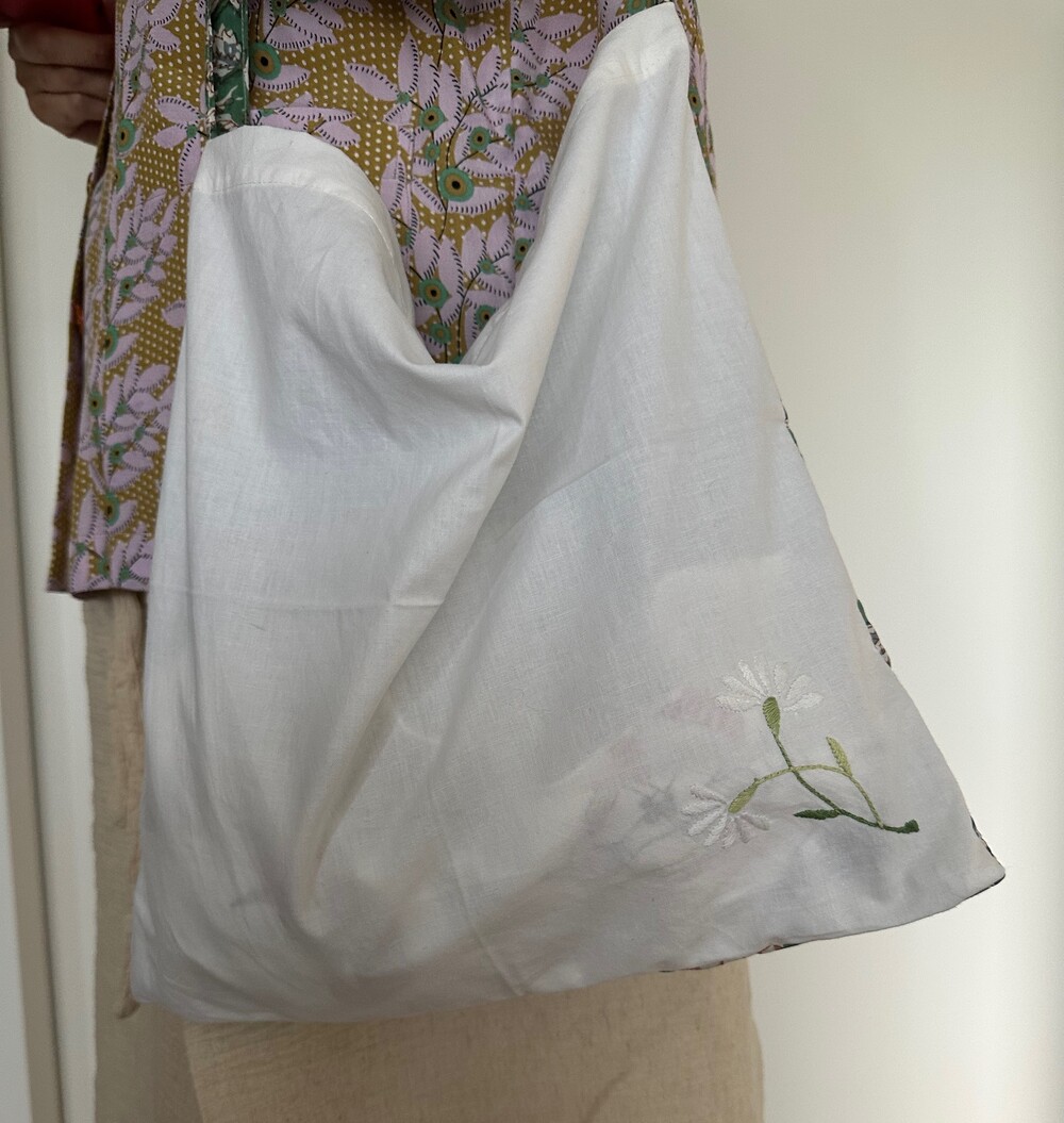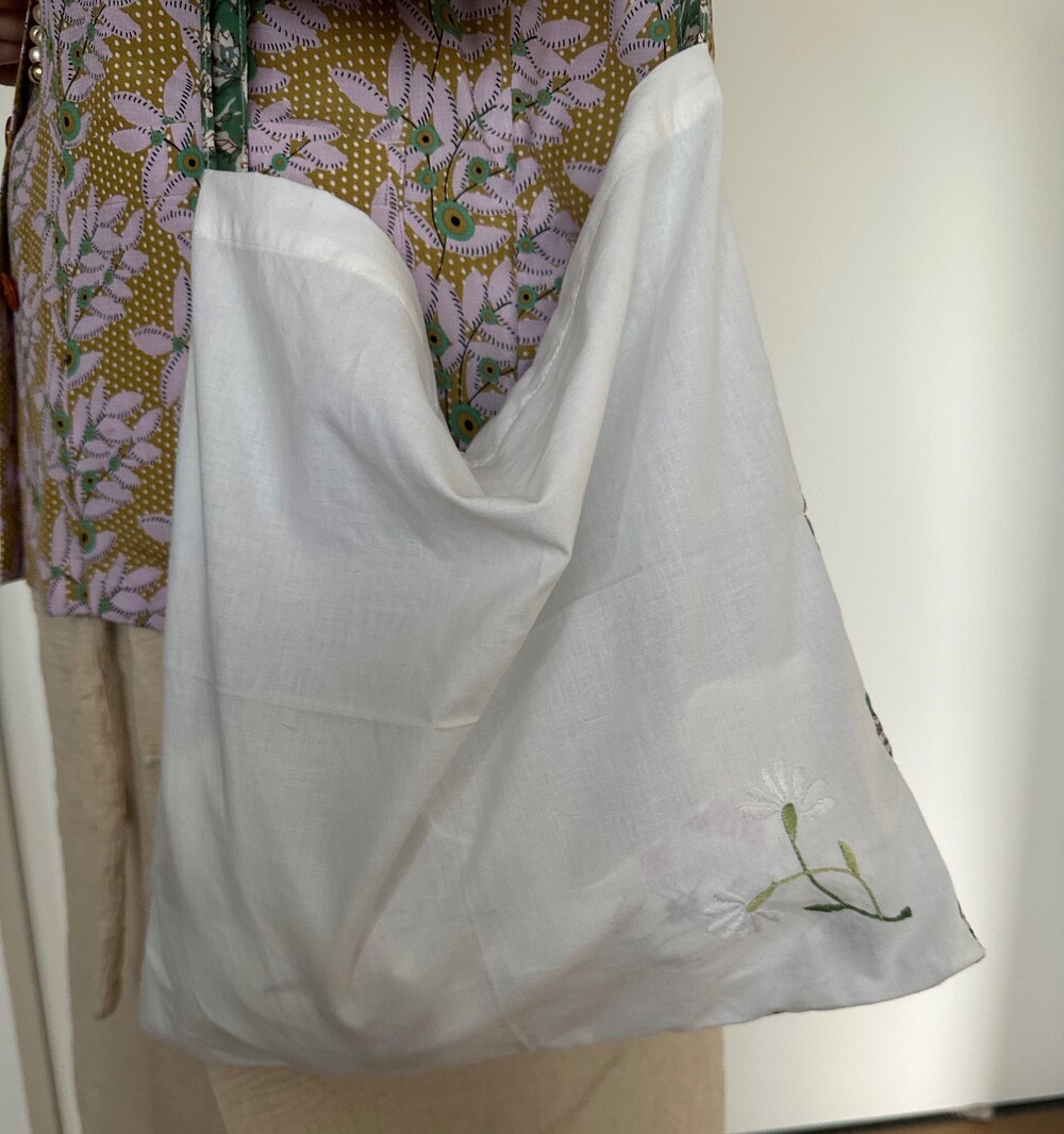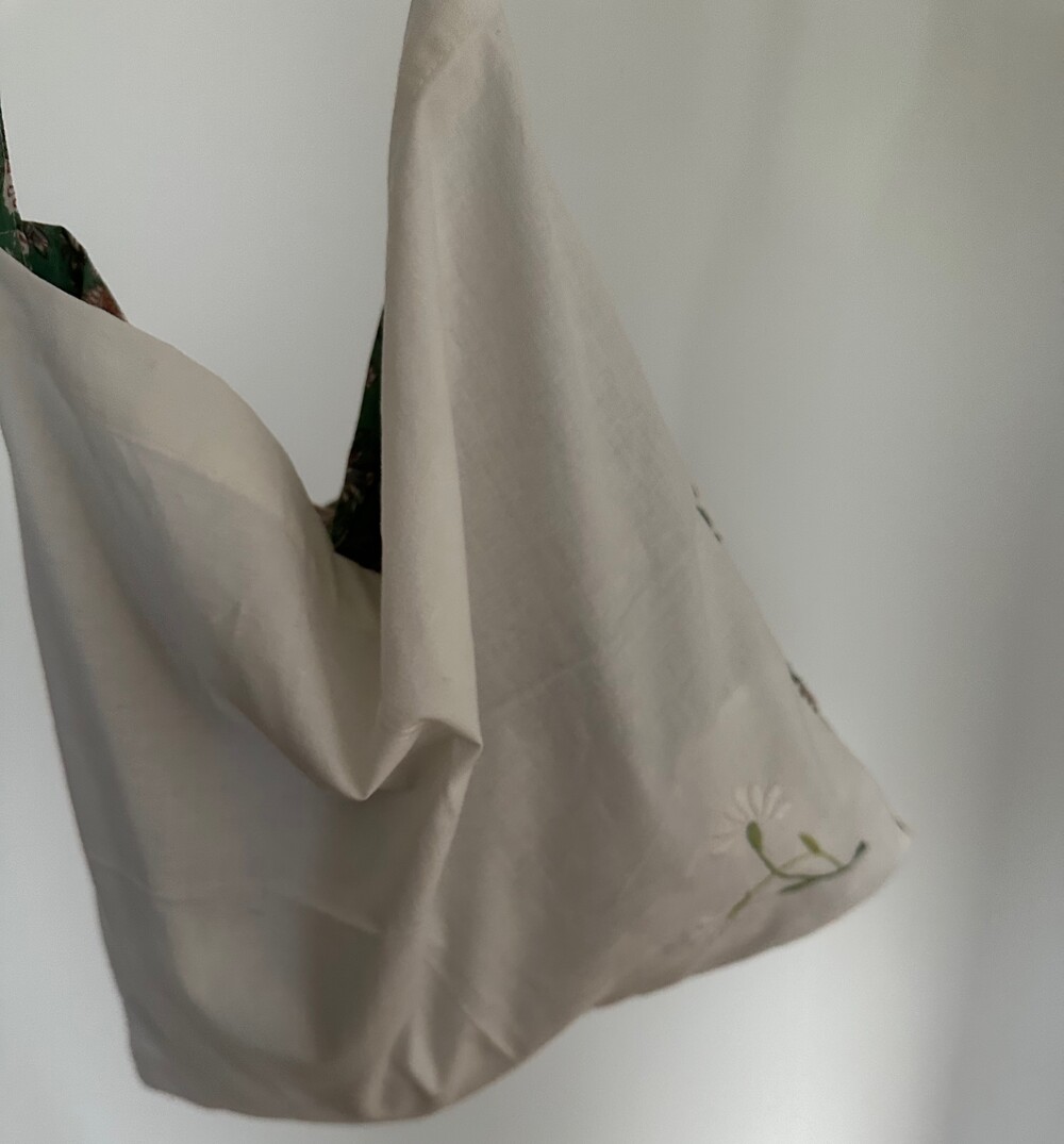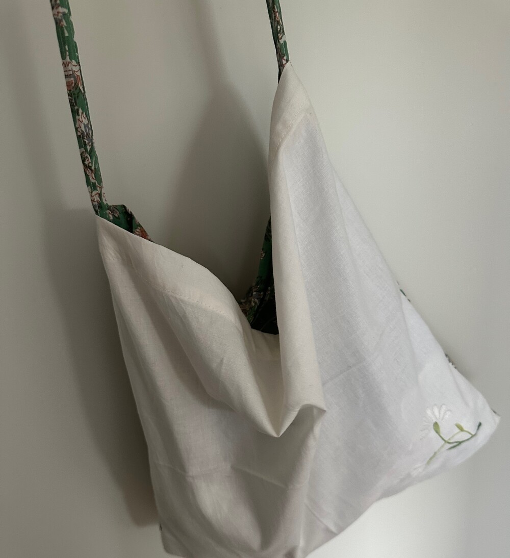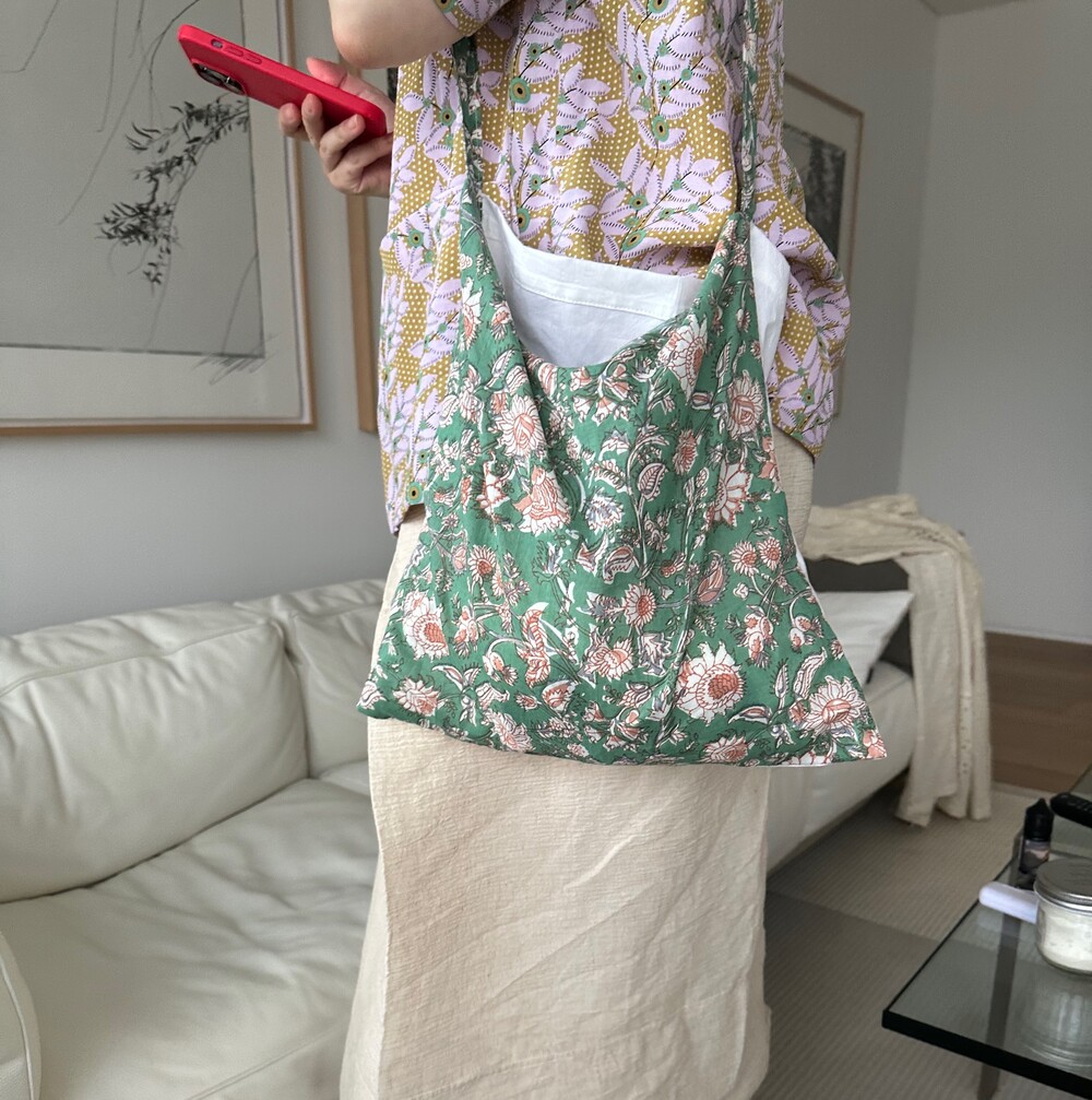 들국화 자수가 아름다운 풍경의 옥양목과 우드블럭프린팅의 가방이에요!한정수량이고