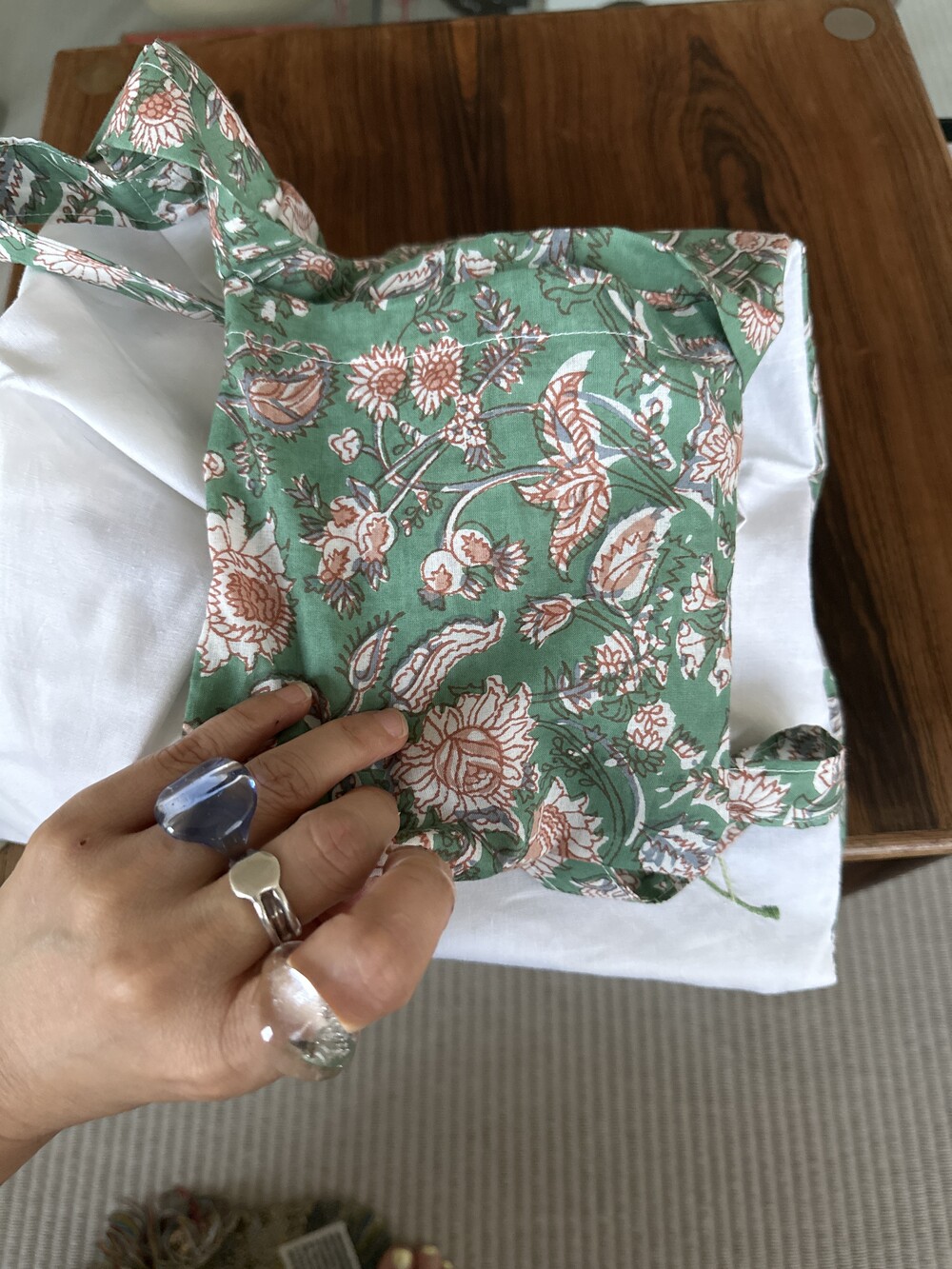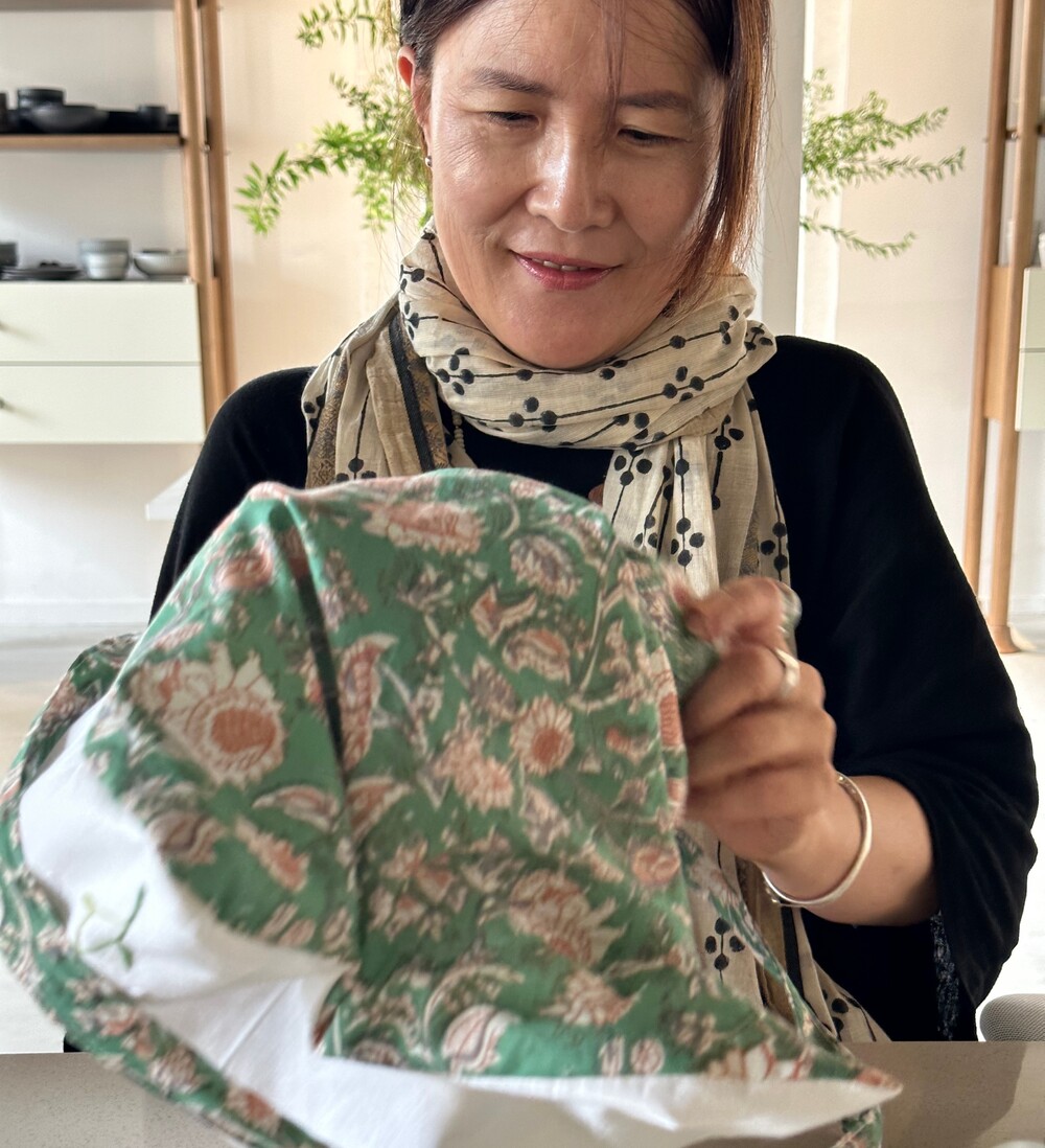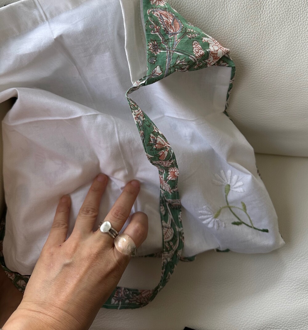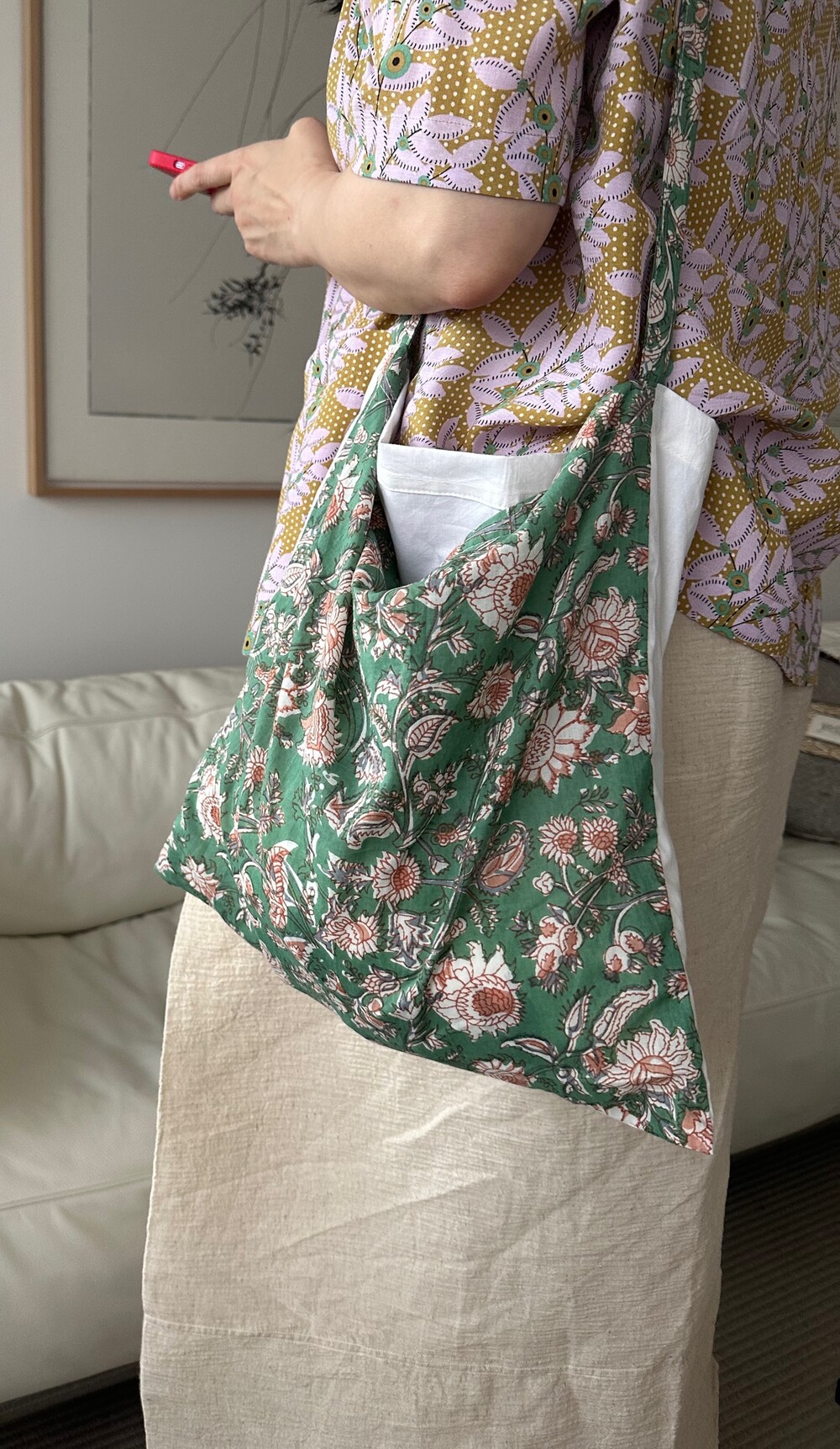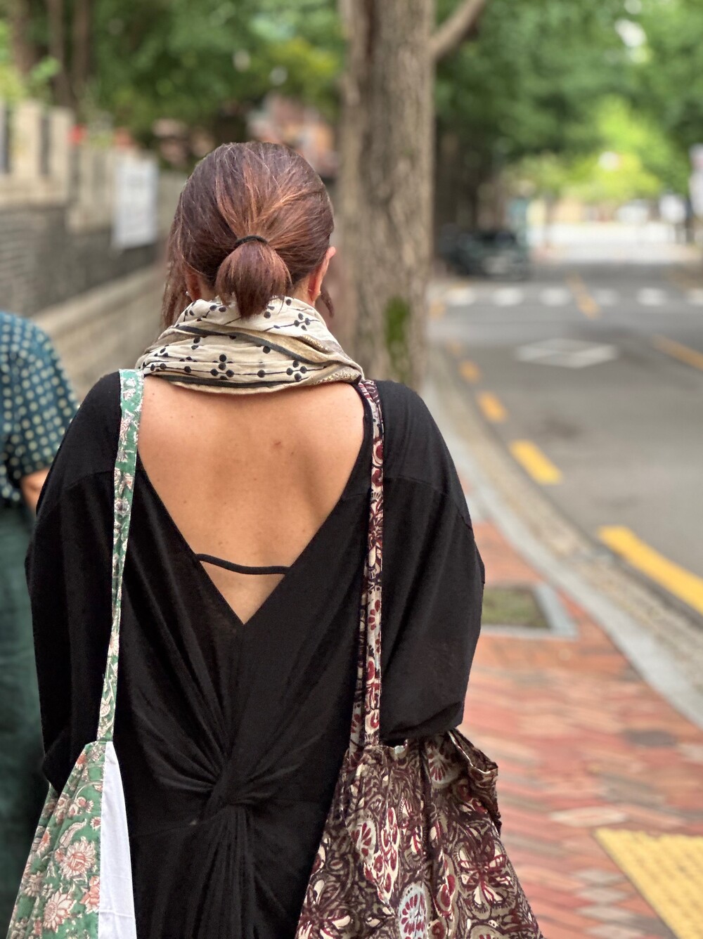 들국화 자수가 아름다운 풍경의 옥양목과 우드블럭프린팅의 가방이에요!한정수량이고