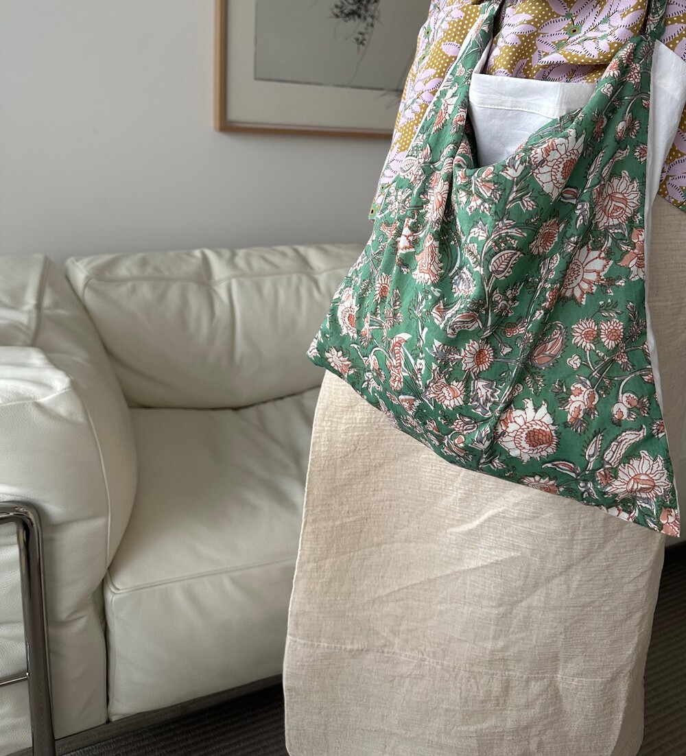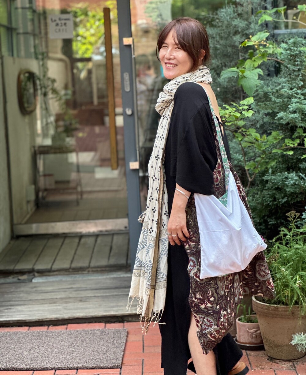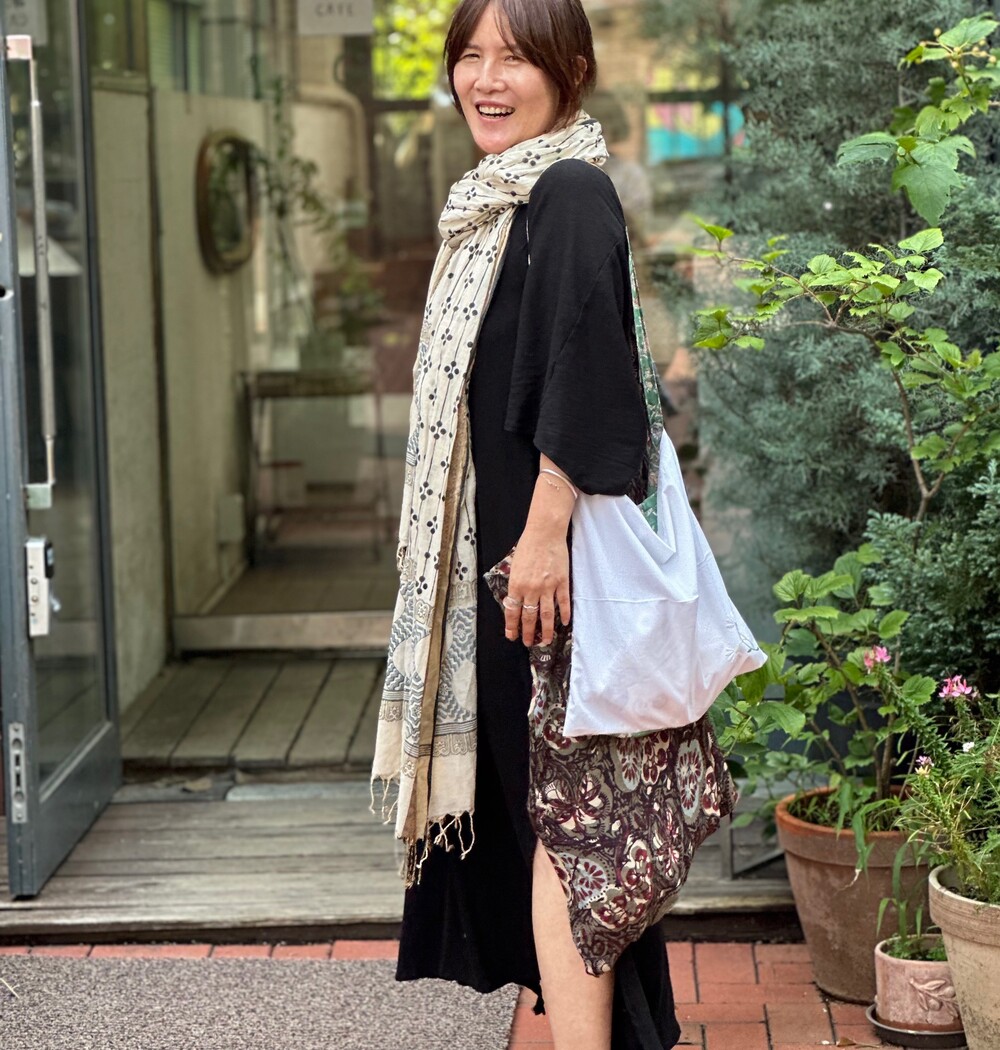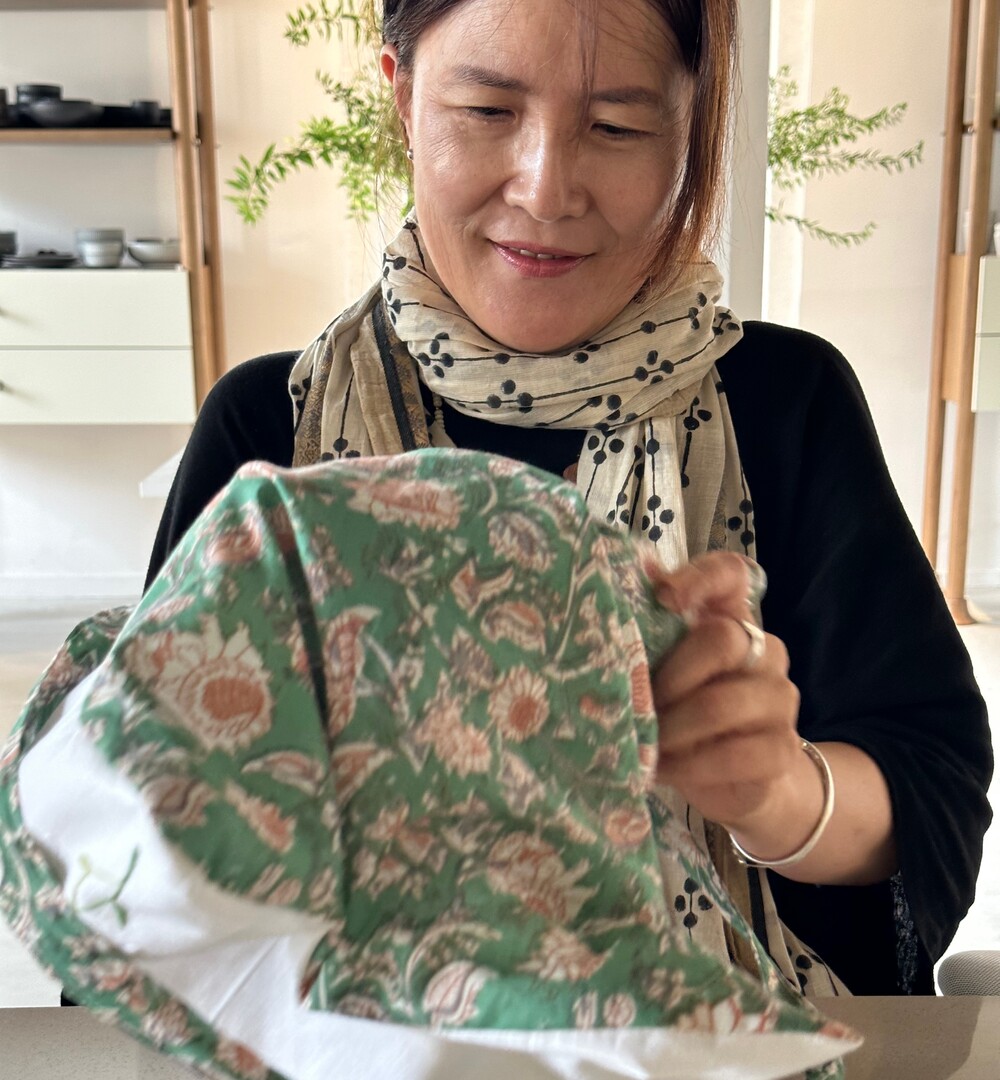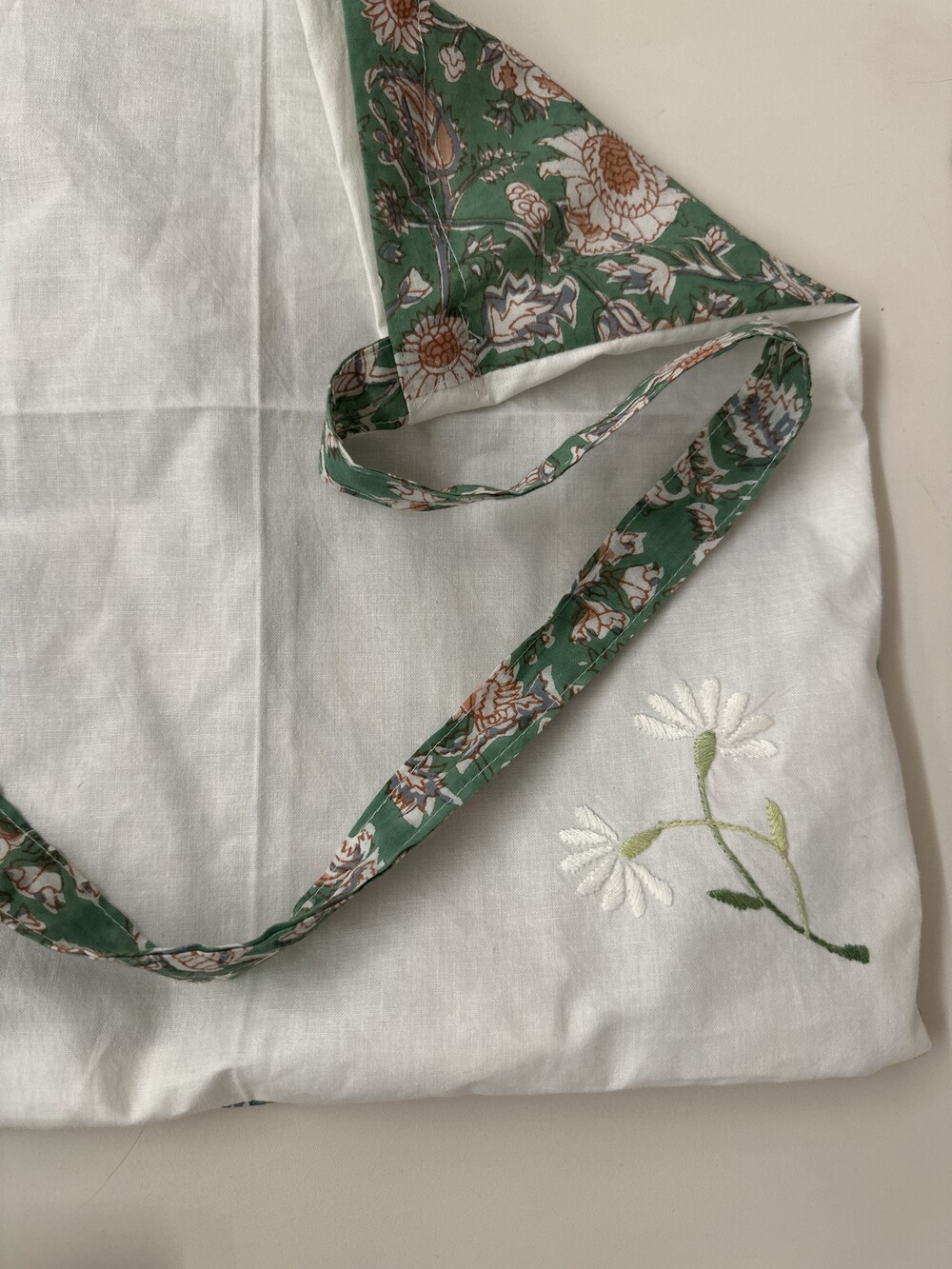 들국화 자수가 아름다운 풍경의 옥양목과 우드블럭프린팅의 가방이에요!한정수량이고