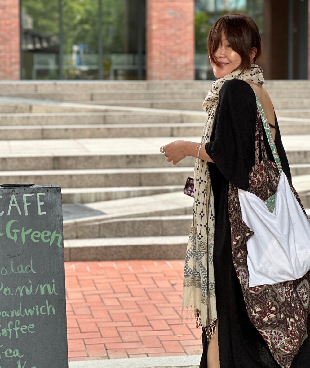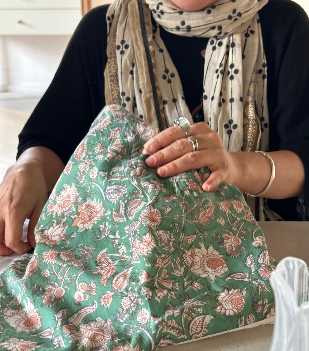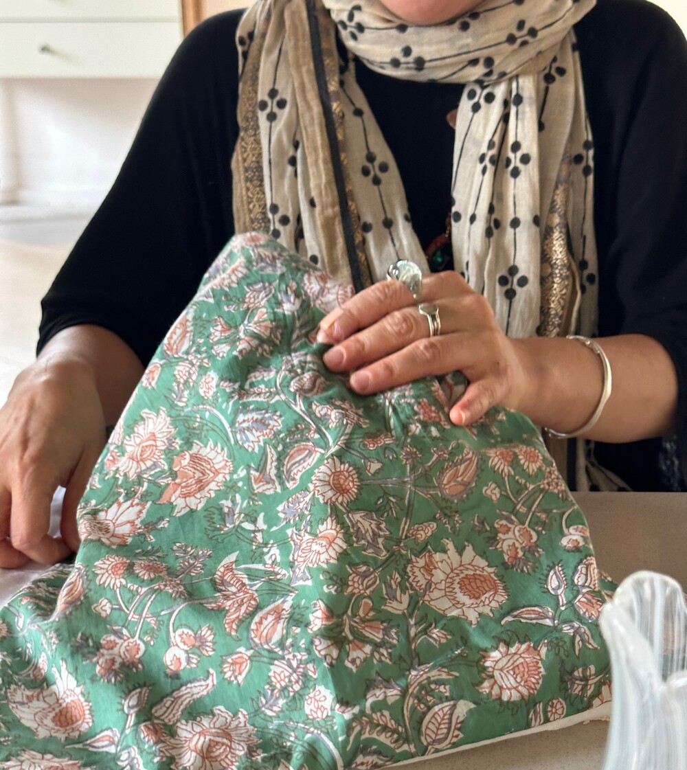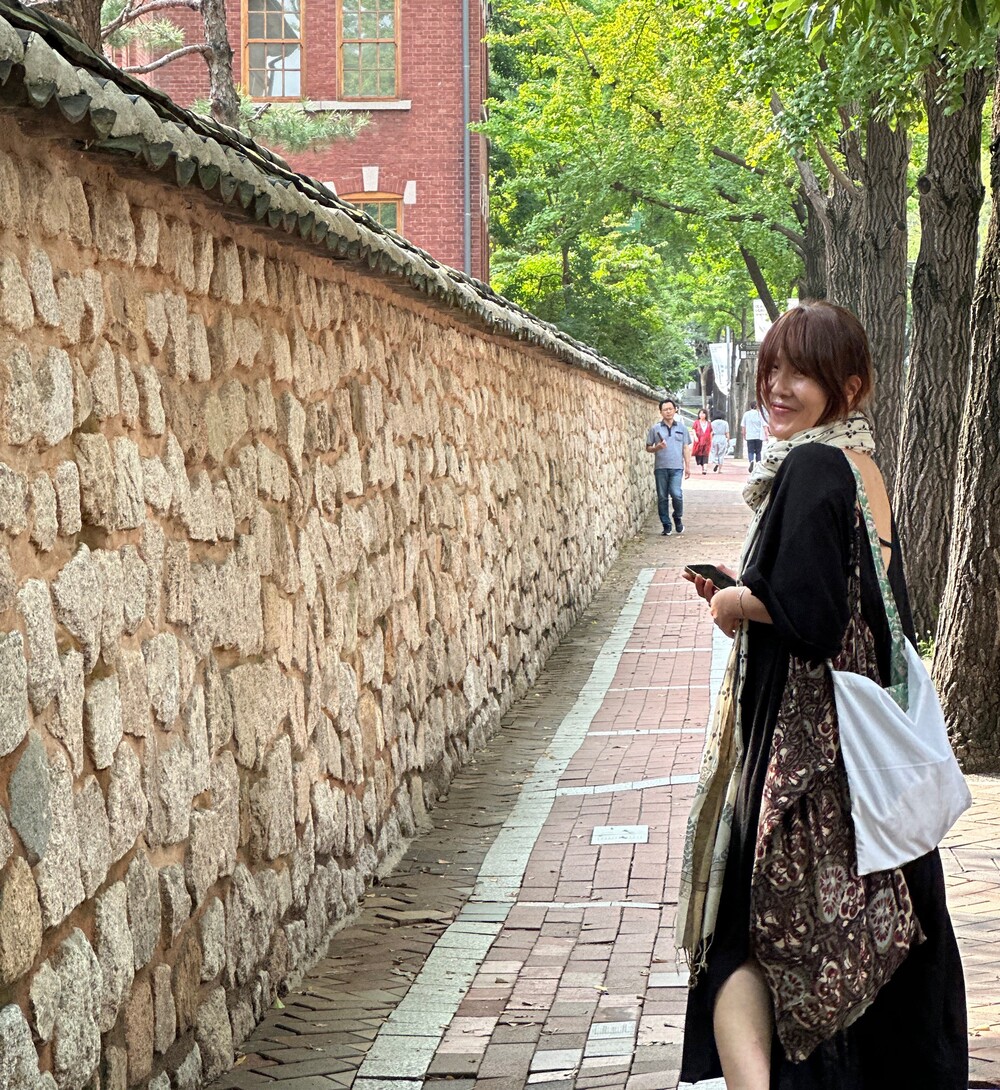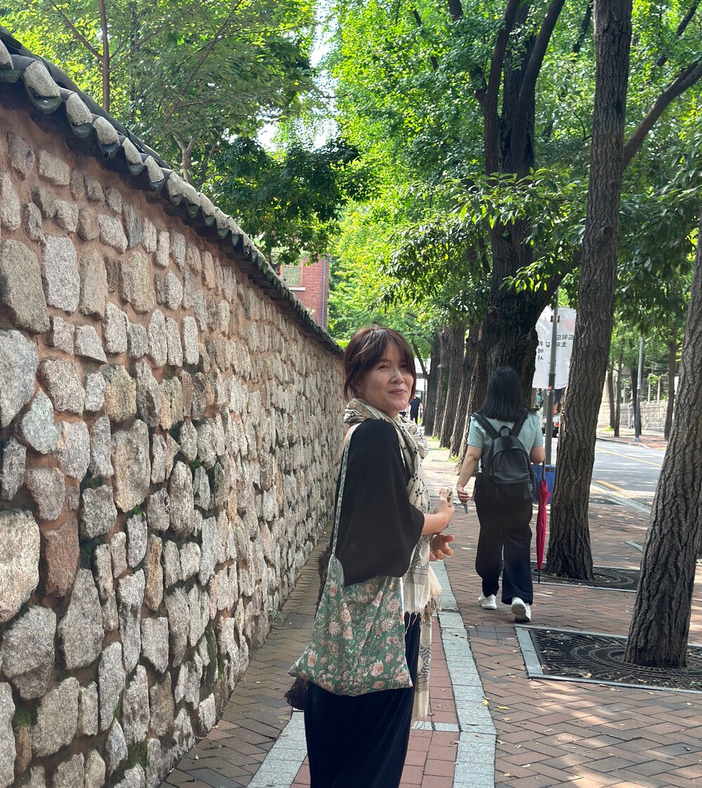 들국화 자수가 아름다운 풍경의 옥양목과 우드블럭프린팅의 가방이에요!한정수량이고