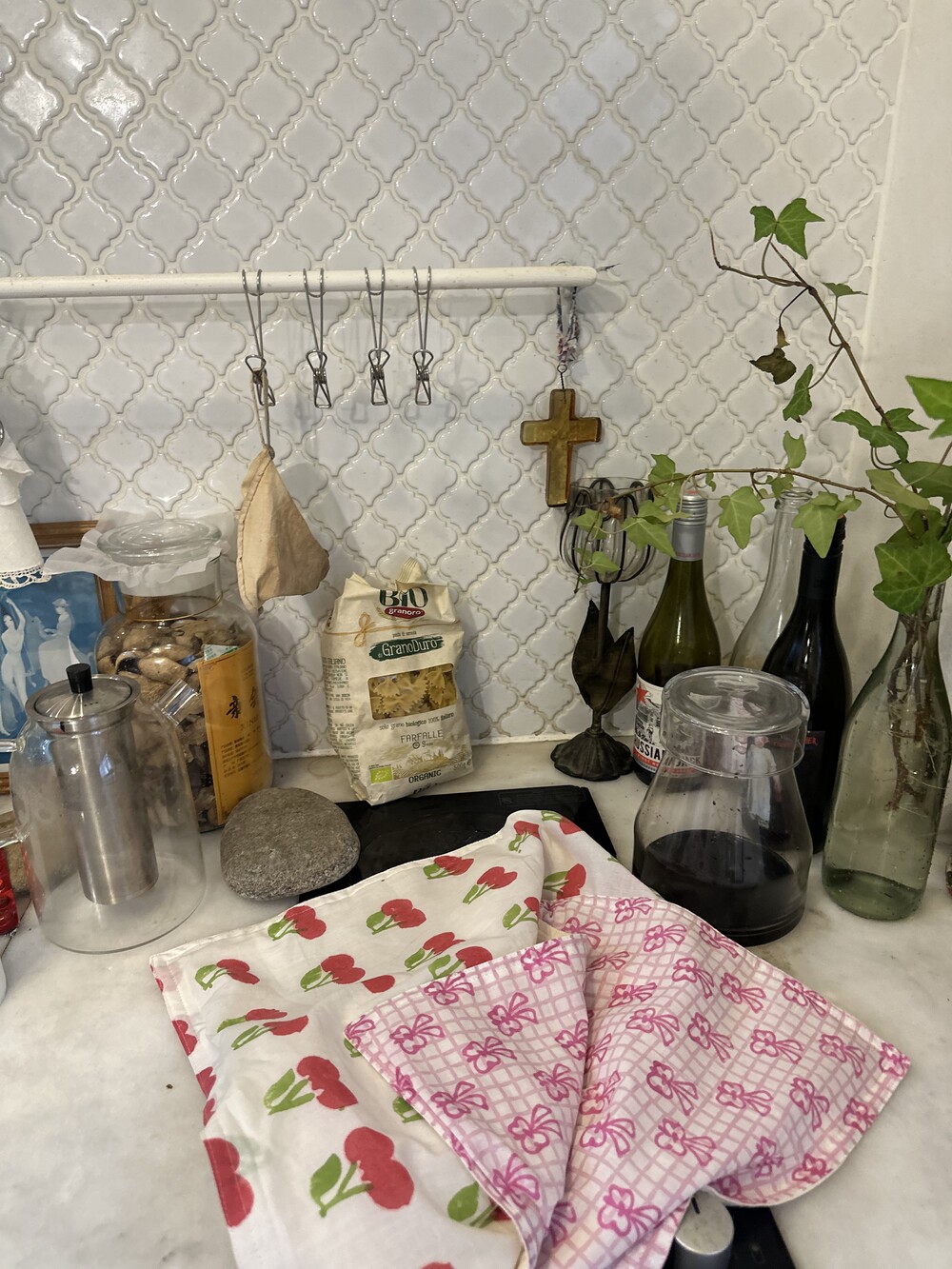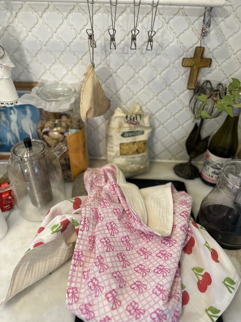 주방의 기쁨,침실의 기쁨,면거즈와 아사 60수의 수건,베갯닛위에 그리고 주방에 그냥 기분좋게❤️ 30*40사이즈에요.