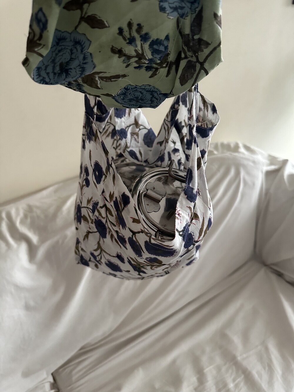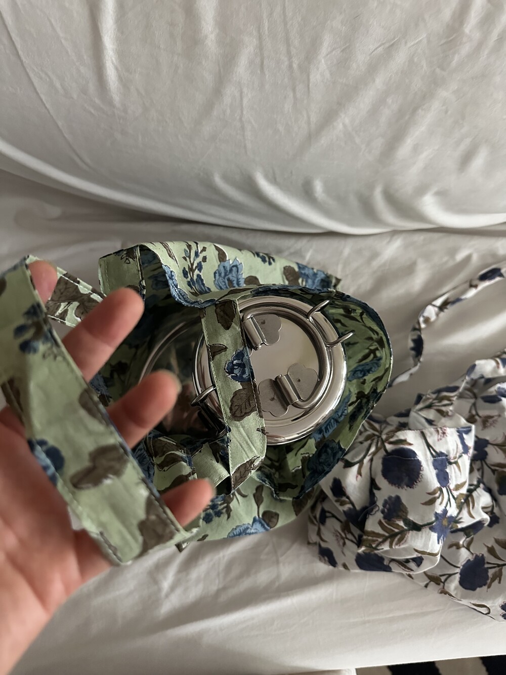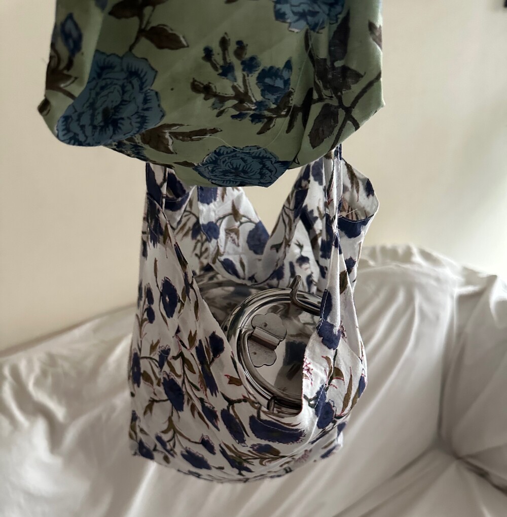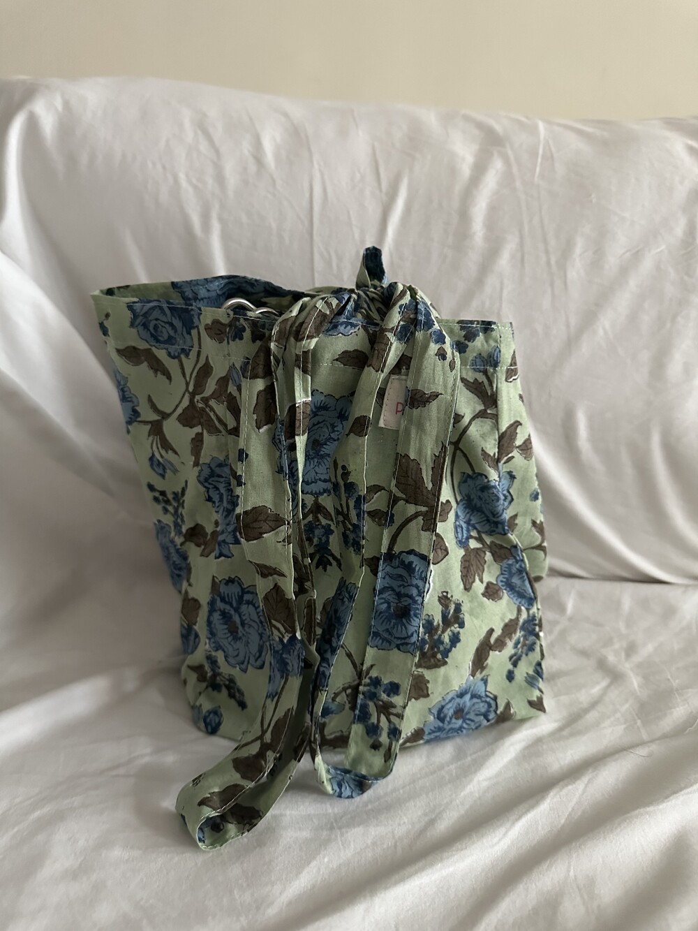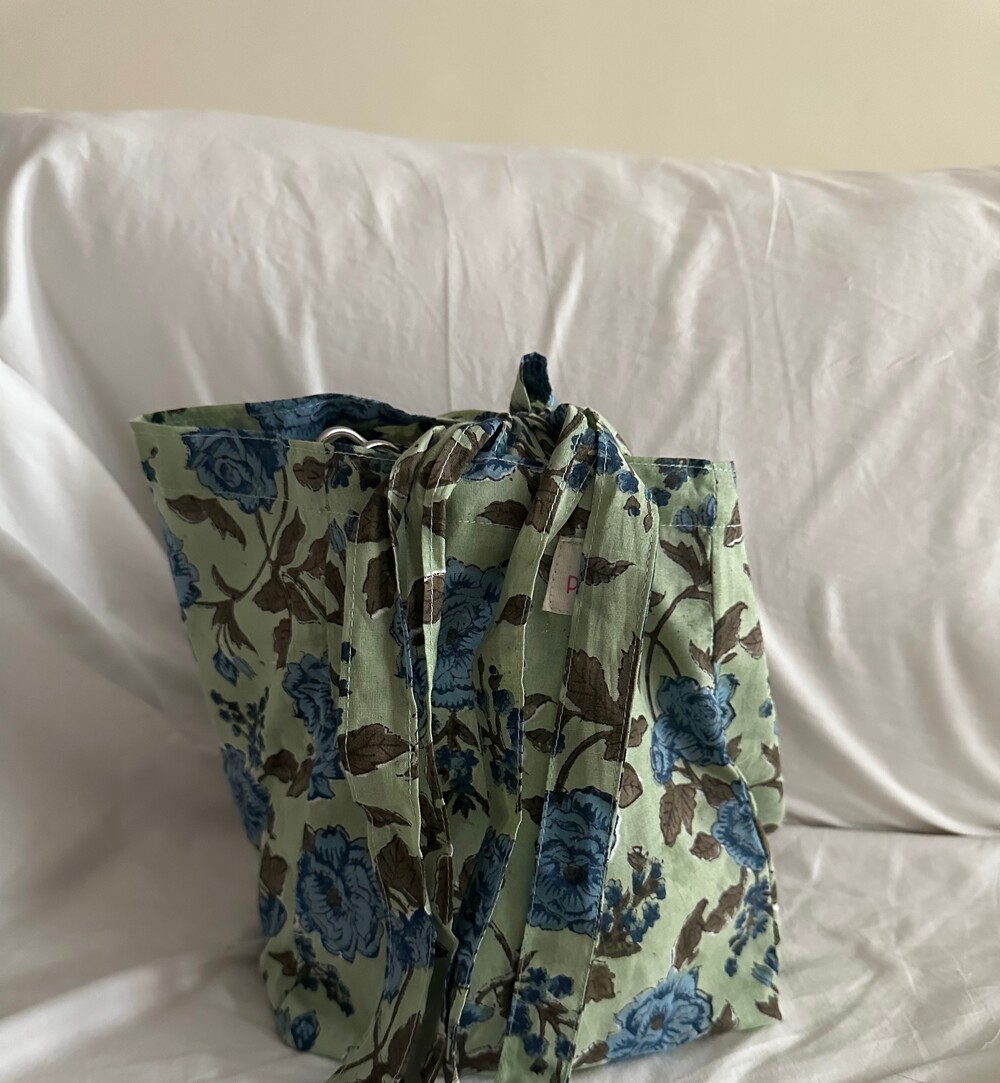 두가지 패턴의 면가방으로 제작되고 민트컬러가 좀 더 힘이 있어요 (바탕컬러가 있으니,)그러나 끈으로 조여서 묶으심 되고요❤️ 끈길이 77로 넉넉해서 매고 다니기도 그리고 꽉 묶어도 좋아요!