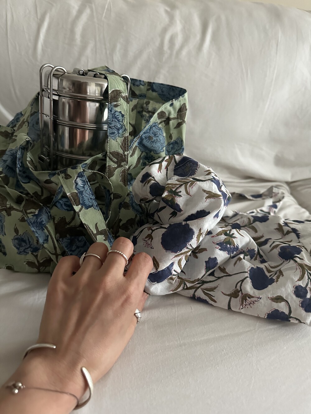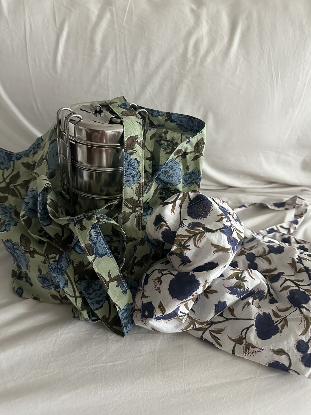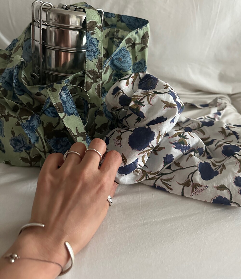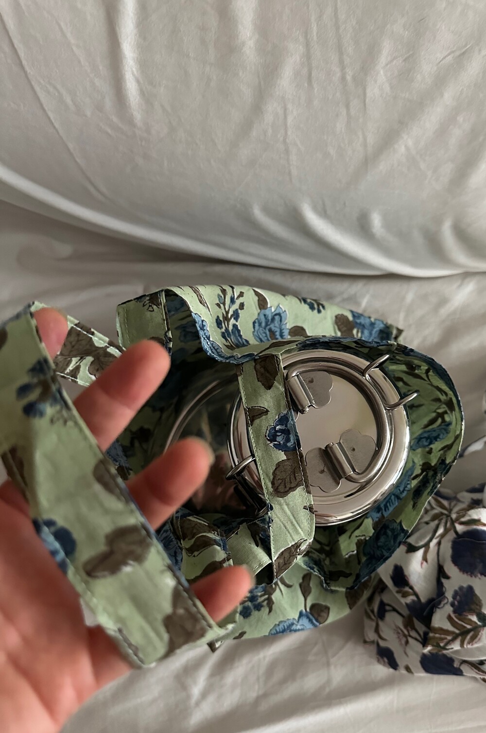 두가지 패턴의 면가방으로 제작되고 민트컬러가 좀 더 힘이 있어요 (바탕컬러가 있으니,)그러나 끈으로 조여서 묶으심 되고요❤️ 끈길이 77로 넉넉해서 매고 다니기도 그리고 꽉 묶어도 좋아요!