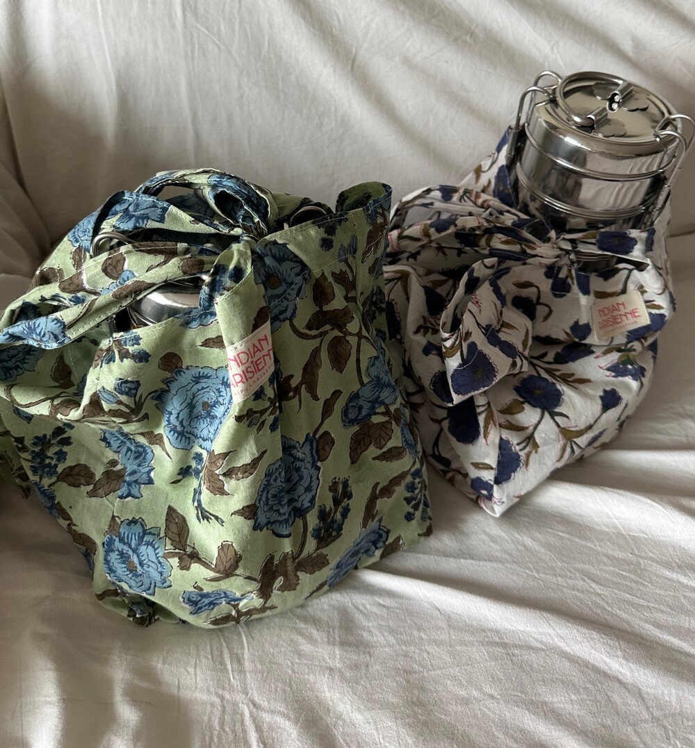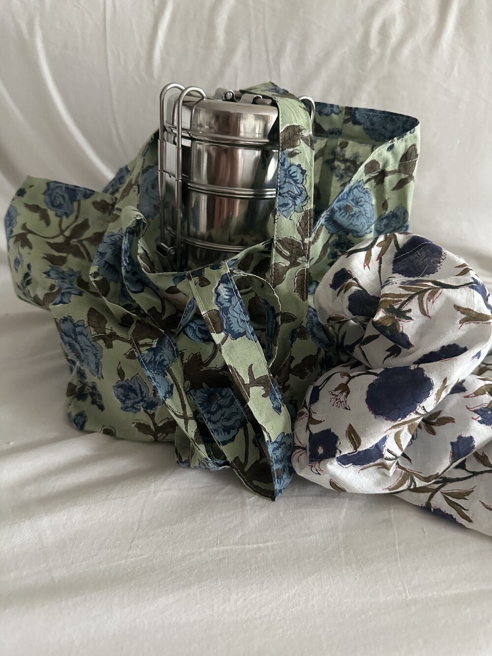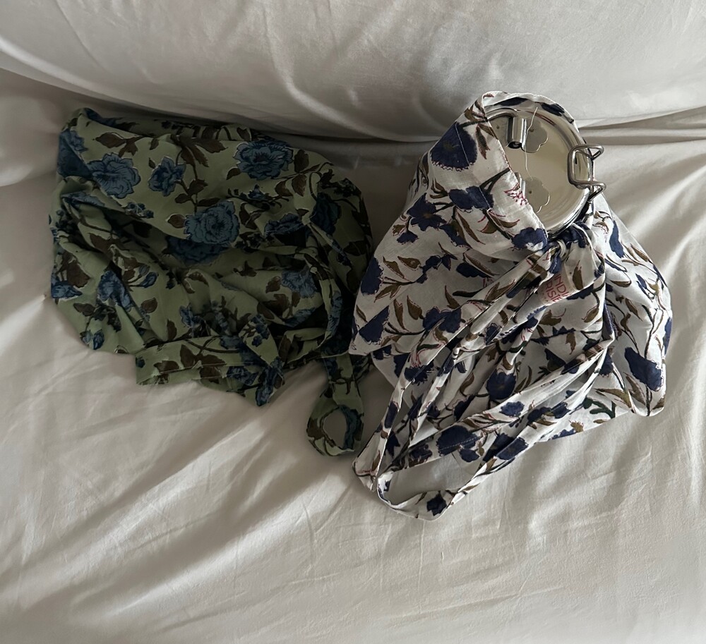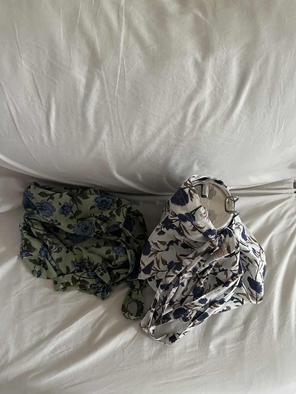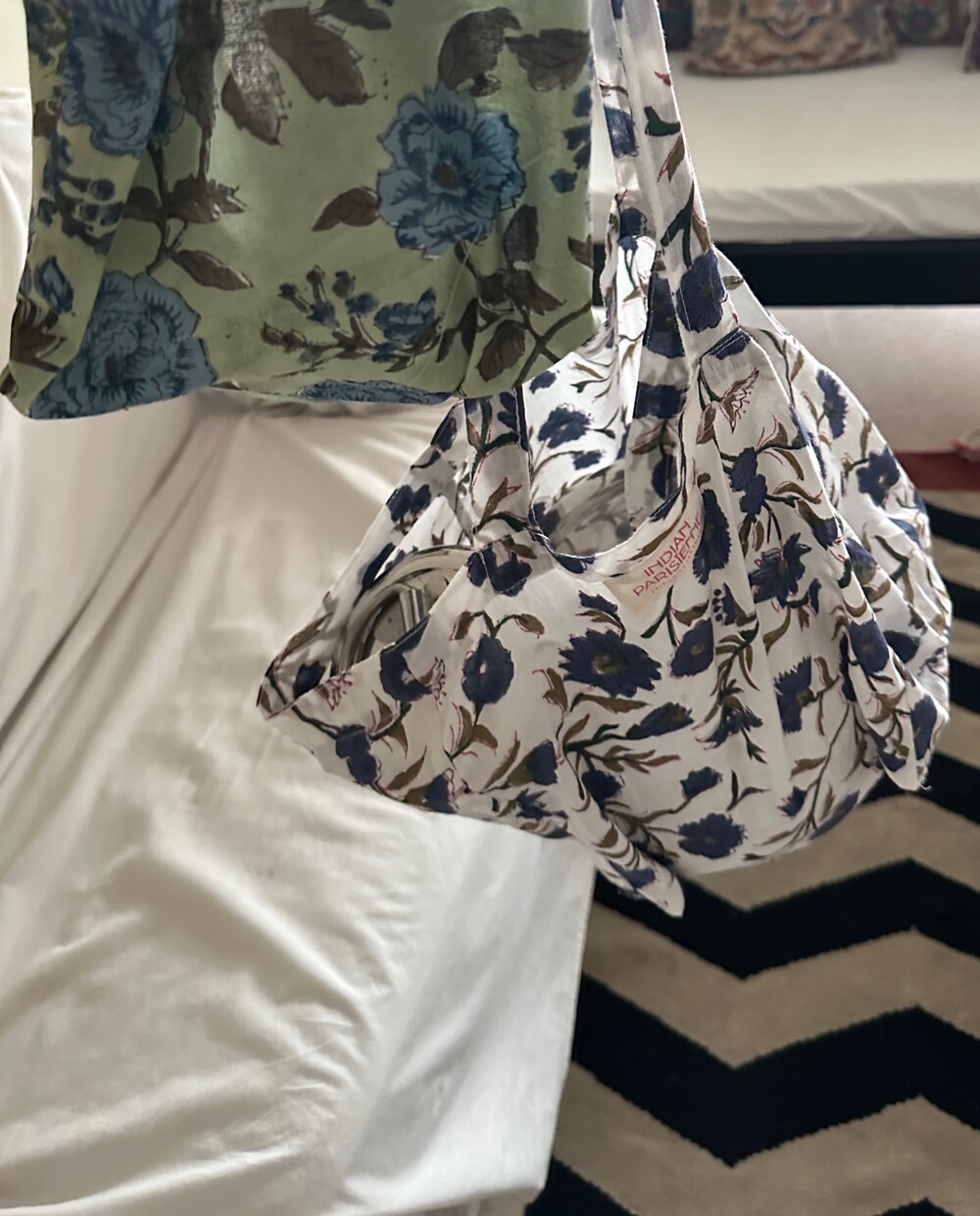 두가지 패턴의 면가방으로 제작되고 민트컬러가 좀 더 힘이 있어요 (바탕컬러가 있으니,)그러나 끈으로 조여서 묶으심 되고요❤️ 끈길이 77로 넉넉해서 매고 다니기도 그리고 꽉 묶어도 좋아요!