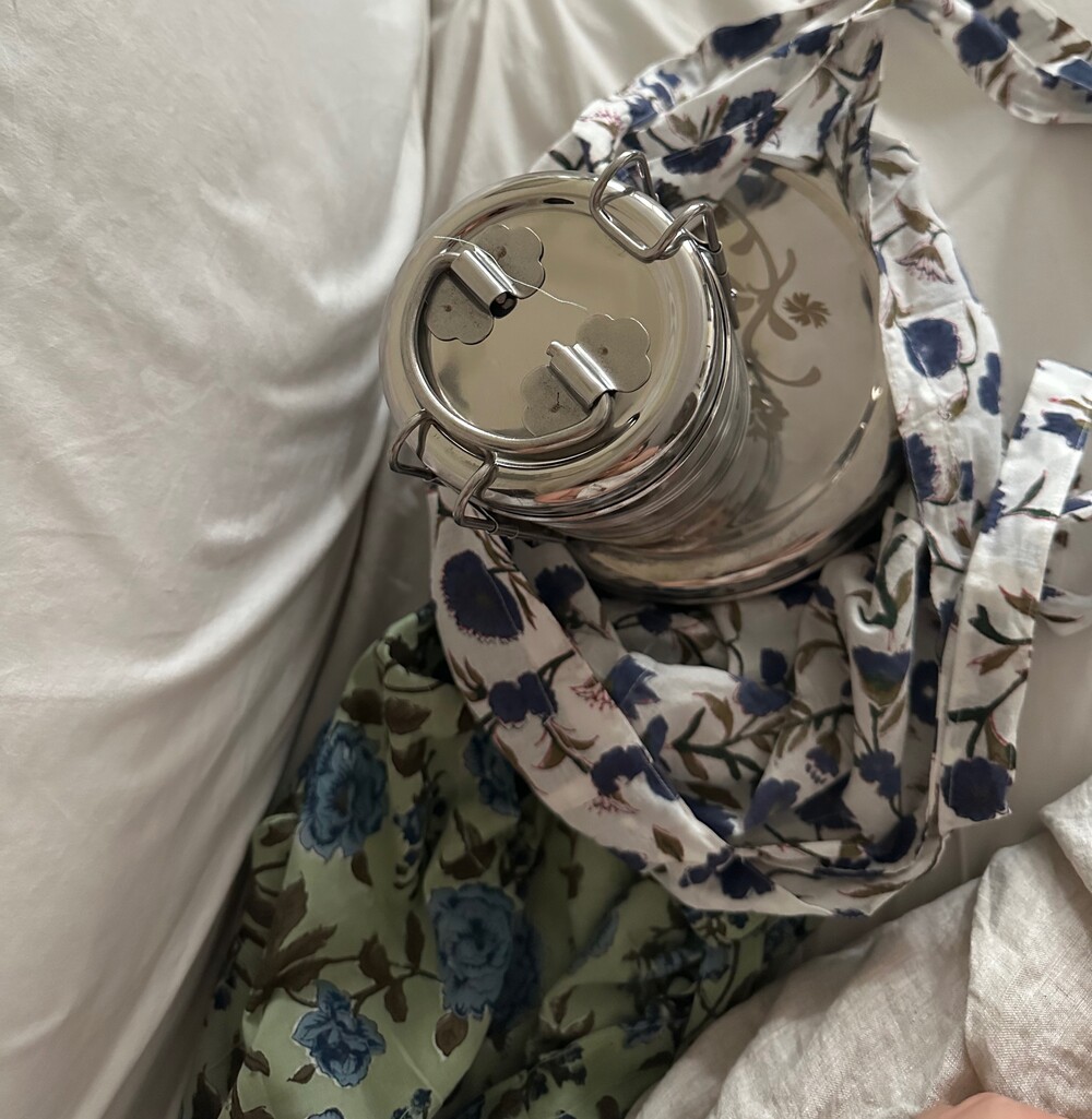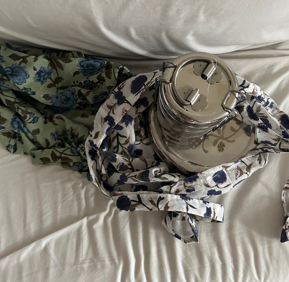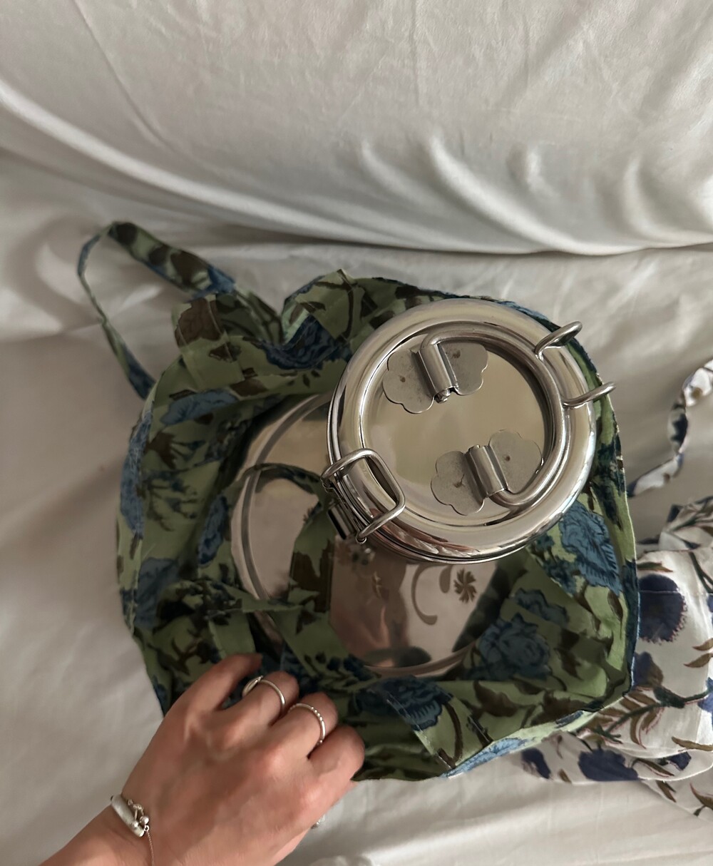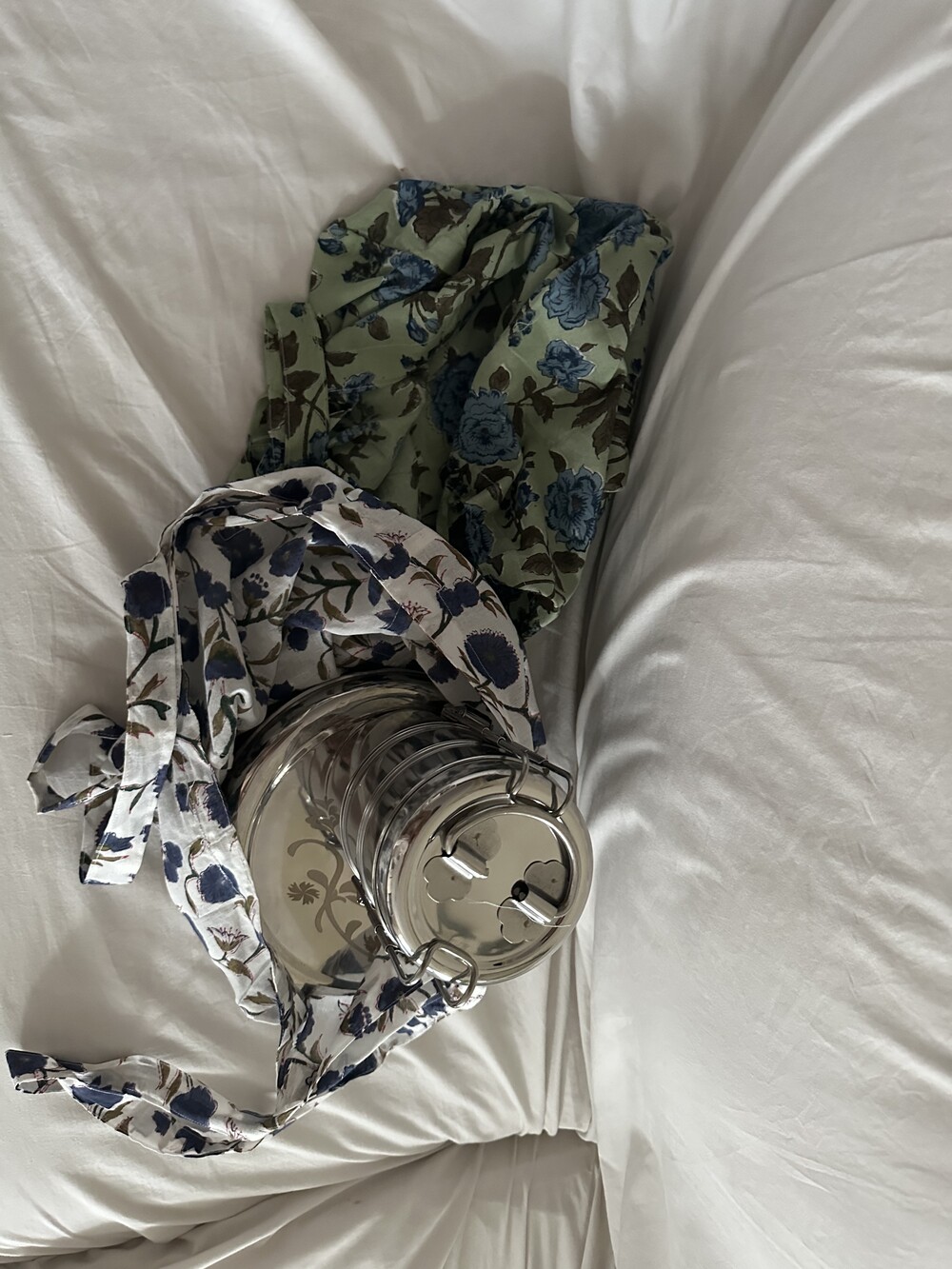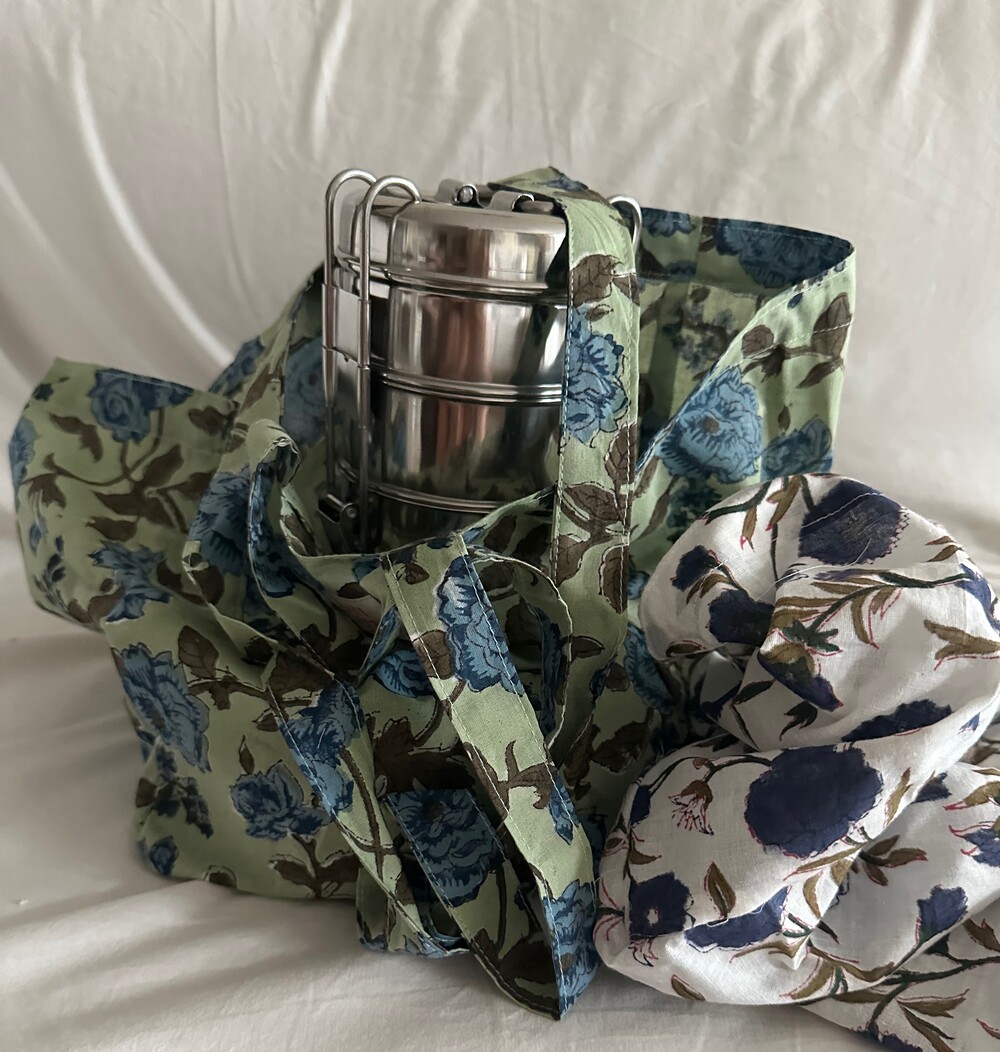 두가지 패턴의 면가방으로 제작되고 민트컬러가 좀 더 힘이 있어요 (바탕컬러가 있으니,)그러나 끈으로 조여서 묶으심 되고요❤️ 끈길이 77로 넉넉해서 매고 다니기도 그리고 꽉 묶어도 좋아요!