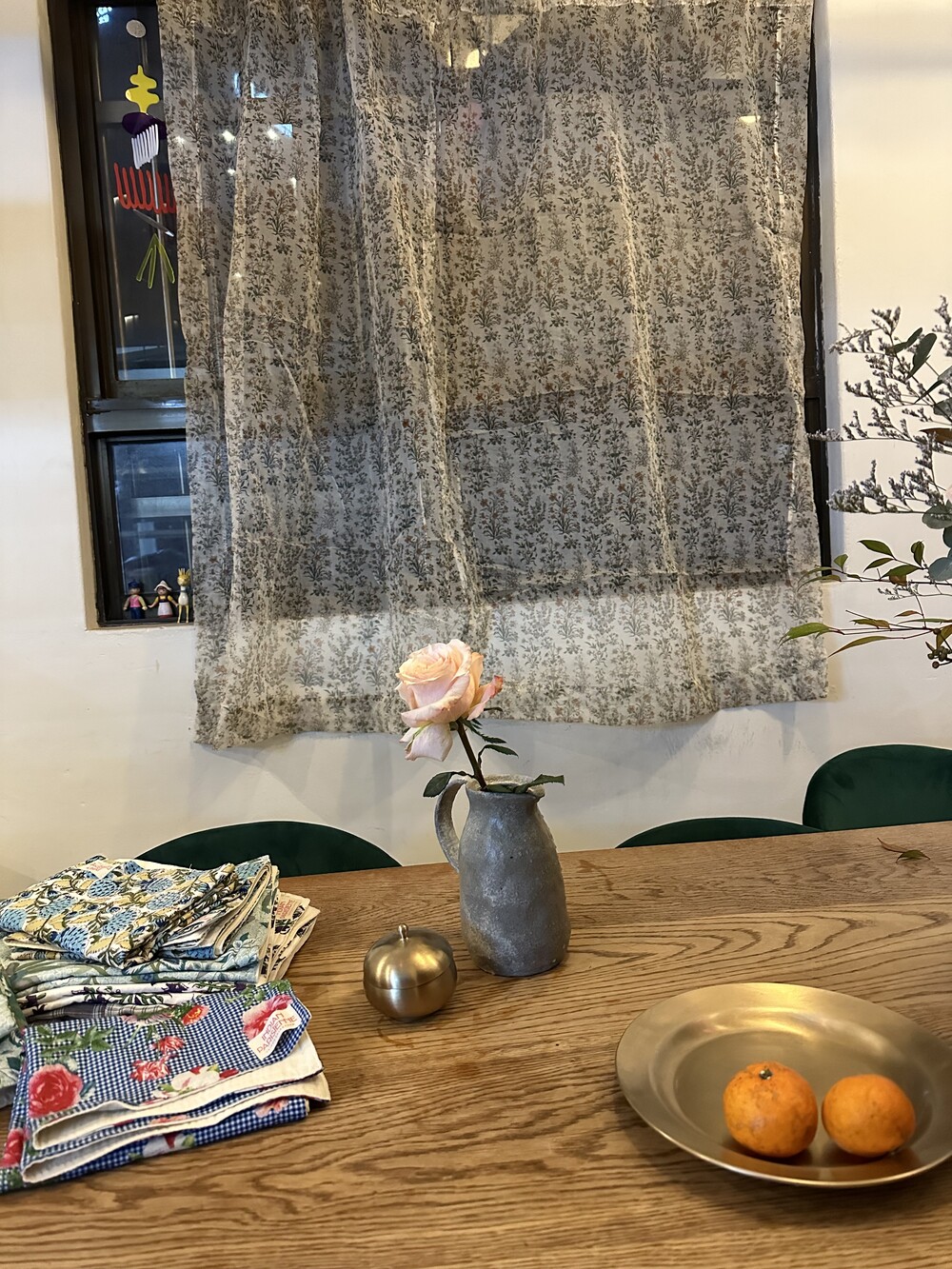 공간의 분위기를 만드는 핵심이 빛이라면 분위기의 핵심은 빛의 그라데이션이죠.빛이 너무 꽉차버려도 창백하고 그래서 낮에는 빛으로 밤에는 달빛이나 조명을 살리는 패브릭을 잘 선택하는게 좋은것같아요.요렇게 패브릭을 잘 선택하고 의자를 두고 식물을 두고!ㅎㅎ