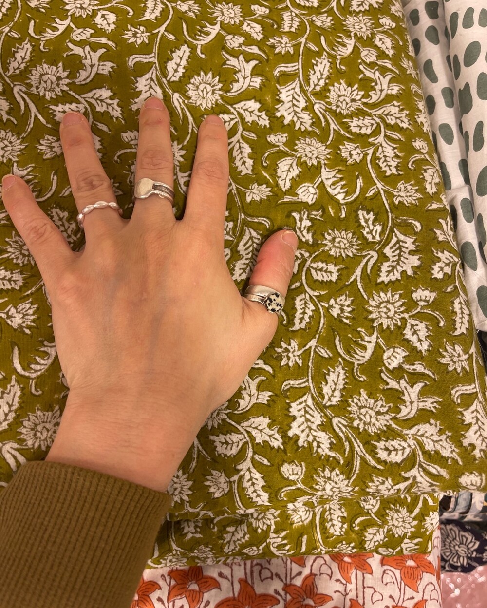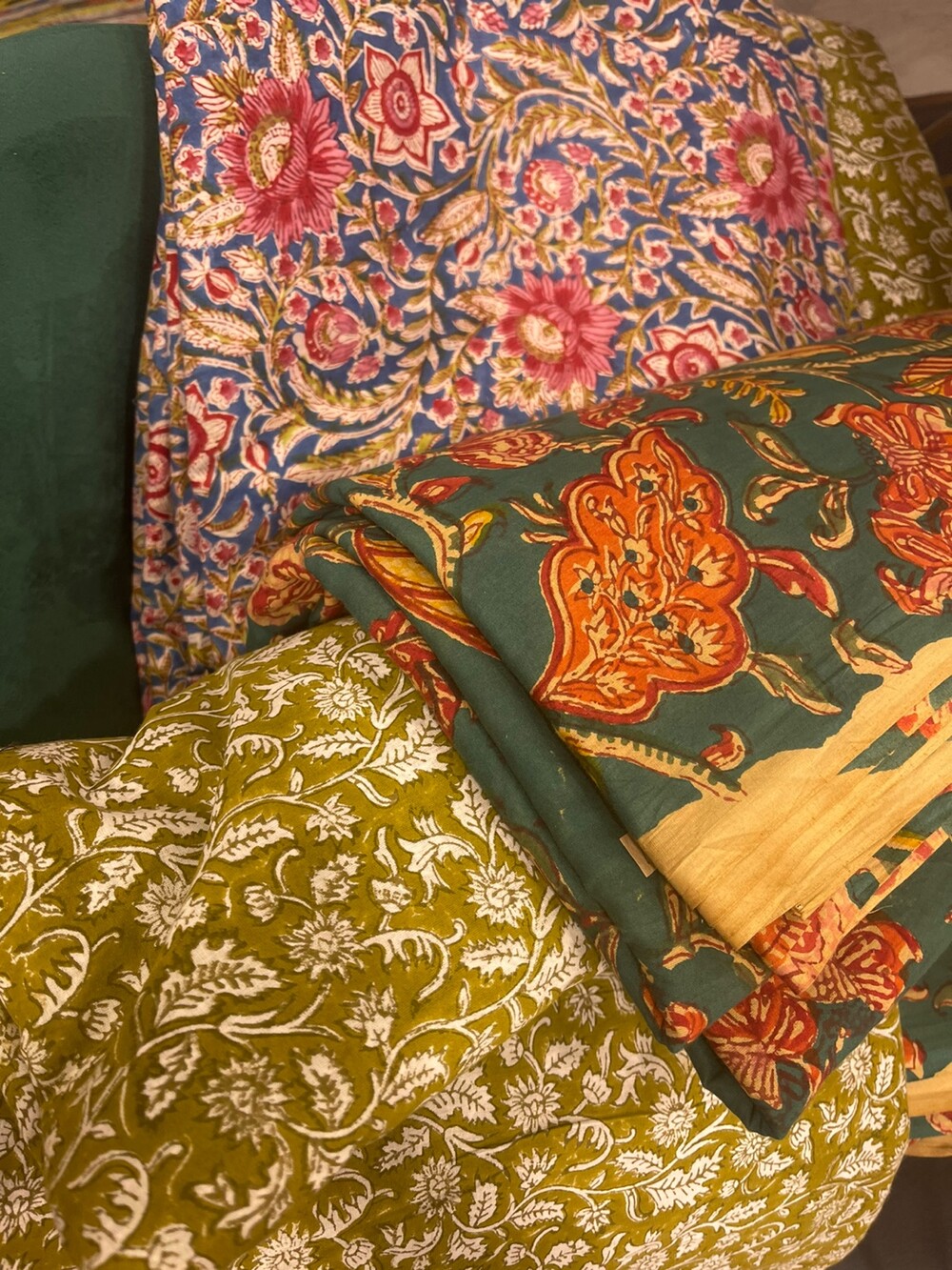 올리브와 머스터드 컬러의 아사 60수 원단입니다.