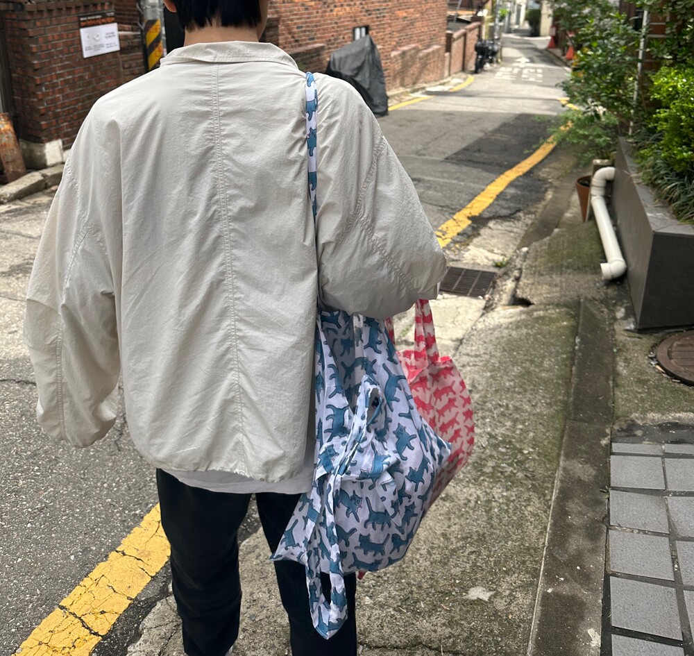 기계 프린팅이 아닙니다,손으로 찍은것이고 손맛이 나니 똑바르지않아요🙏컬러도 조금씩 다릅니다.끈길이 조금 길게디자인되었어요