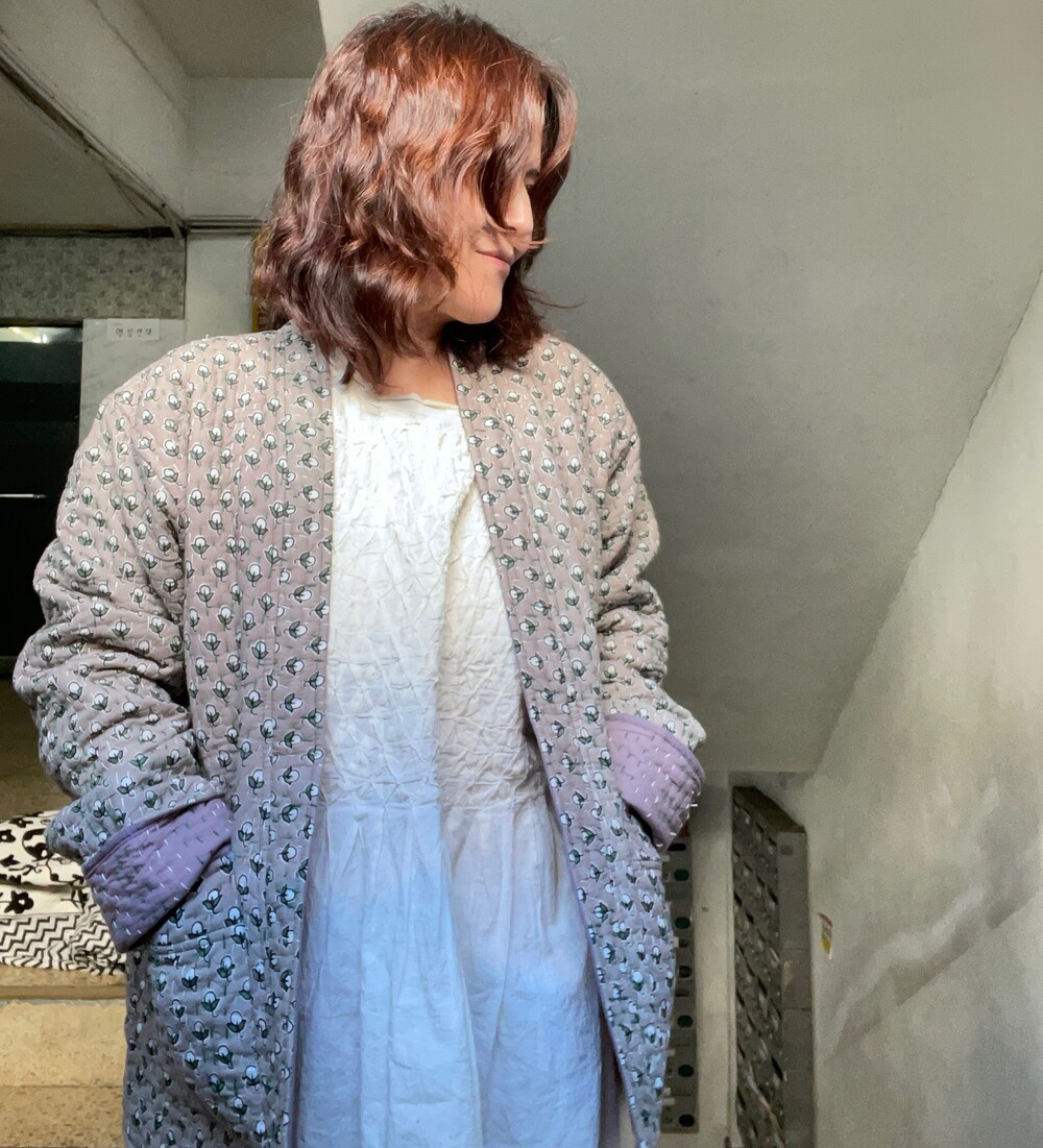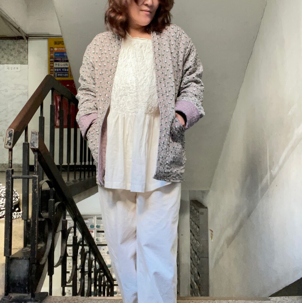 소매기장 63센티미터로 접어서 안감이 보이게 입으시면 예쁘고요 가슴둘레는 57정도되고 기장은 72센티정도되는 목솨솜이 살짝들어가서 지금부터 초겨울까지 입기좋은 두께의 코트입니다.