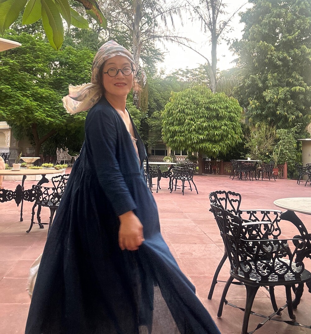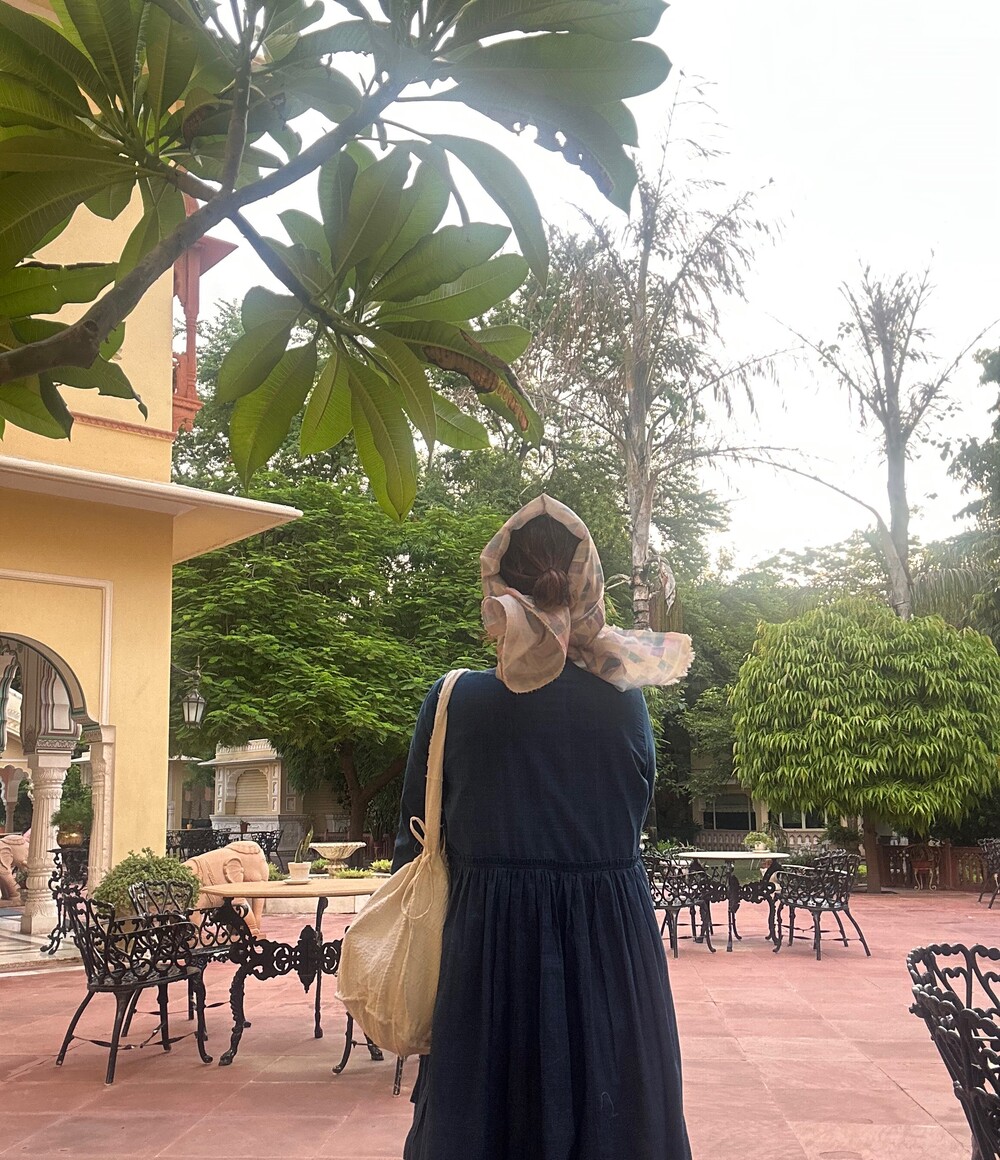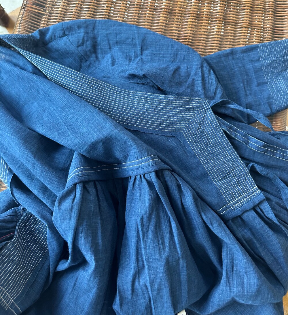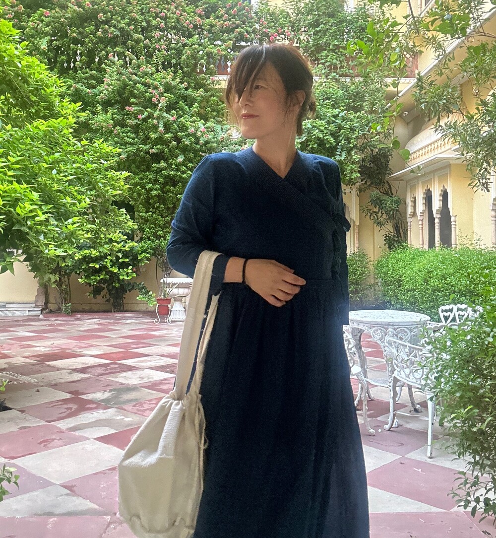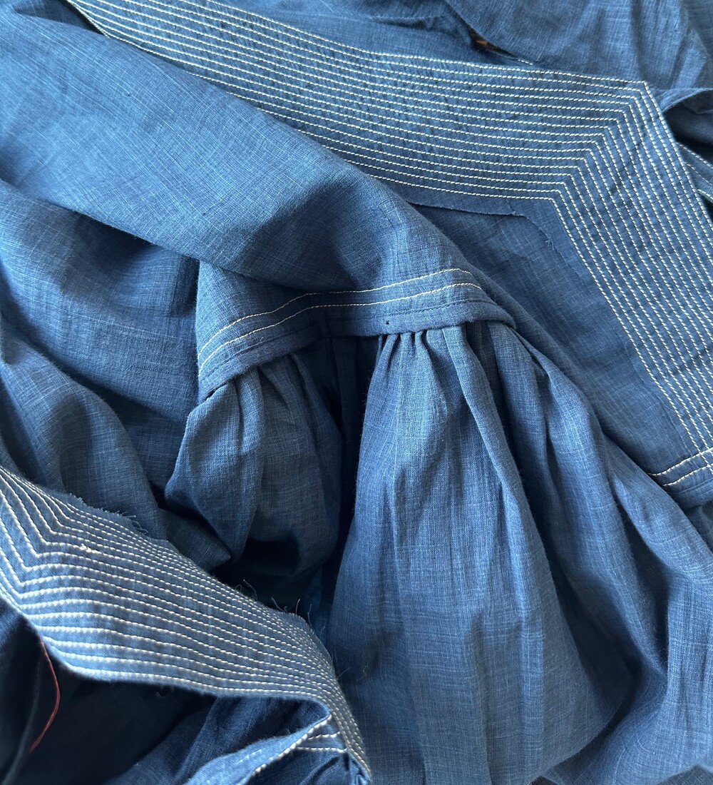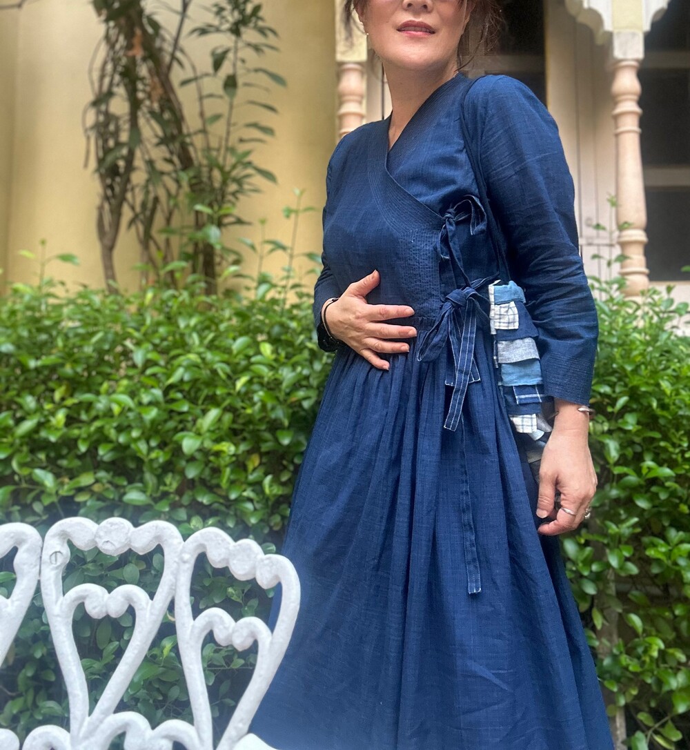 직조된 면에 인디고 염으로 그이후 자이푸르 작업자들이 바느질을 한 아름다움 공들임 드레스에요.주문후 변심힘드나 신중구매해주세요.