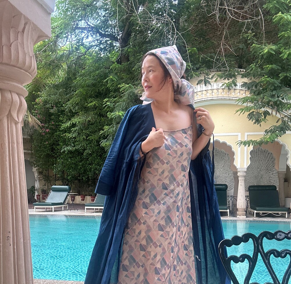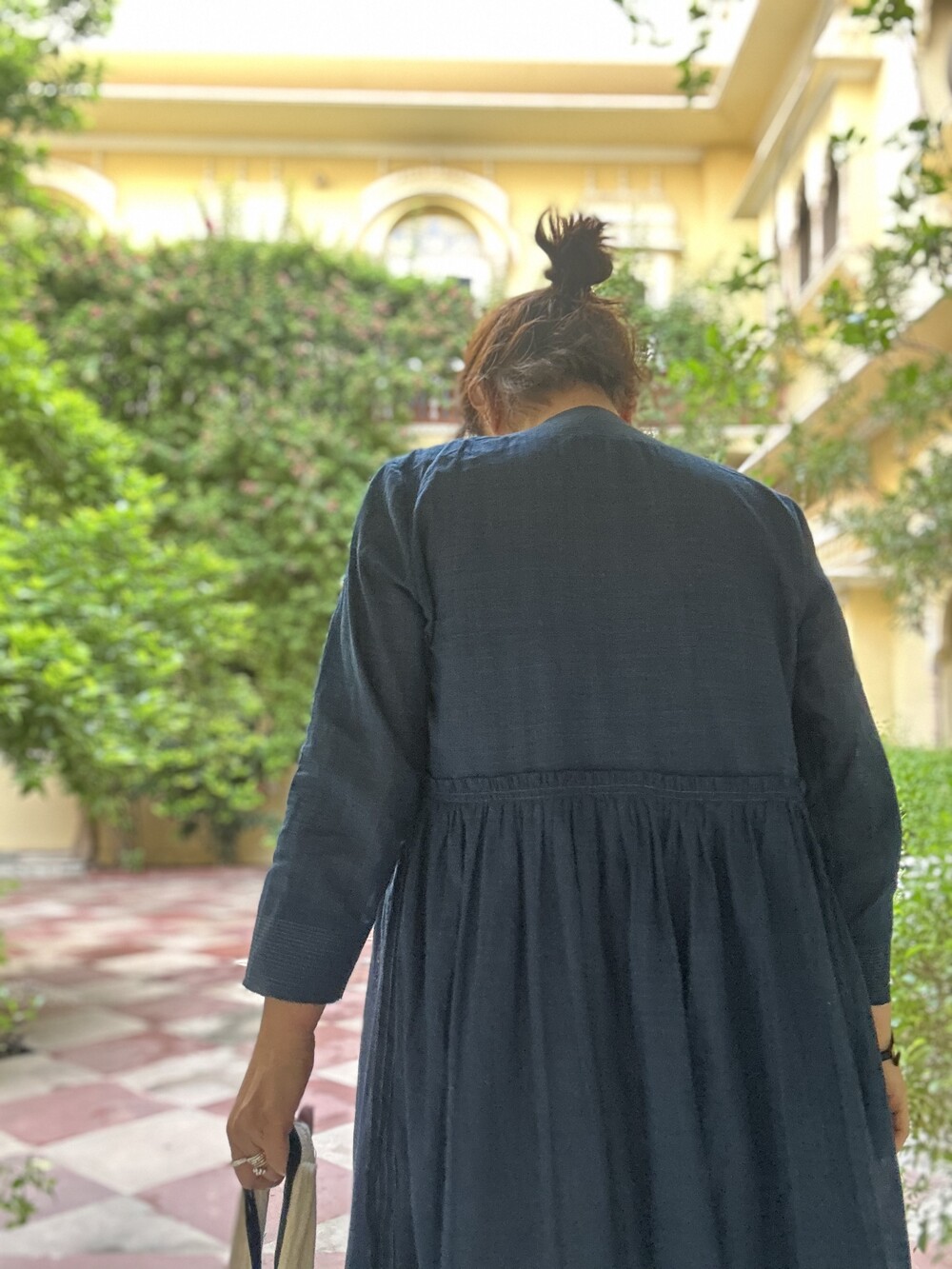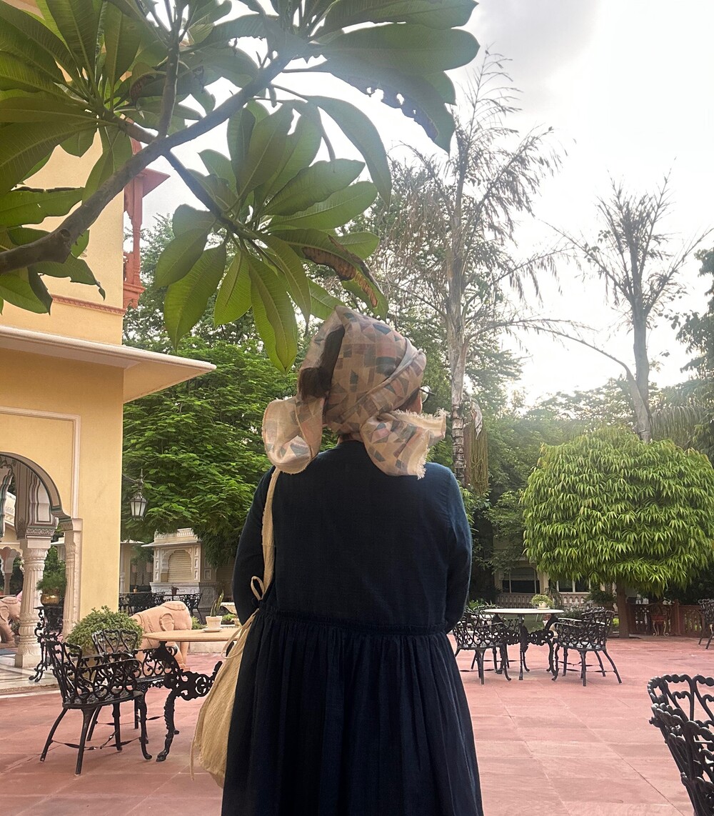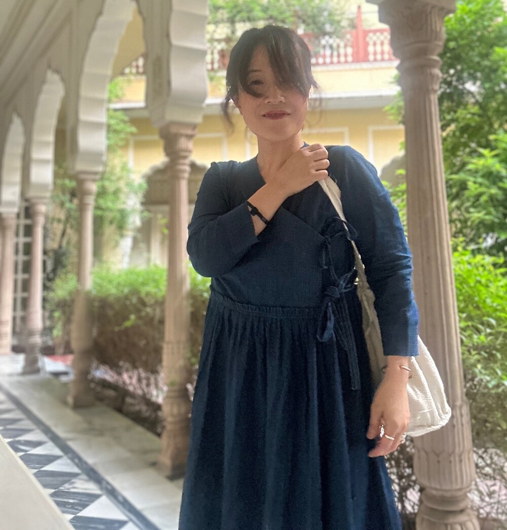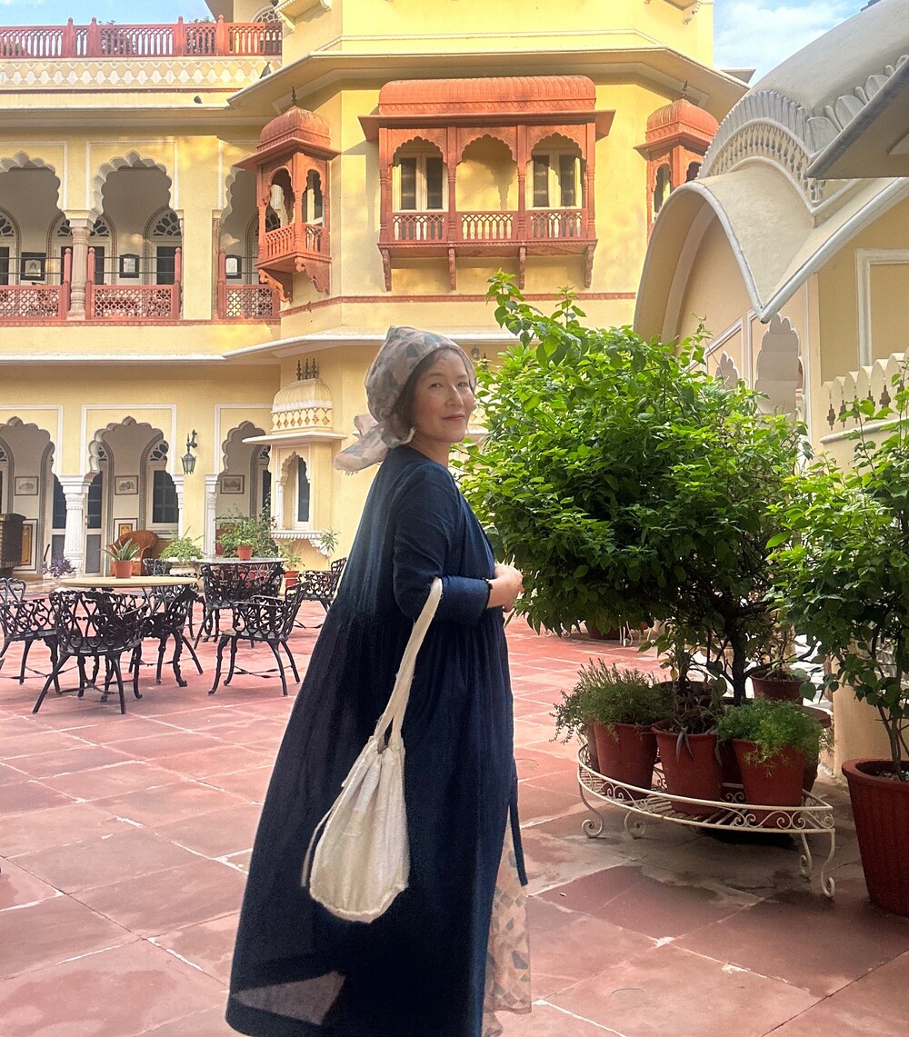 직조된 면에 인디고 염으로 그이후 자이푸르 작업자들이 바느질을 한 아름다움 공들임 드레스에요.주문후 변심힘드나 신중구매해주세요.