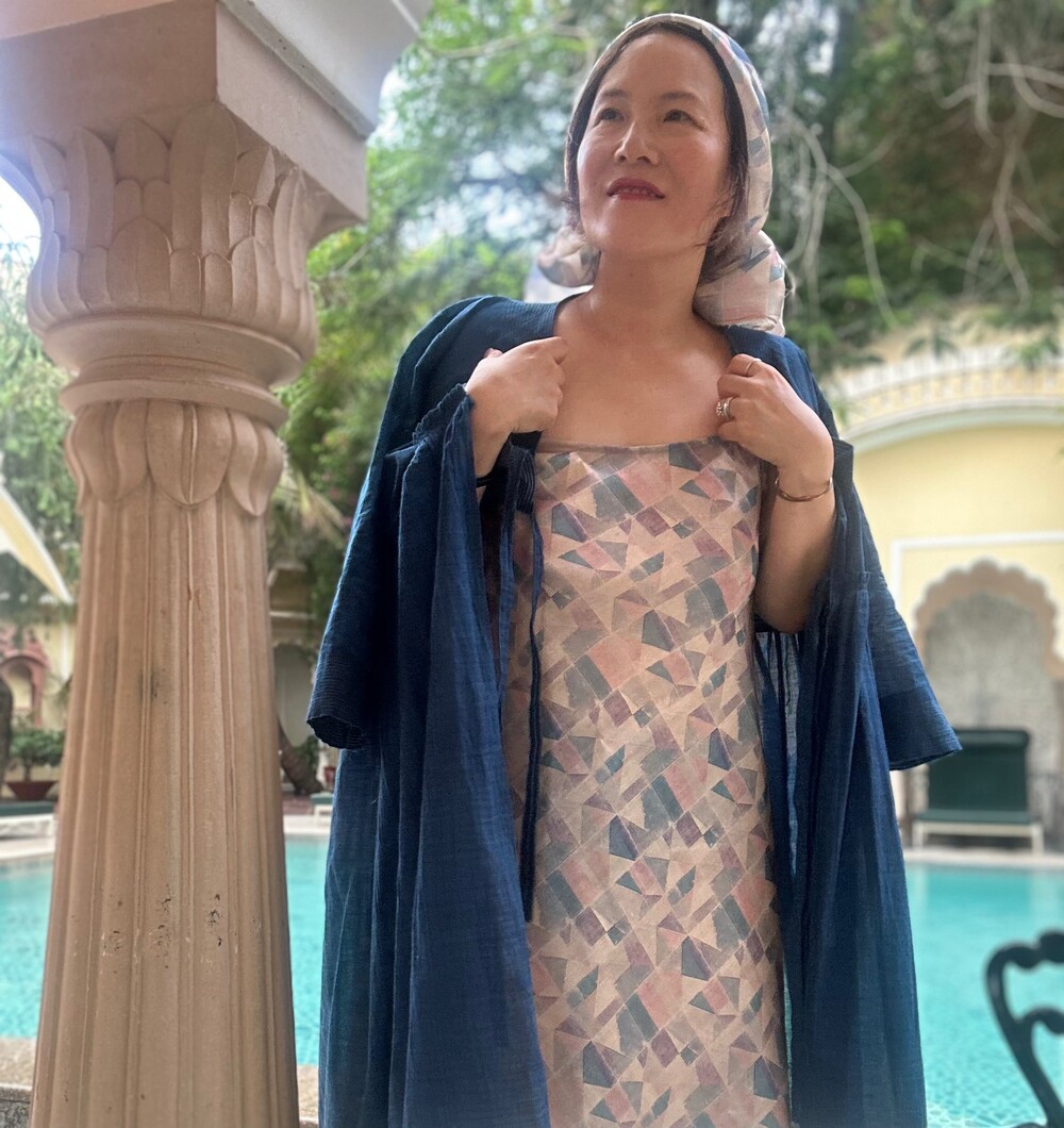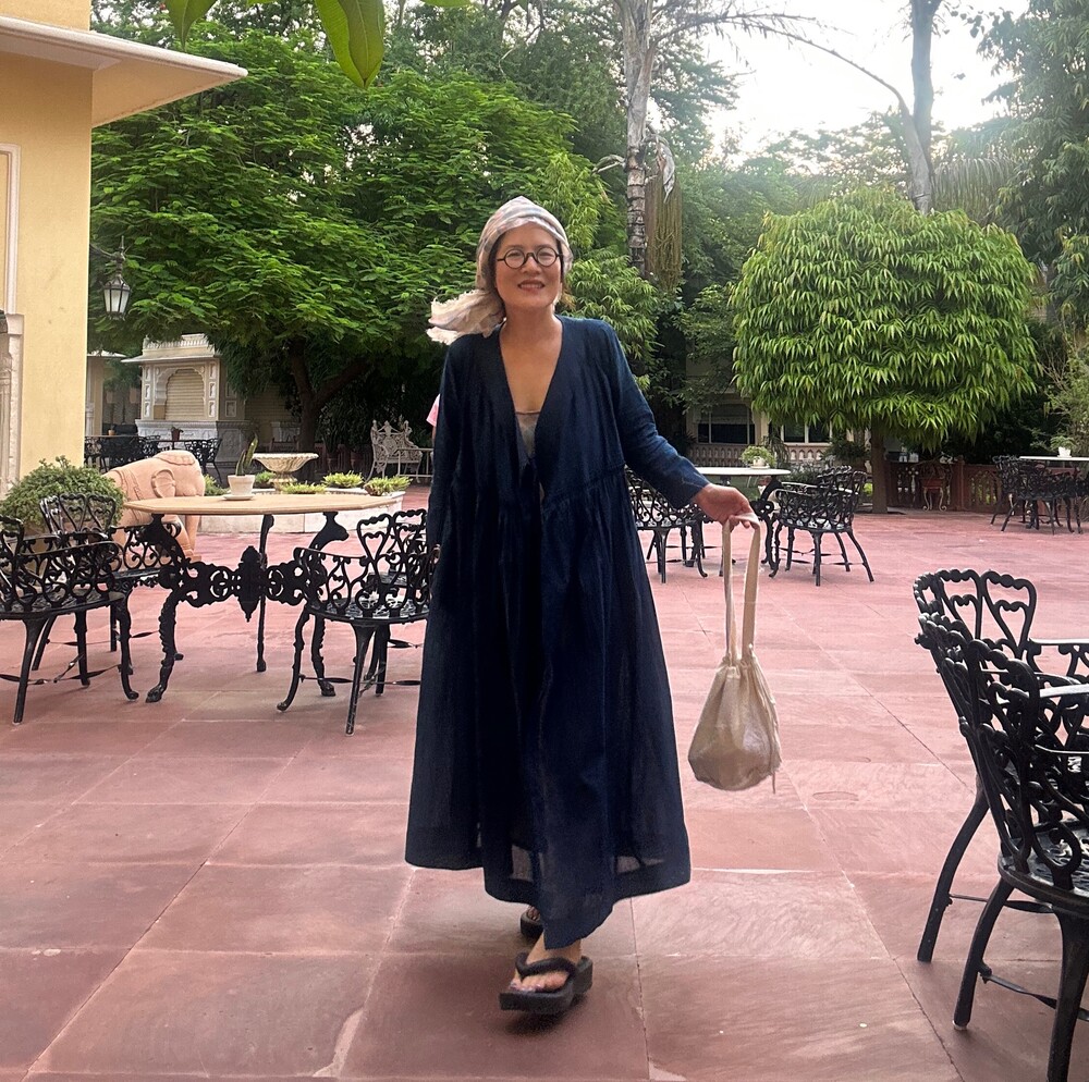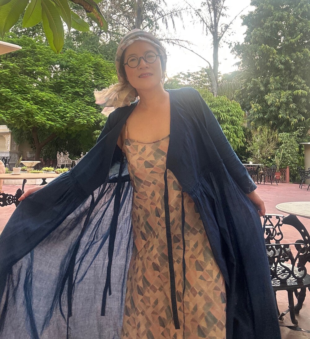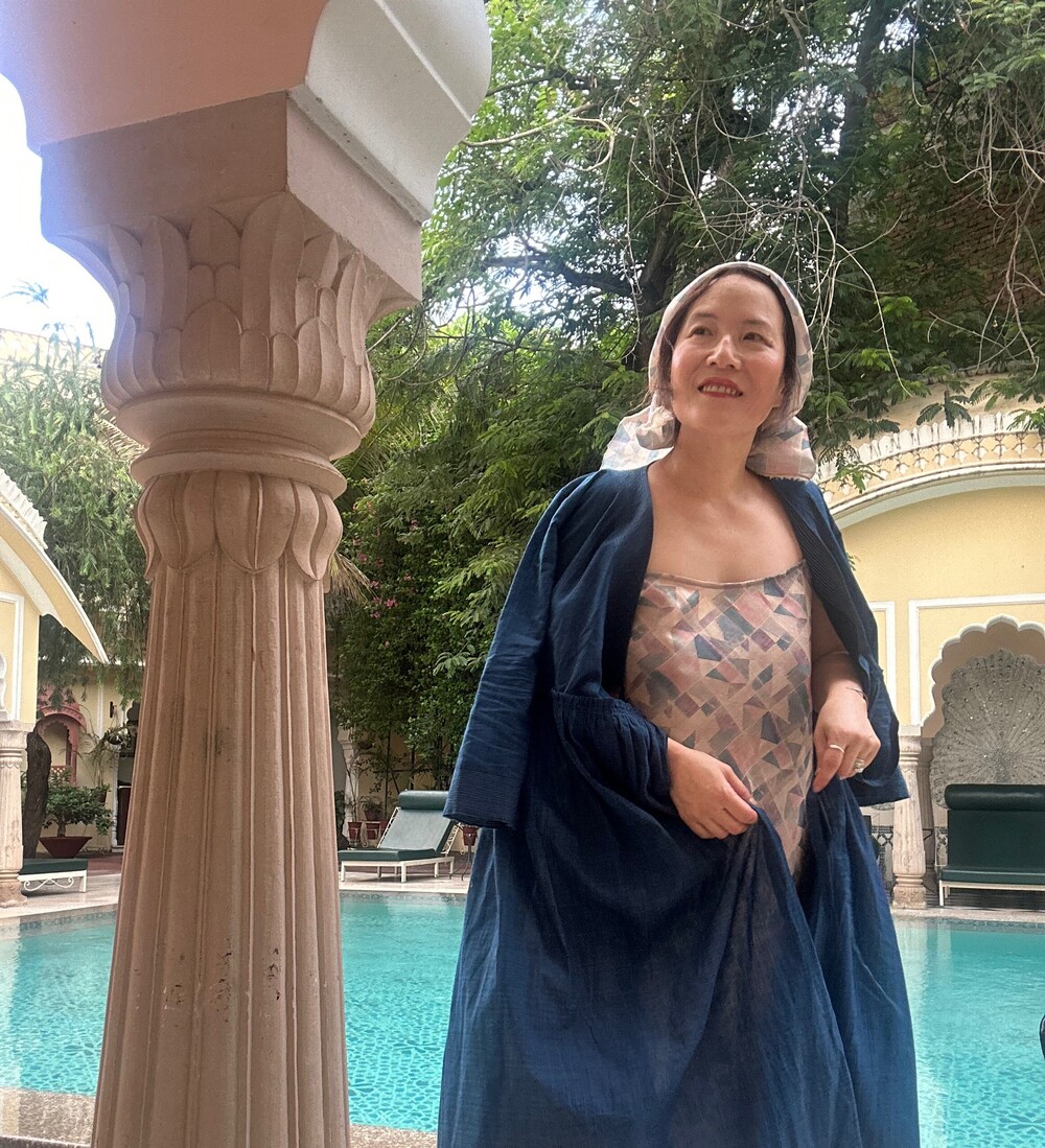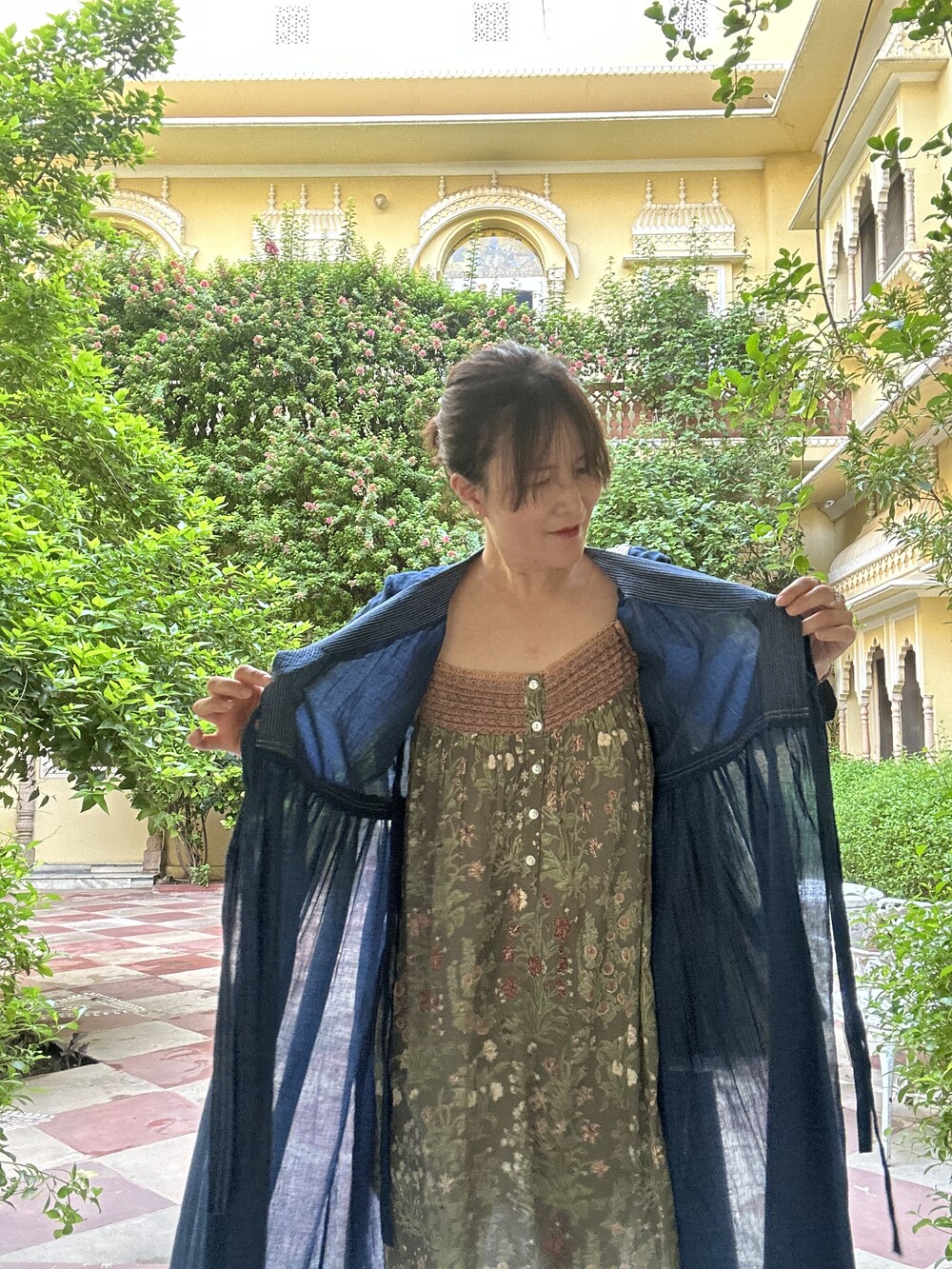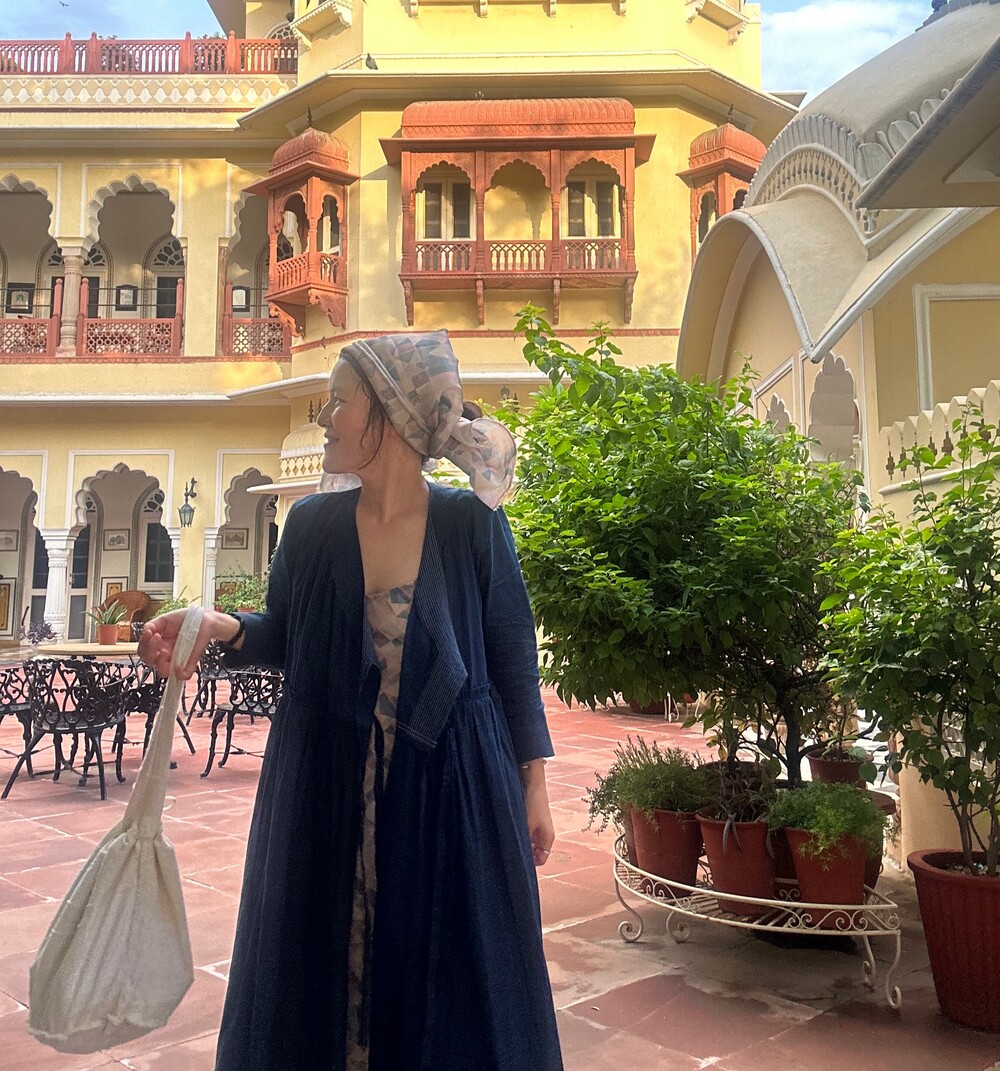 직조된 면에 인디고 염으로 그이후 자이푸르 작업자들이 바느질을 한 아름다움 공들임 드레스에요.주문후 변심힘드나 신중구매해주세요.