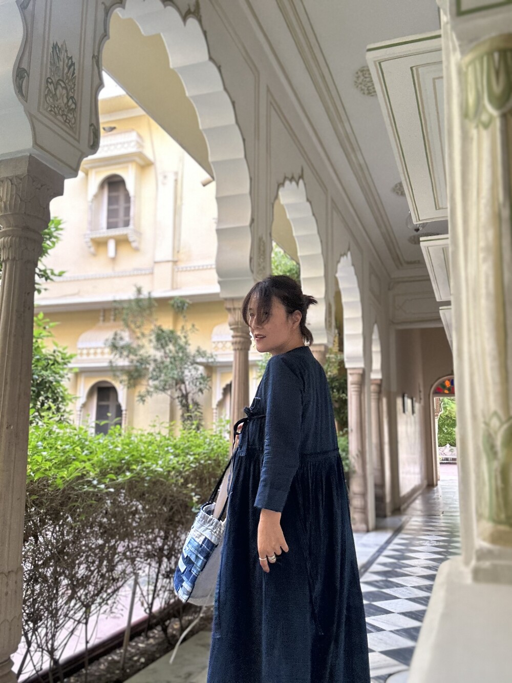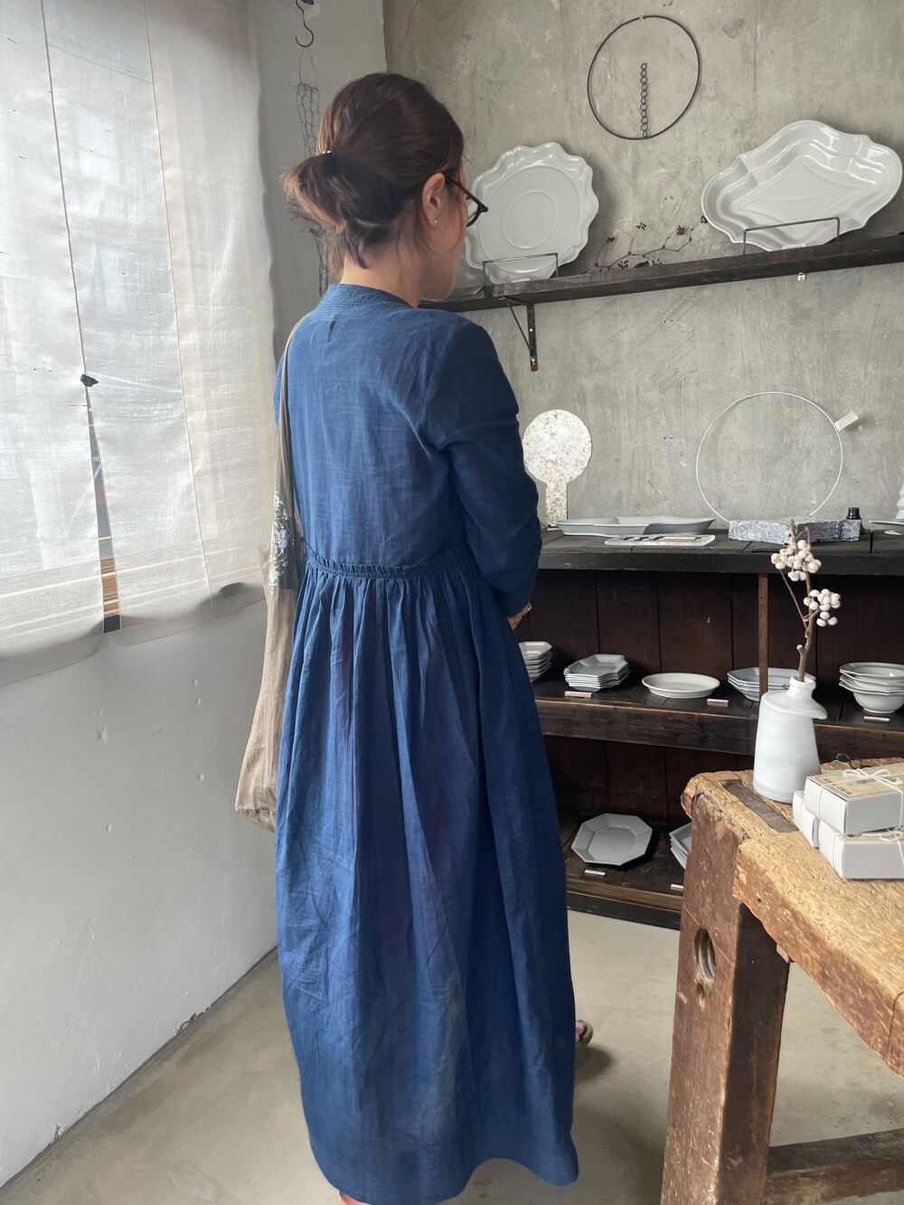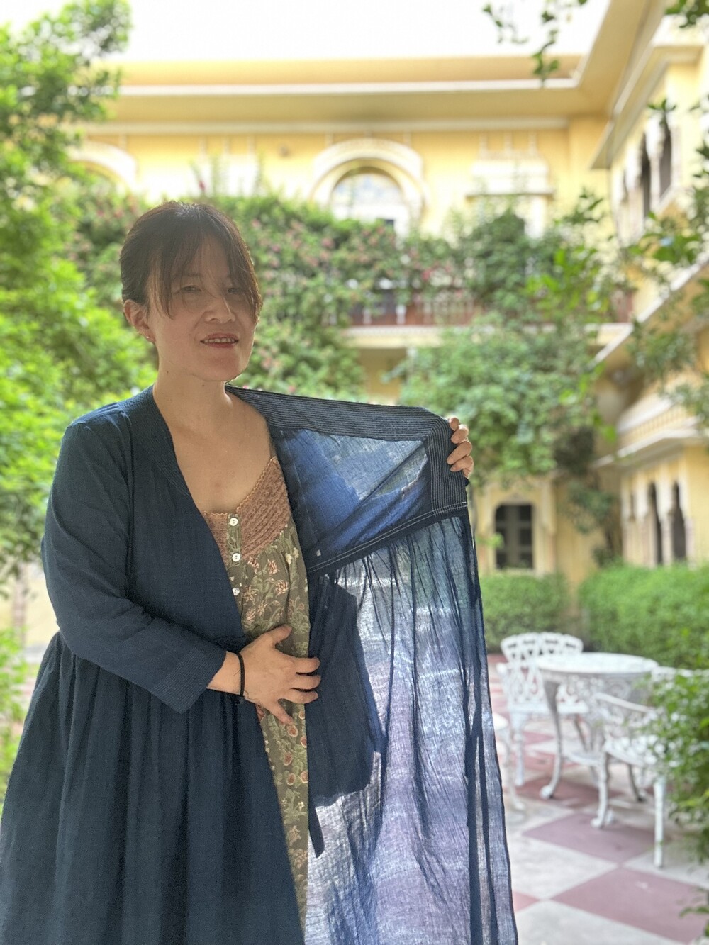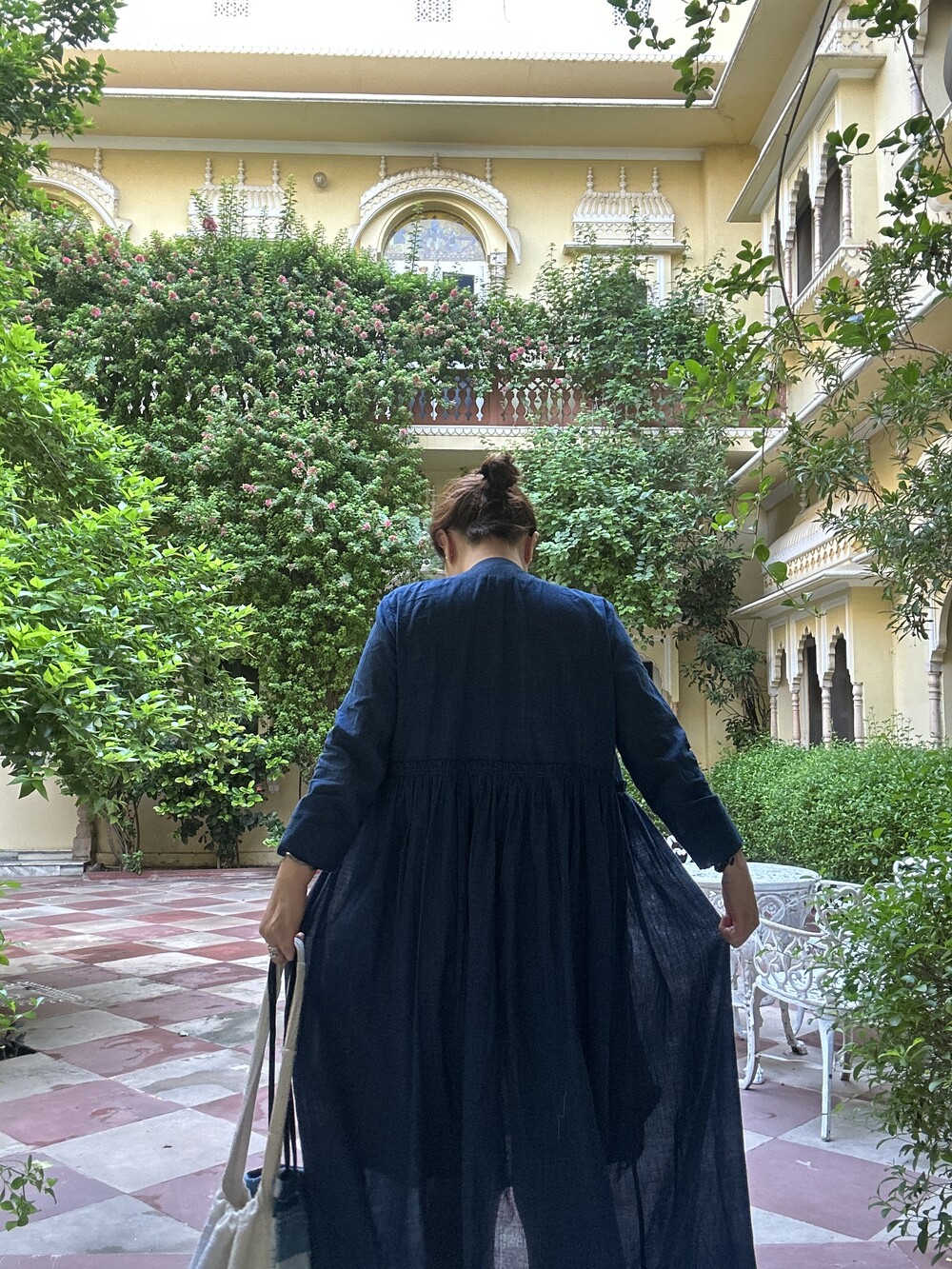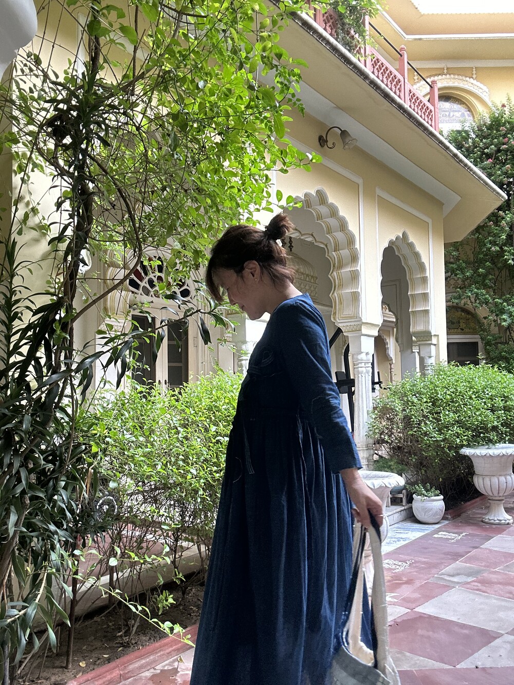 직조된 면에 인디고 염으로 그이후 자이푸르 작업자들이 바느질을 한 아름다움 공들임 드레스에요.주문후 변심힘드나 신중구매해주세요.