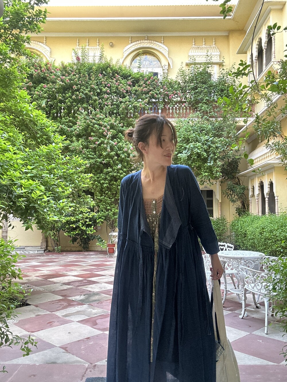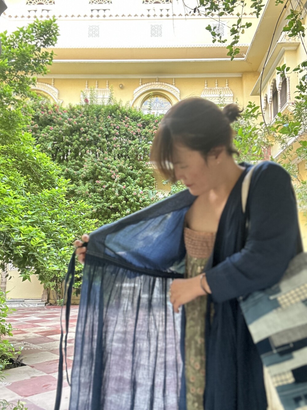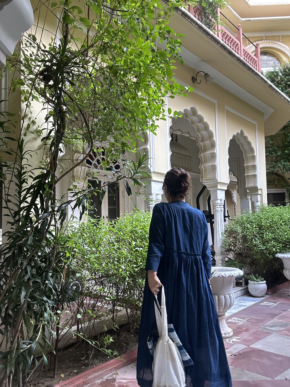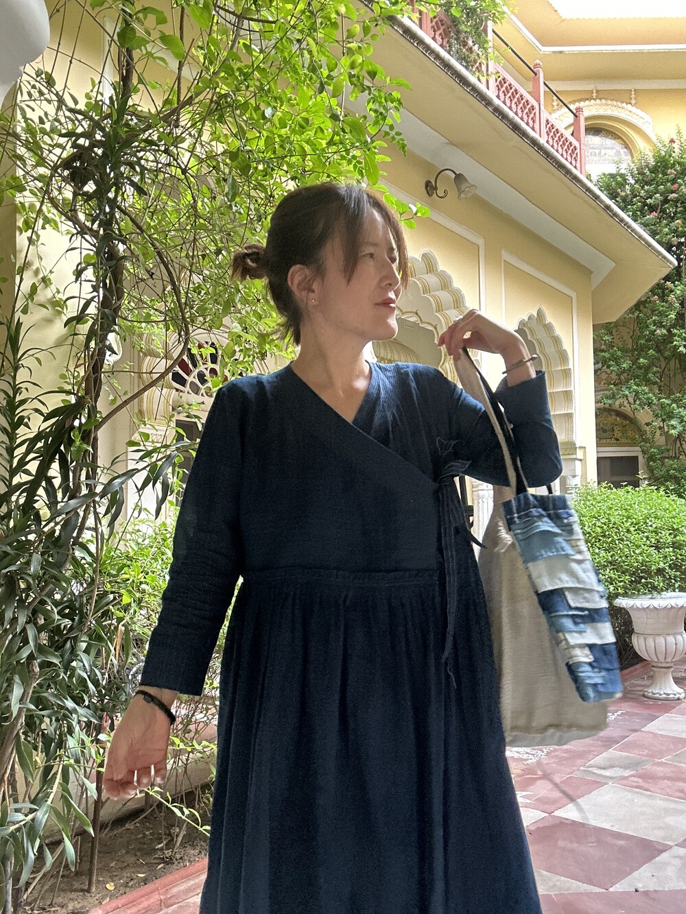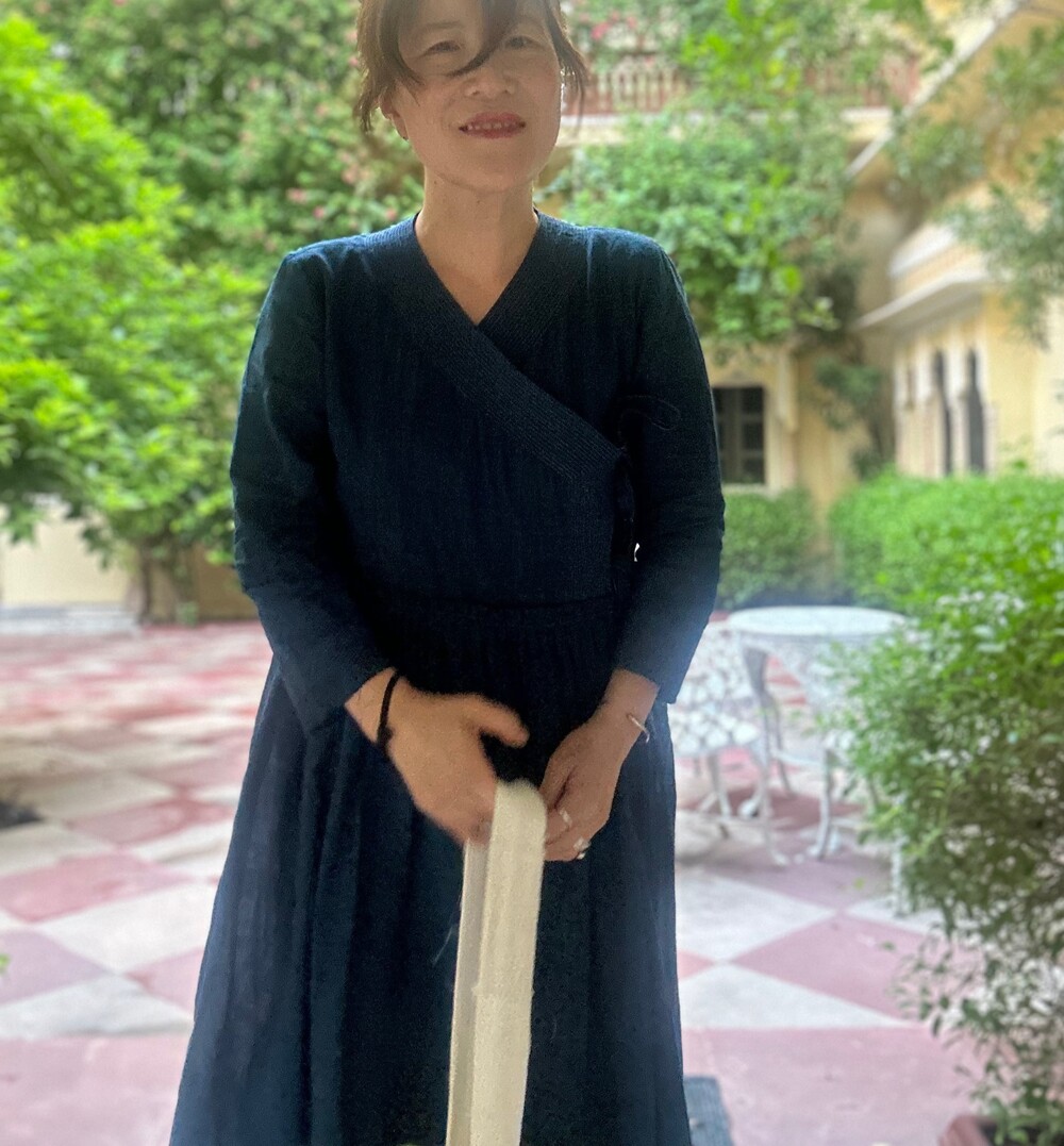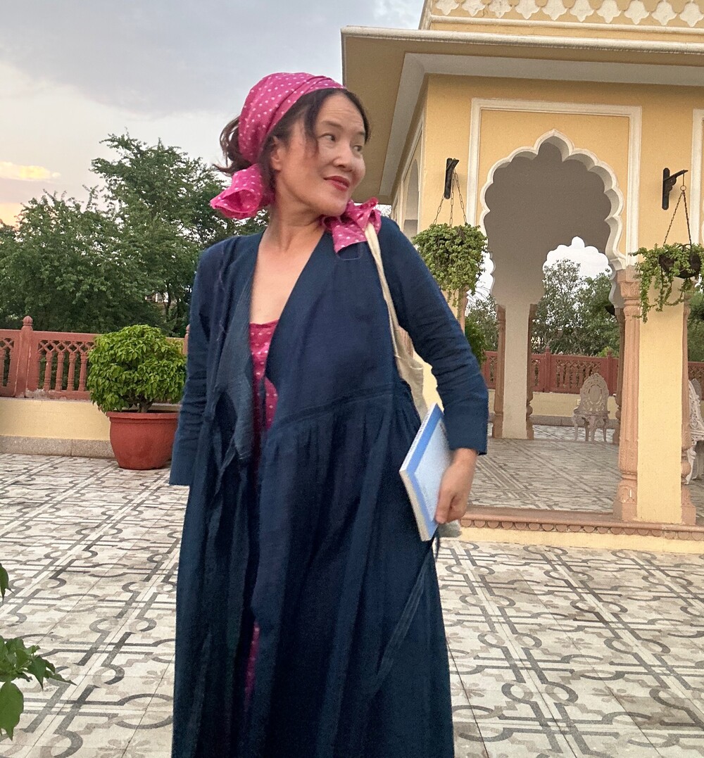 직조된 면에 인디고 염으로 그이후 자이푸르 작업자들이 바느질을 한 아름다움 공들임 드레스에요.주문후 변심힘드나 신중구매해주세요.