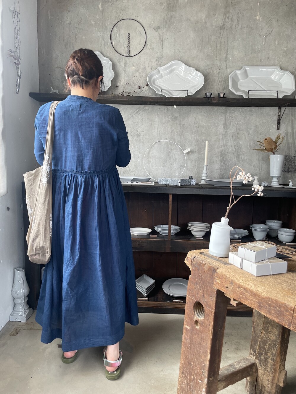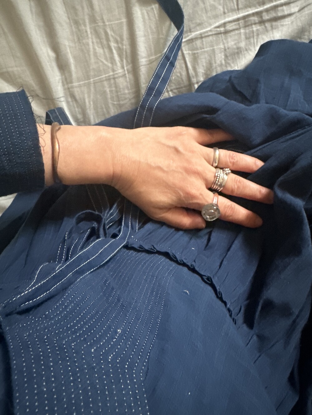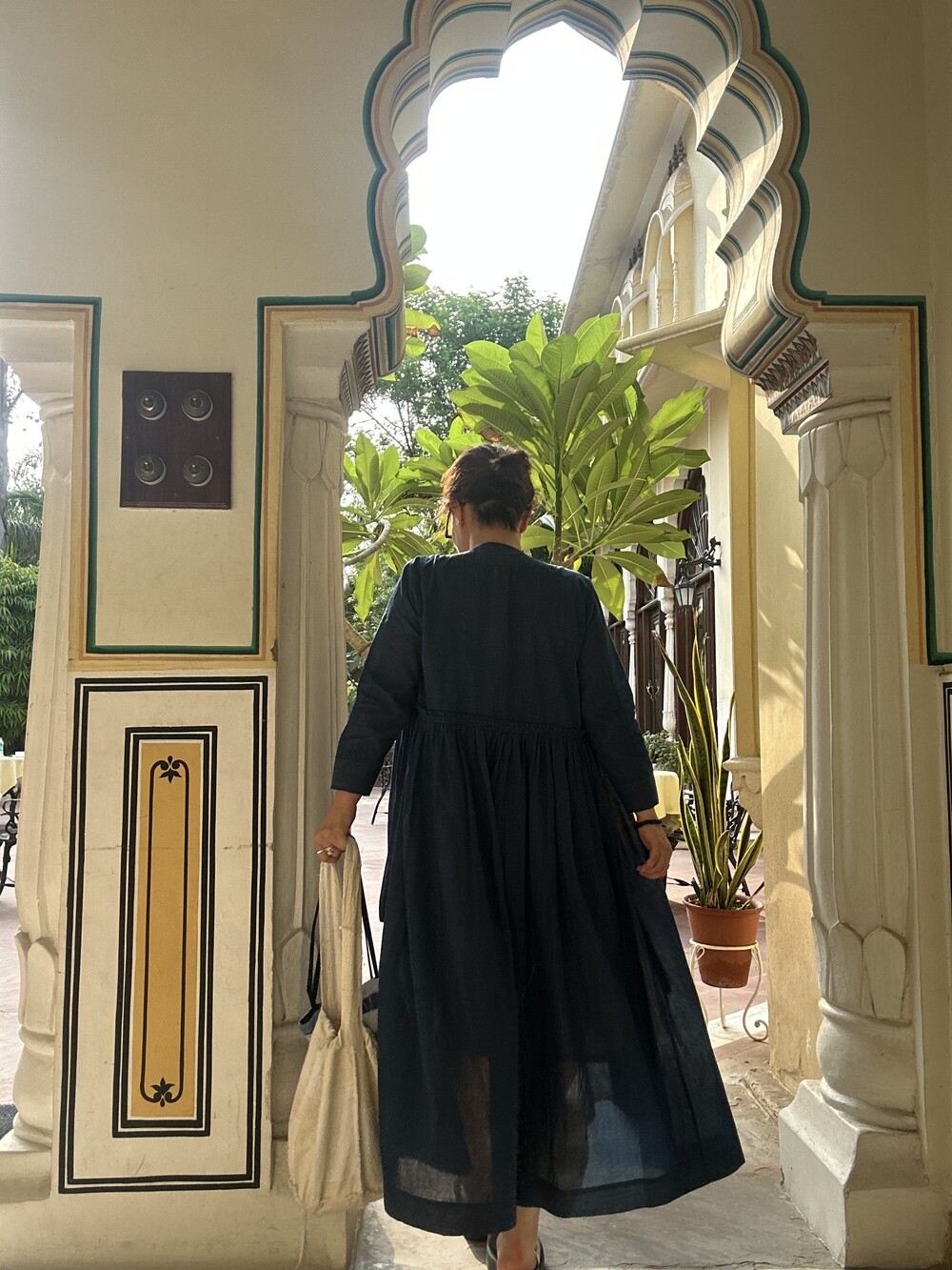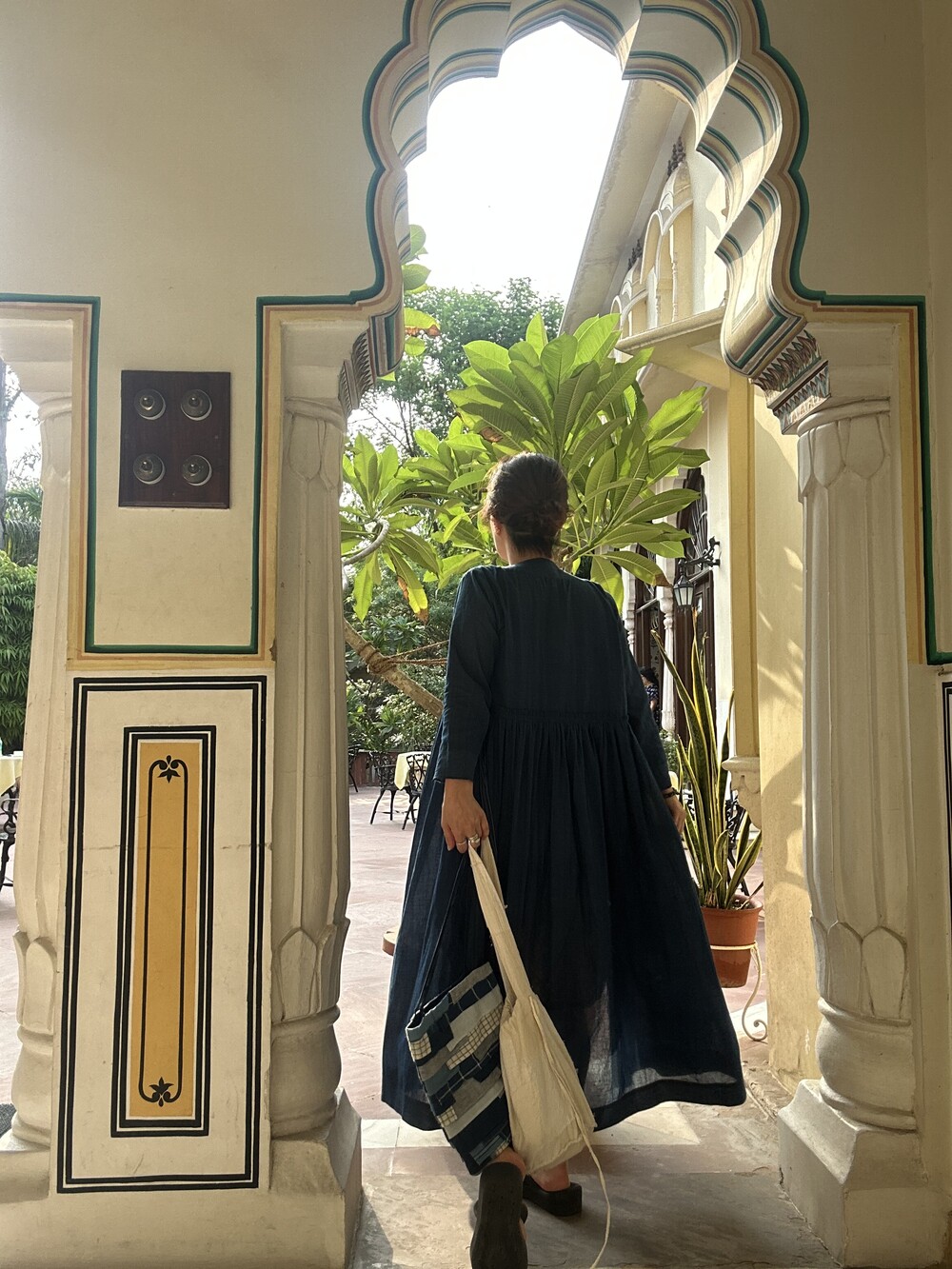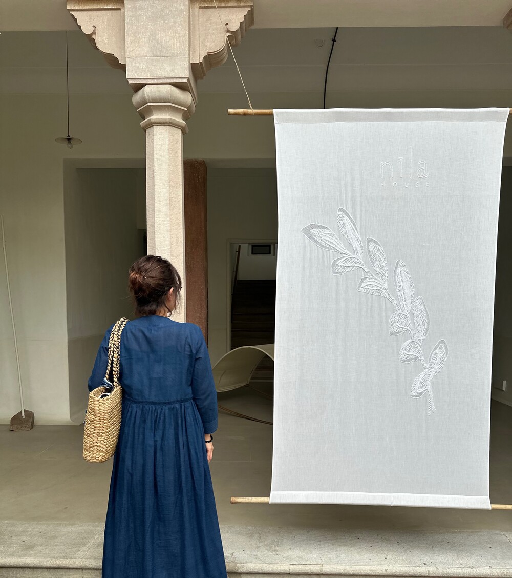직조된 면에 인디고 염으로 그이후 자이푸르 작업자들이 바느질을 한 아름다움 공들임 드레스에요.주문후 변심힘드나 신중구매해주세요.