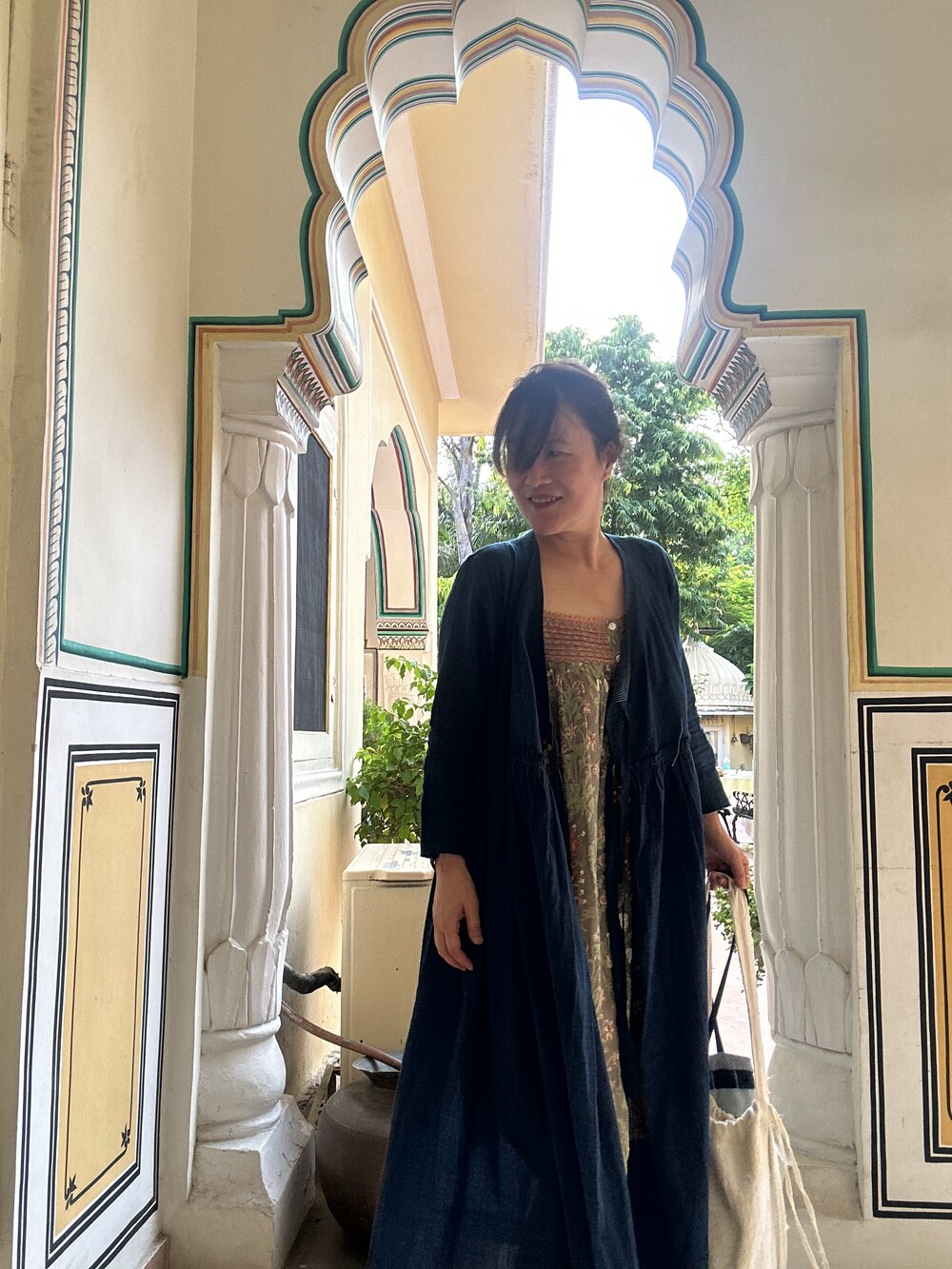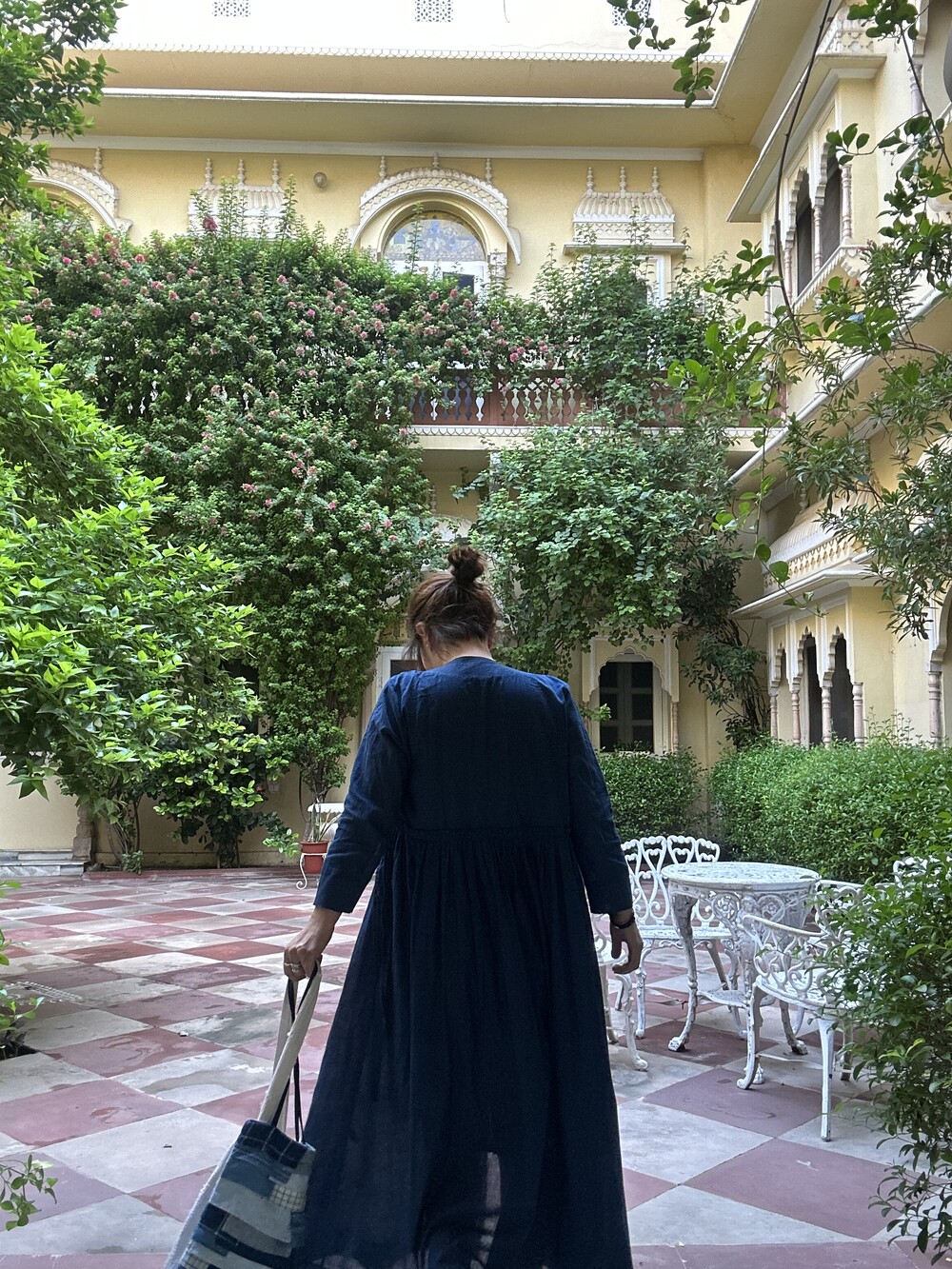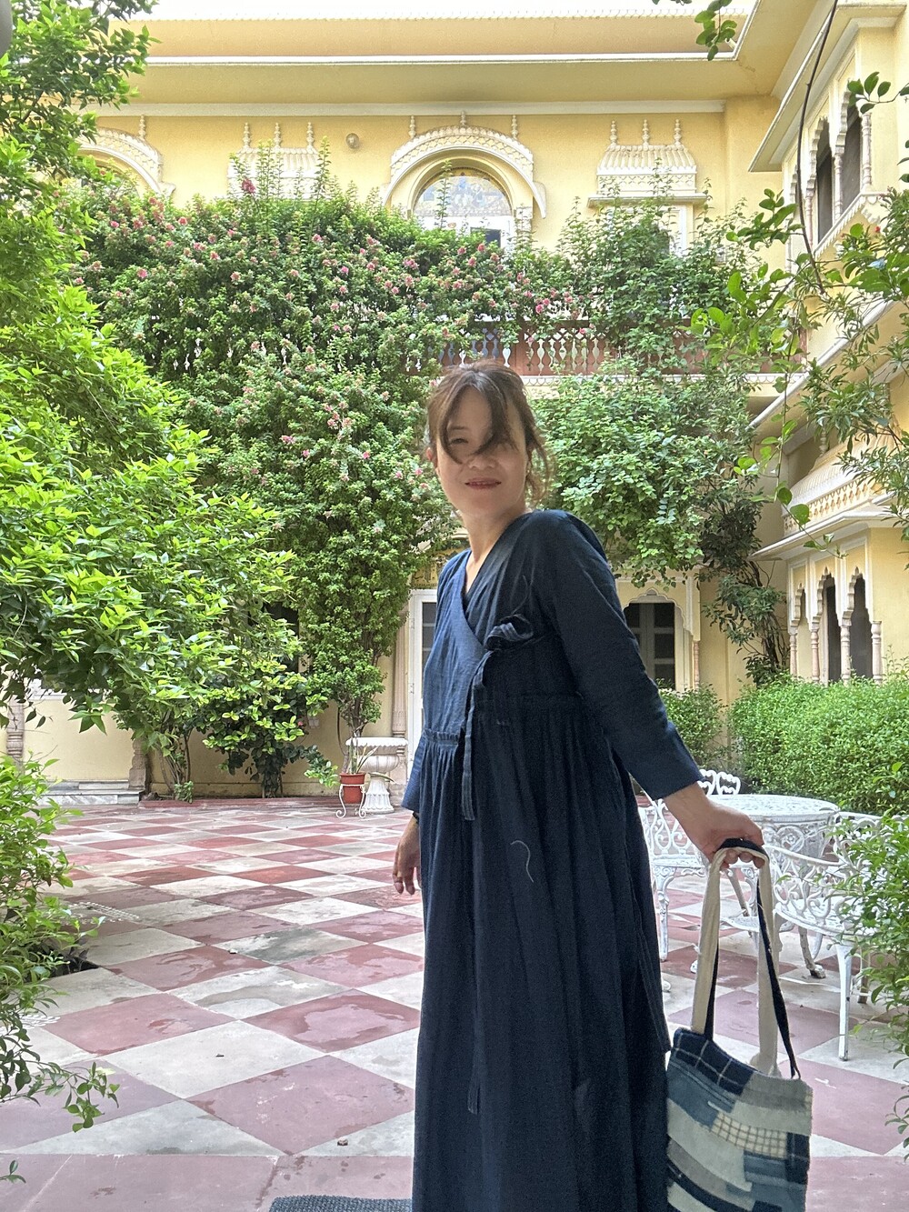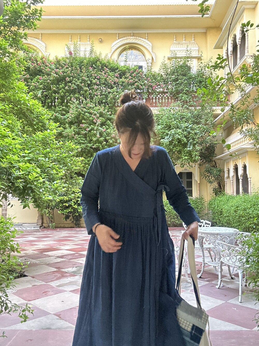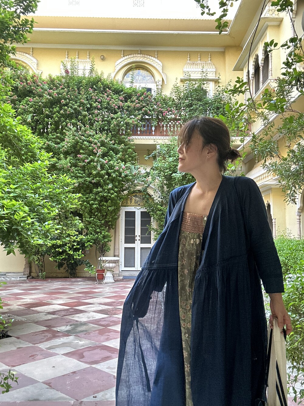 직조된 면에 인디고 염으로 그이후 자이푸르 작업자들이 바느질을 한 아름다움 공들임 드레스에요.주문후 변심힘드나 신중구매해주세요.