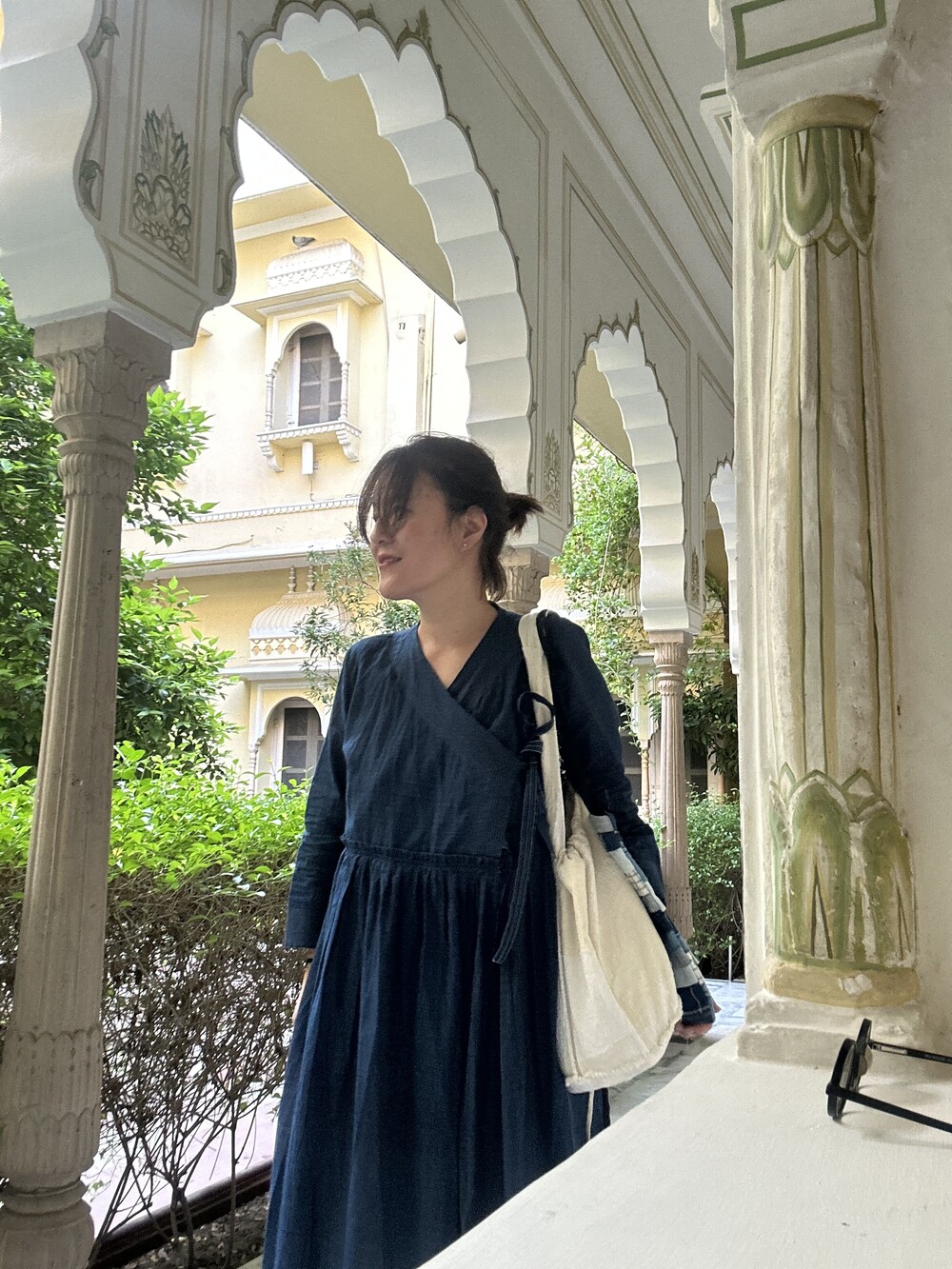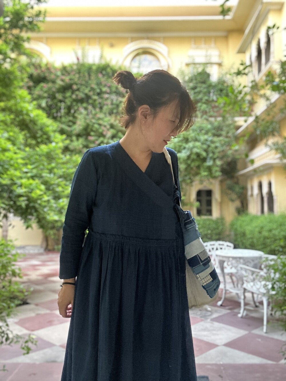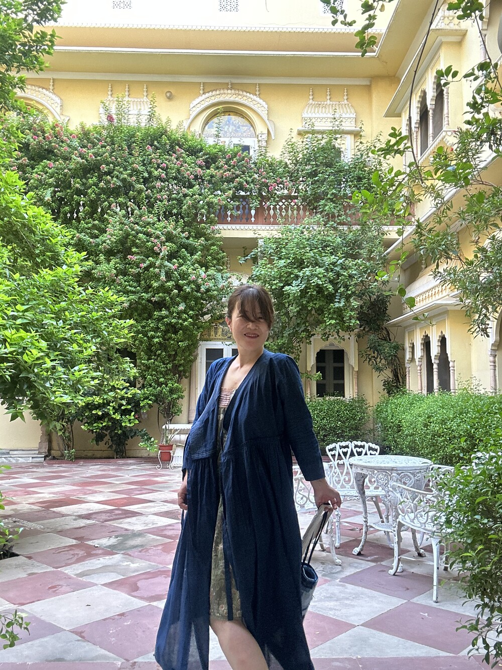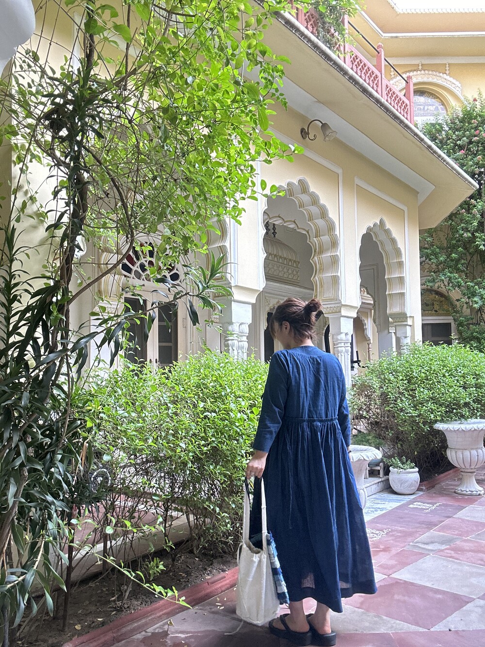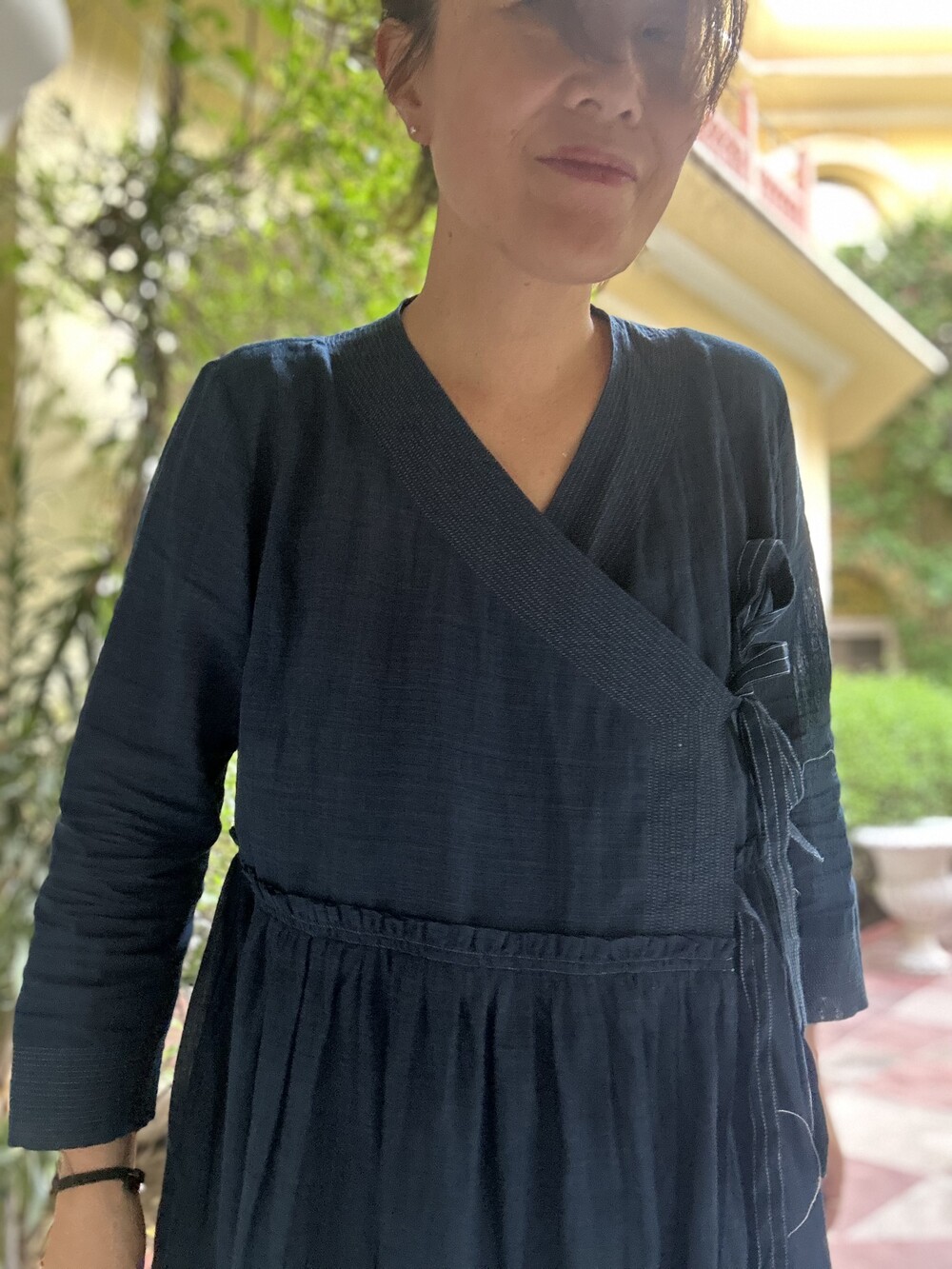 직조된 면에 인디고 염으로 그이후 자이푸르 작업자들이 바느질을 한 아름다움 공들임 드레스에요.주문후 변심힘드나 신중구매해주세요.