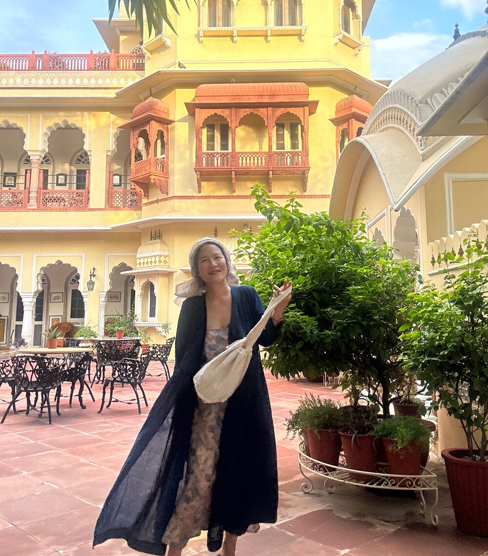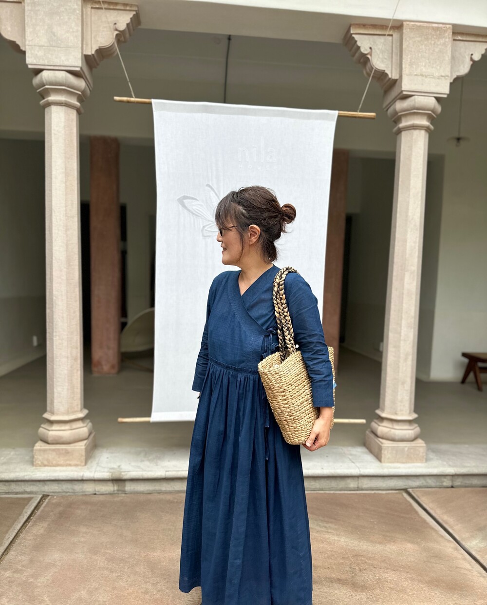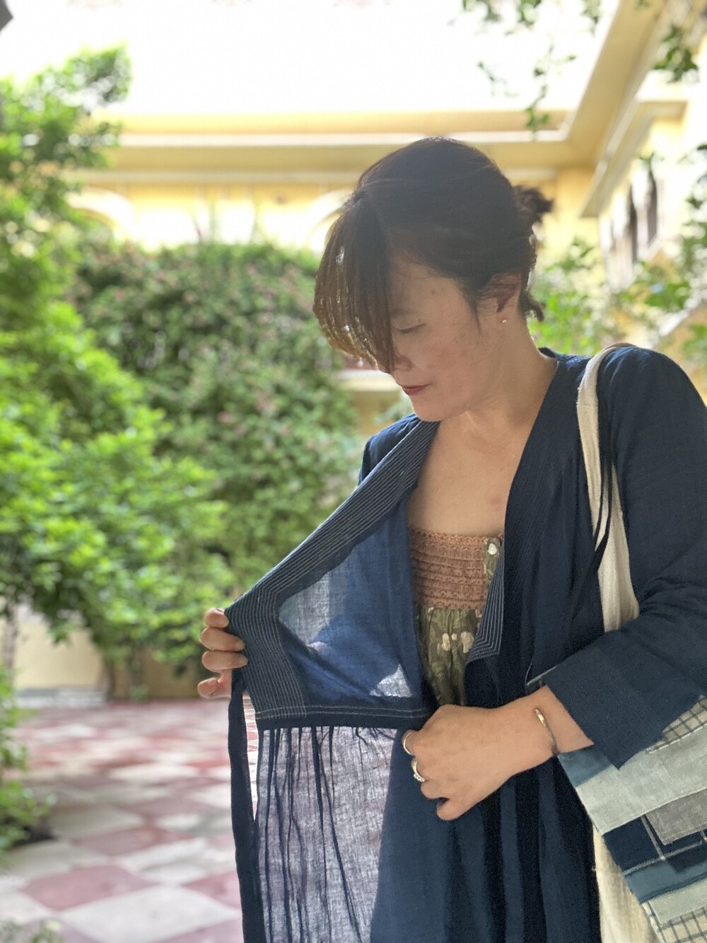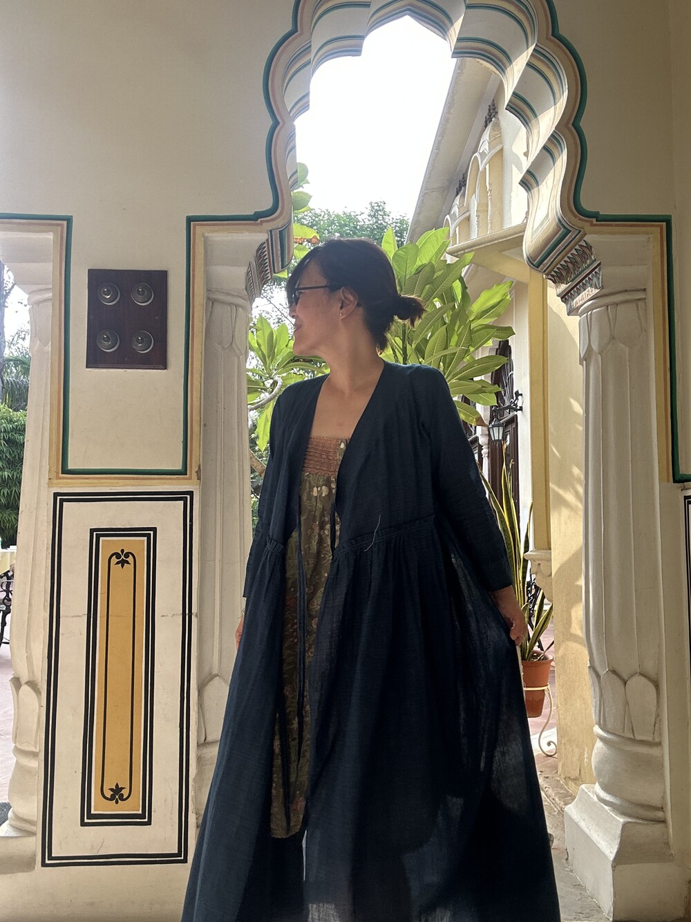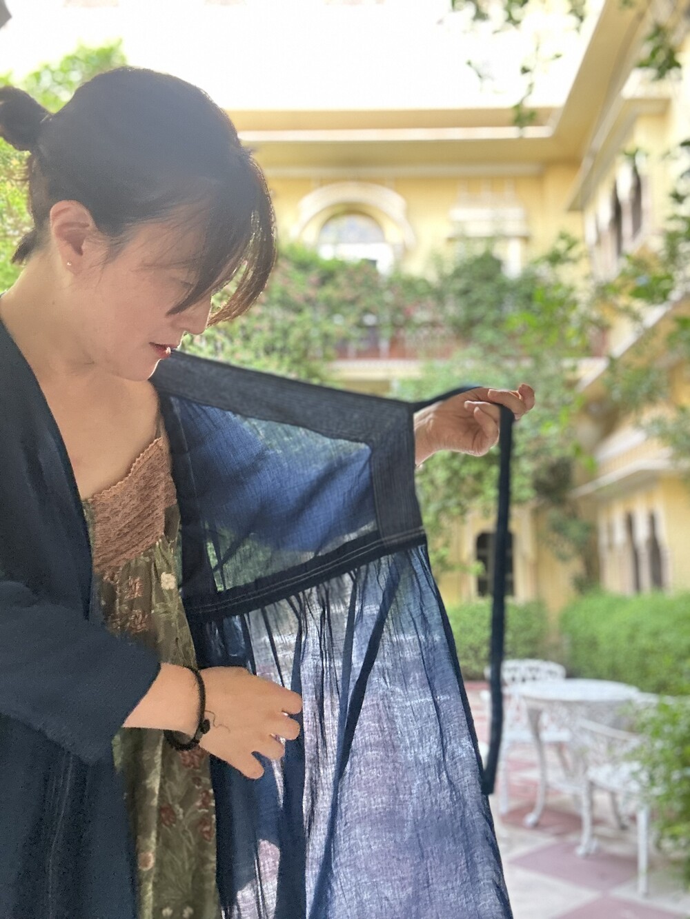 직조된 면에 인디고 염으로 그이후 자이푸르 작업자들이 바느질을 한 아름다움 공들임 드레스에요.주문후 변심힘드나 신중구매해주세요.