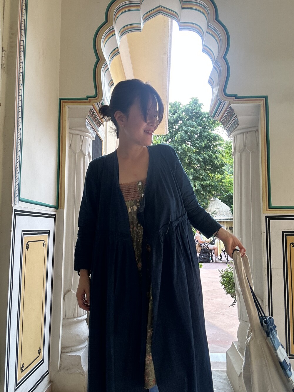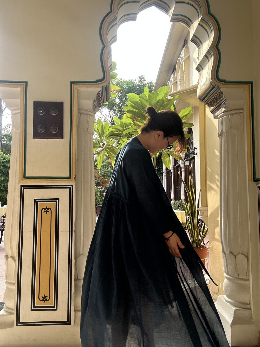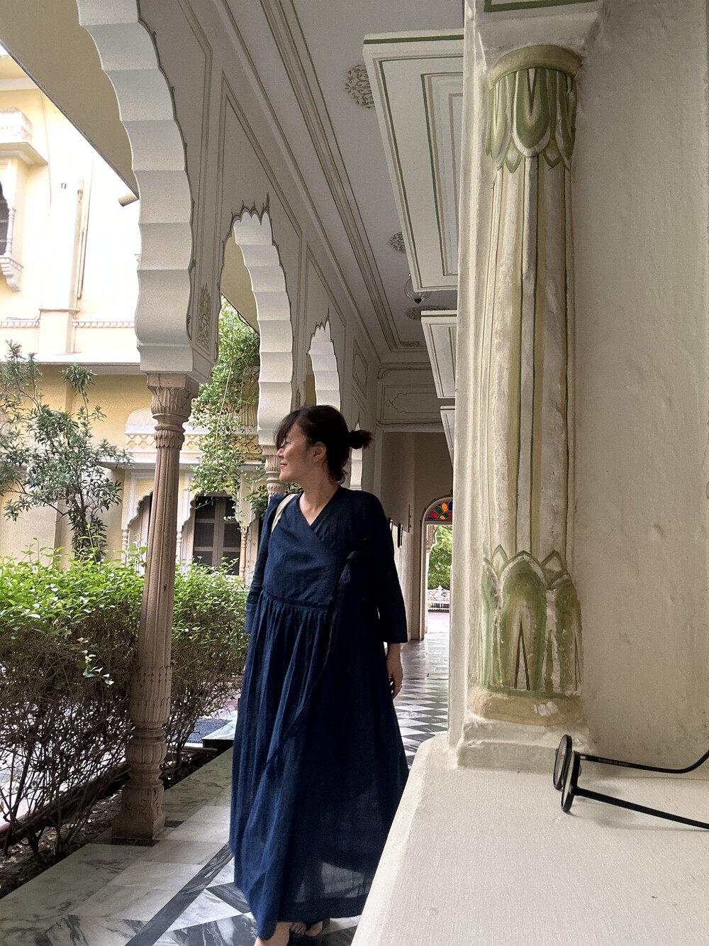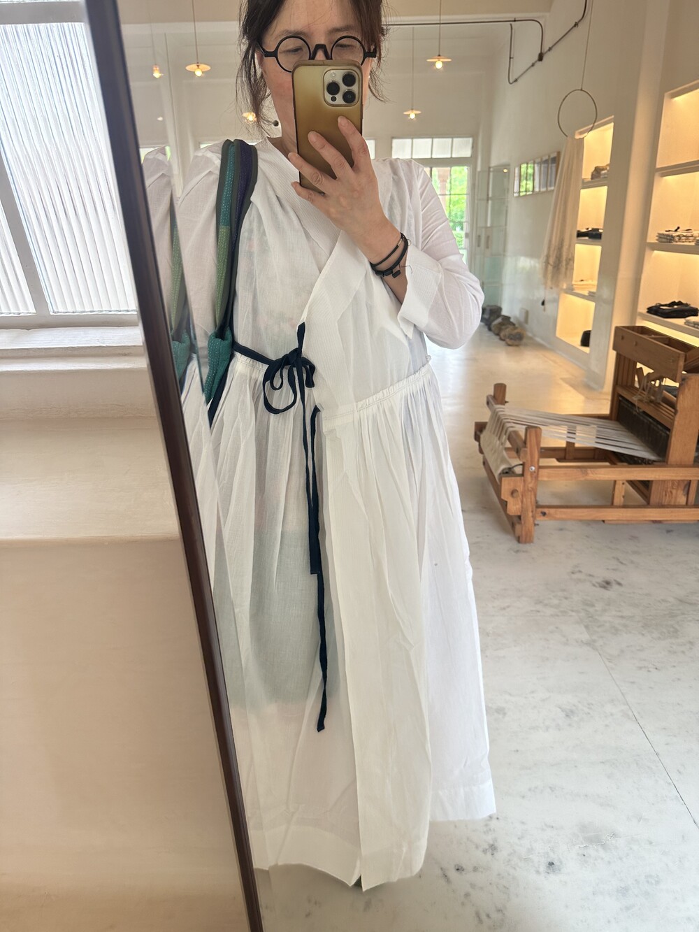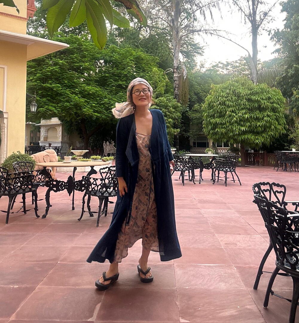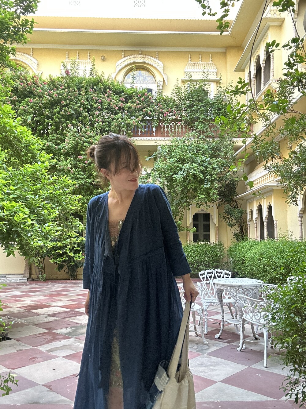직조된 면에 인디고 염으로 그이후 자이푸르 작업자들이 바느질을 한 아름다움 공들임 드레스에요.주문후 변심힘드나 신중구매해주세요.