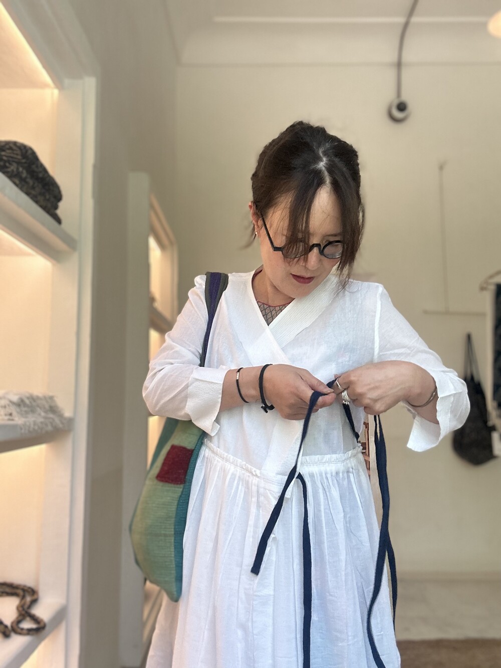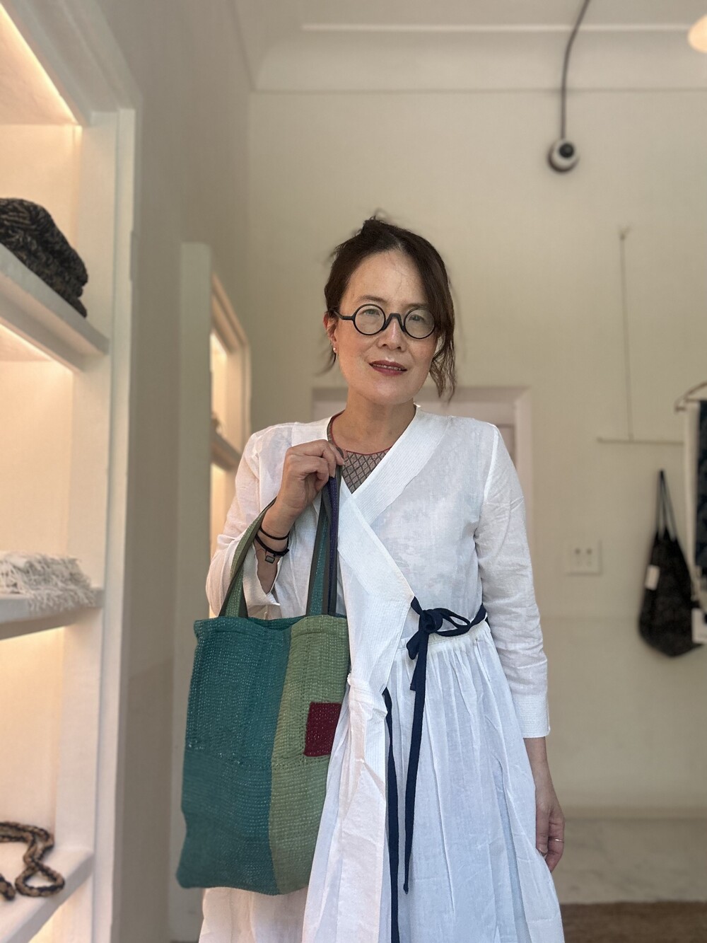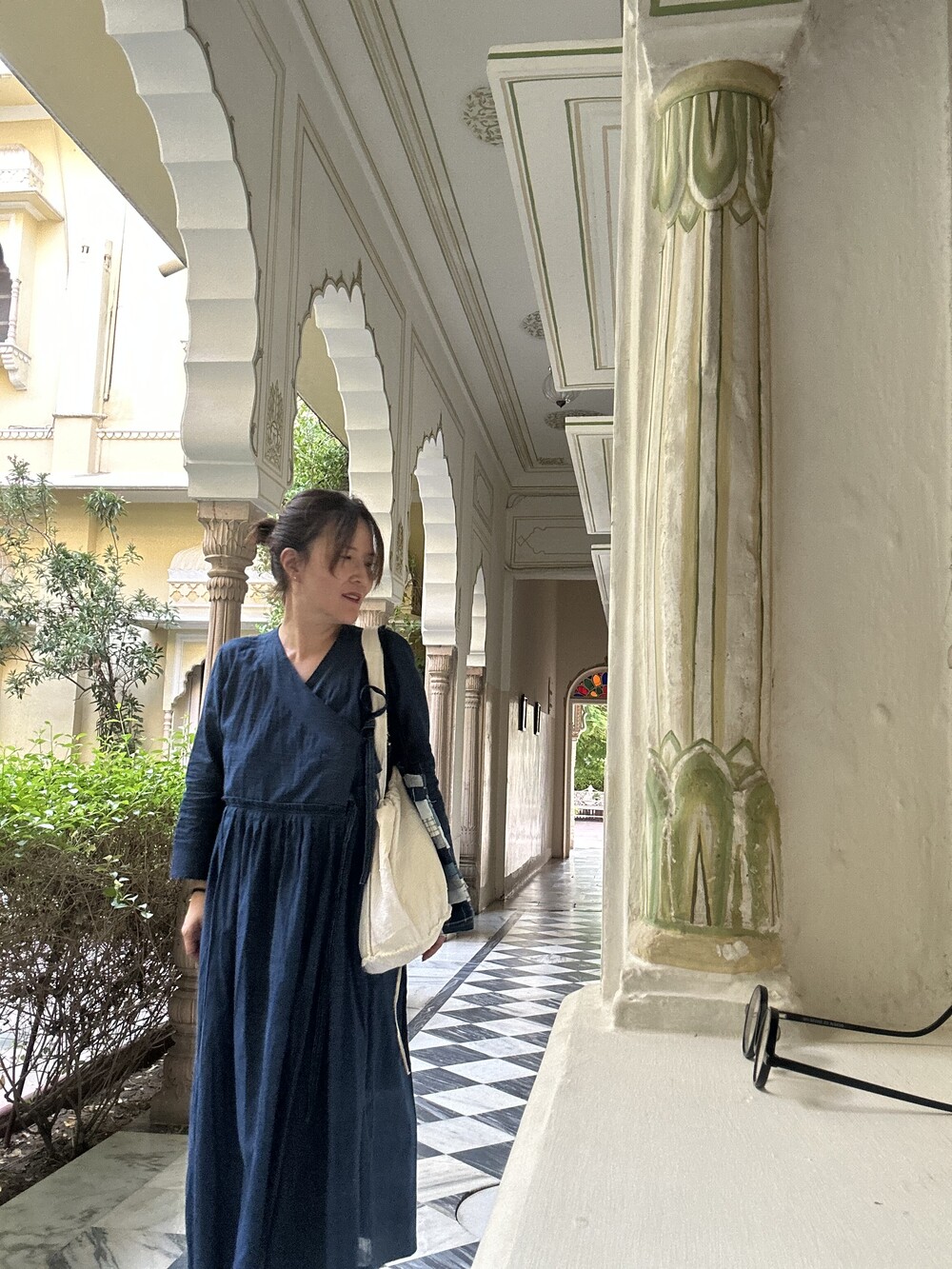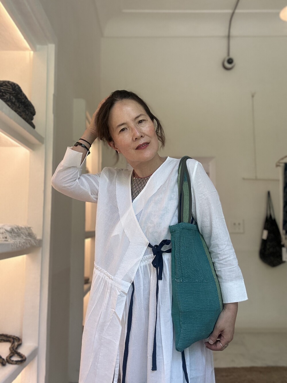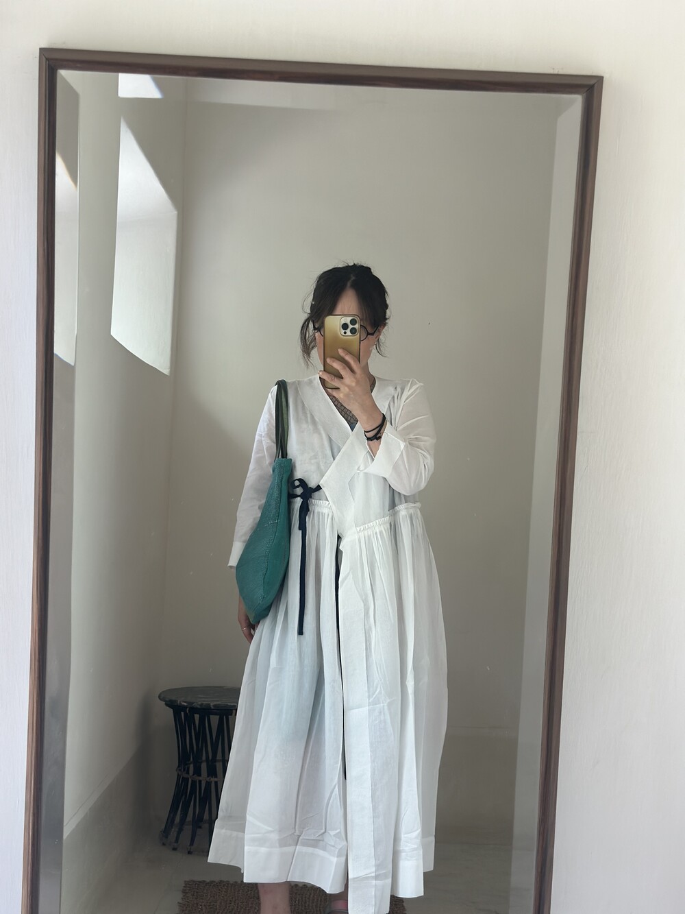 직조된 면에 인디고 염으로 그이후 자이푸르 작업자들이 바느질을 한 아름다움 공들임 드레스에요.주문후 변심힘드나 신중구매해주세요.