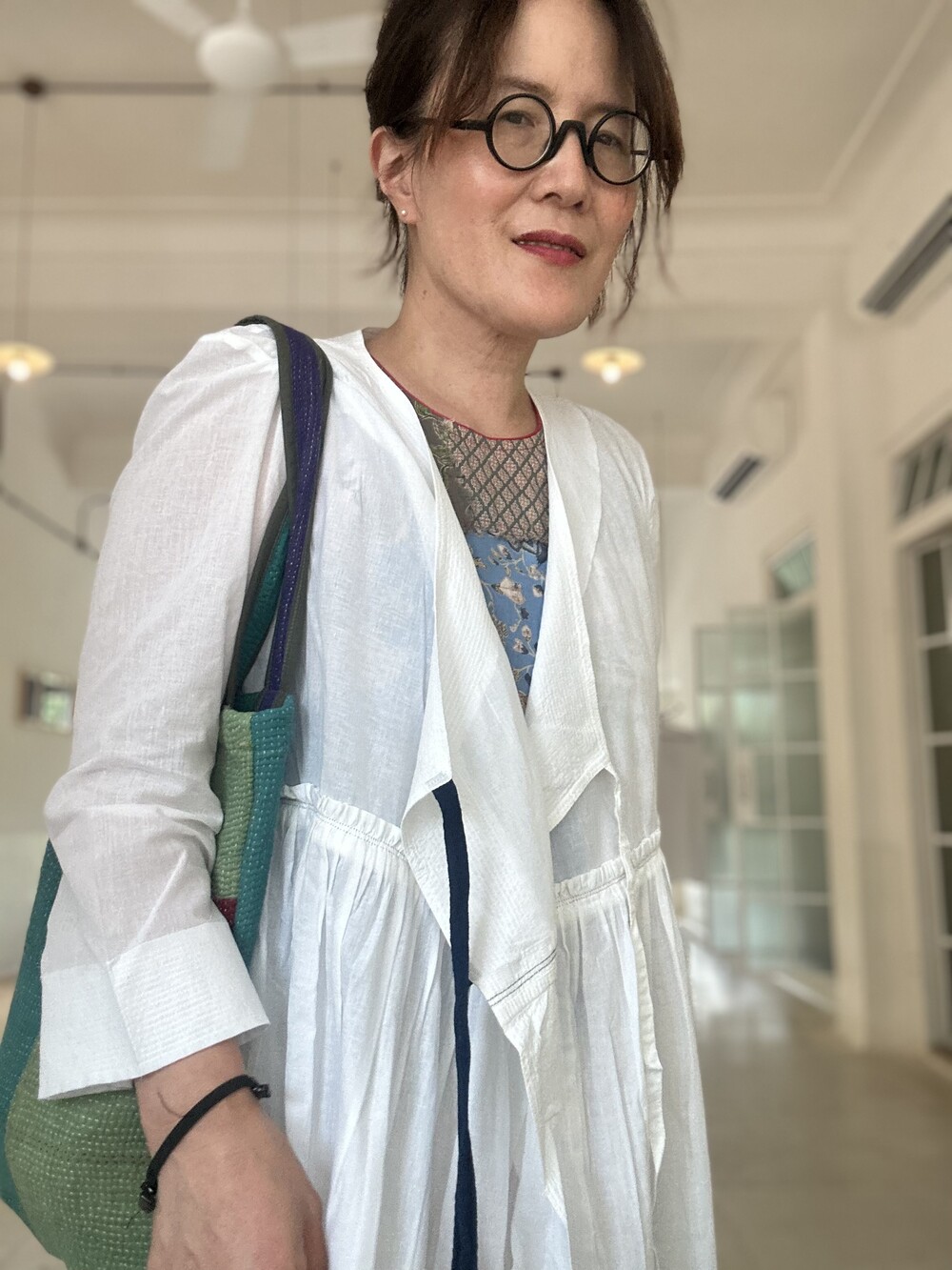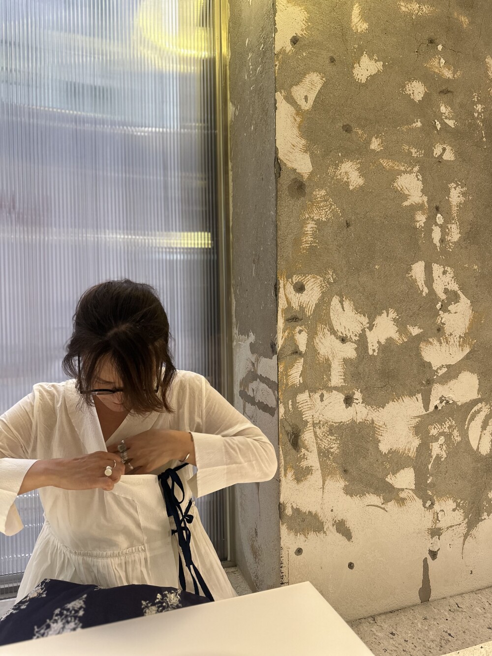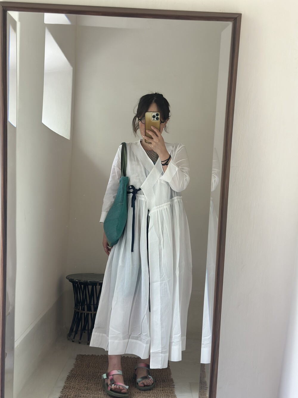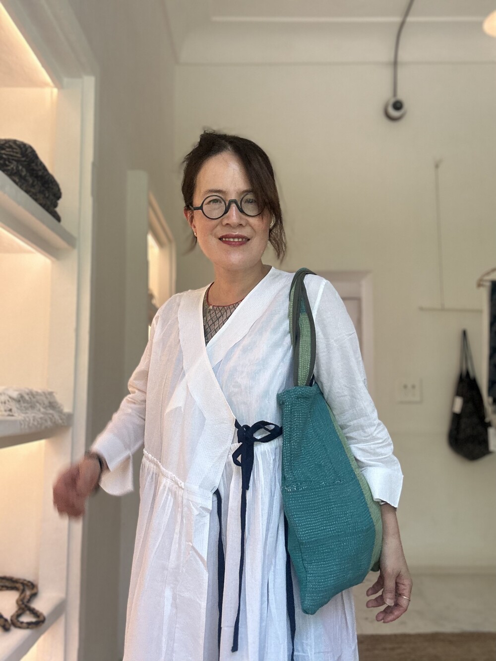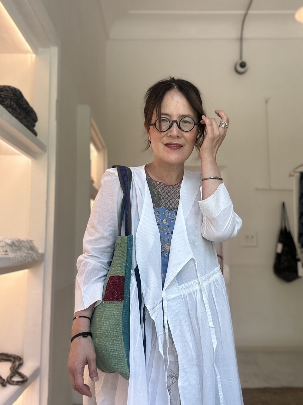 직조된 면에 인디고 염으로 그이후 자이푸르 작업자들이 바느질을 한 아름다움 공들임 드레스에요.주문후 변심힘드나 신중구매해주세요.