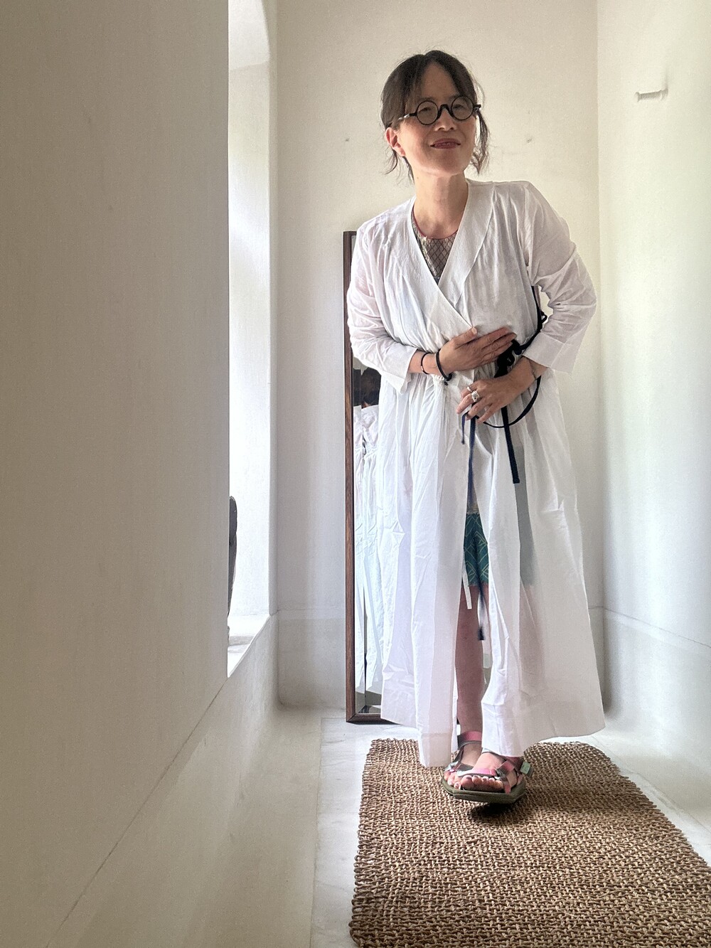 두가지 사이즈로 진행되며 사주반정도 소요되는 아름다움과 정성의 옷입니다.원피스로도 좋지만 로브처럼 오픈해서 입으셔도 좋아요,자켓처럼.
