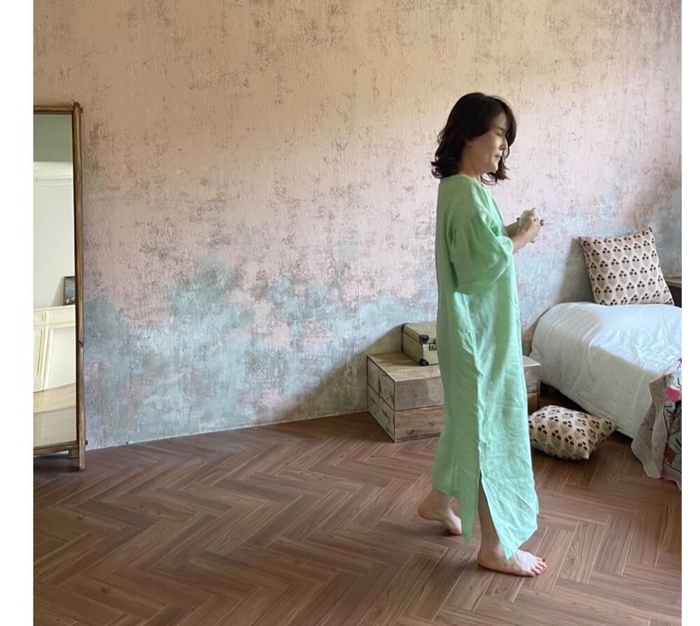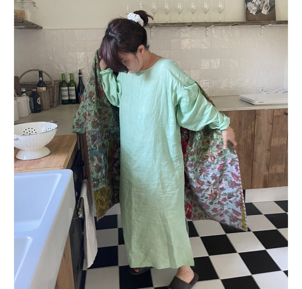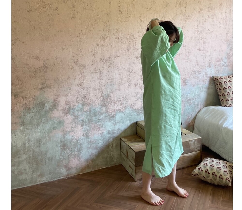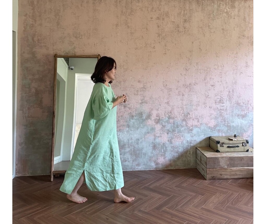 가슴둘레 58(반폭) 기장120의 편안한 디자인의 힌넨드레스에요. 이주반예상됩니다!
