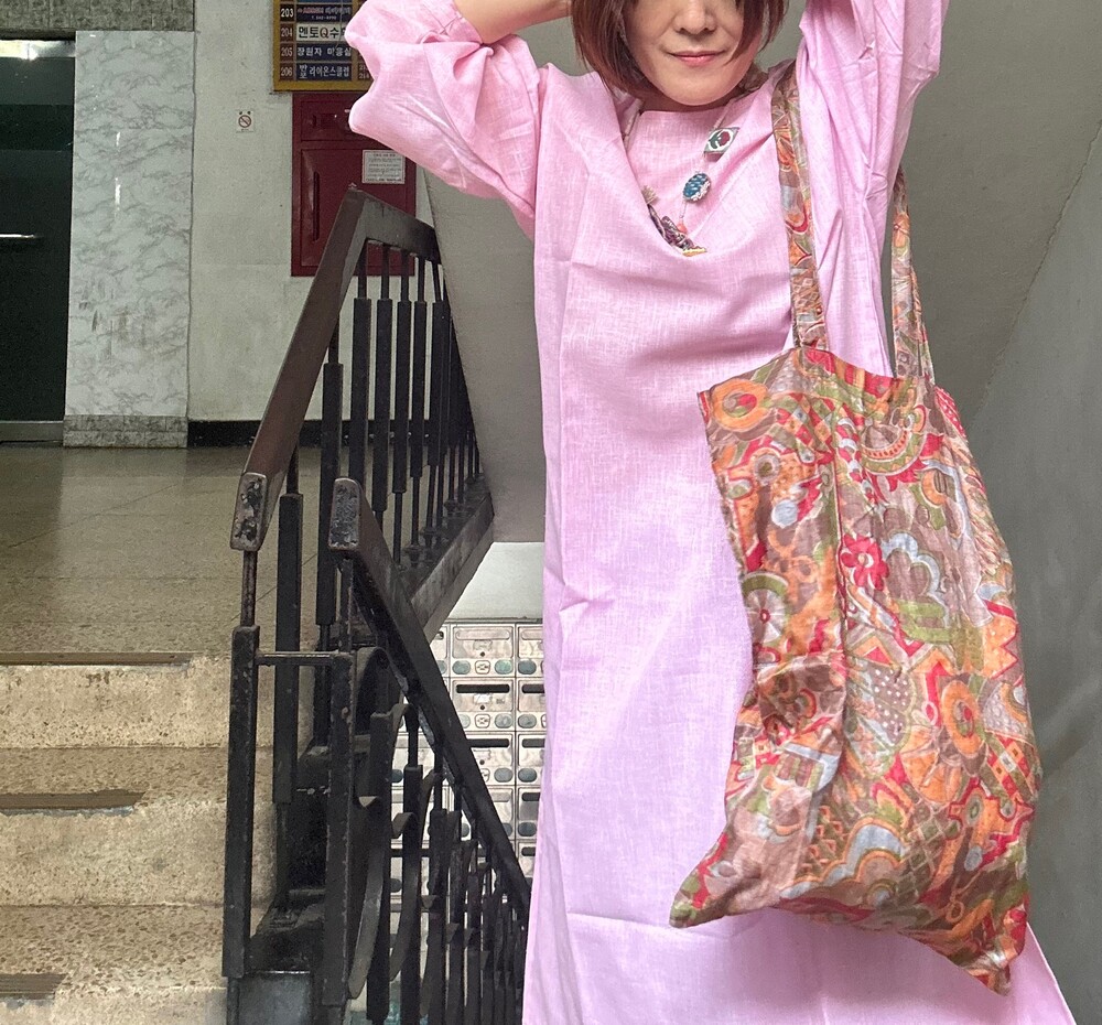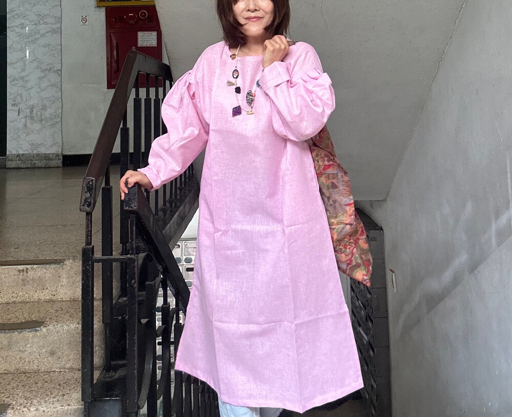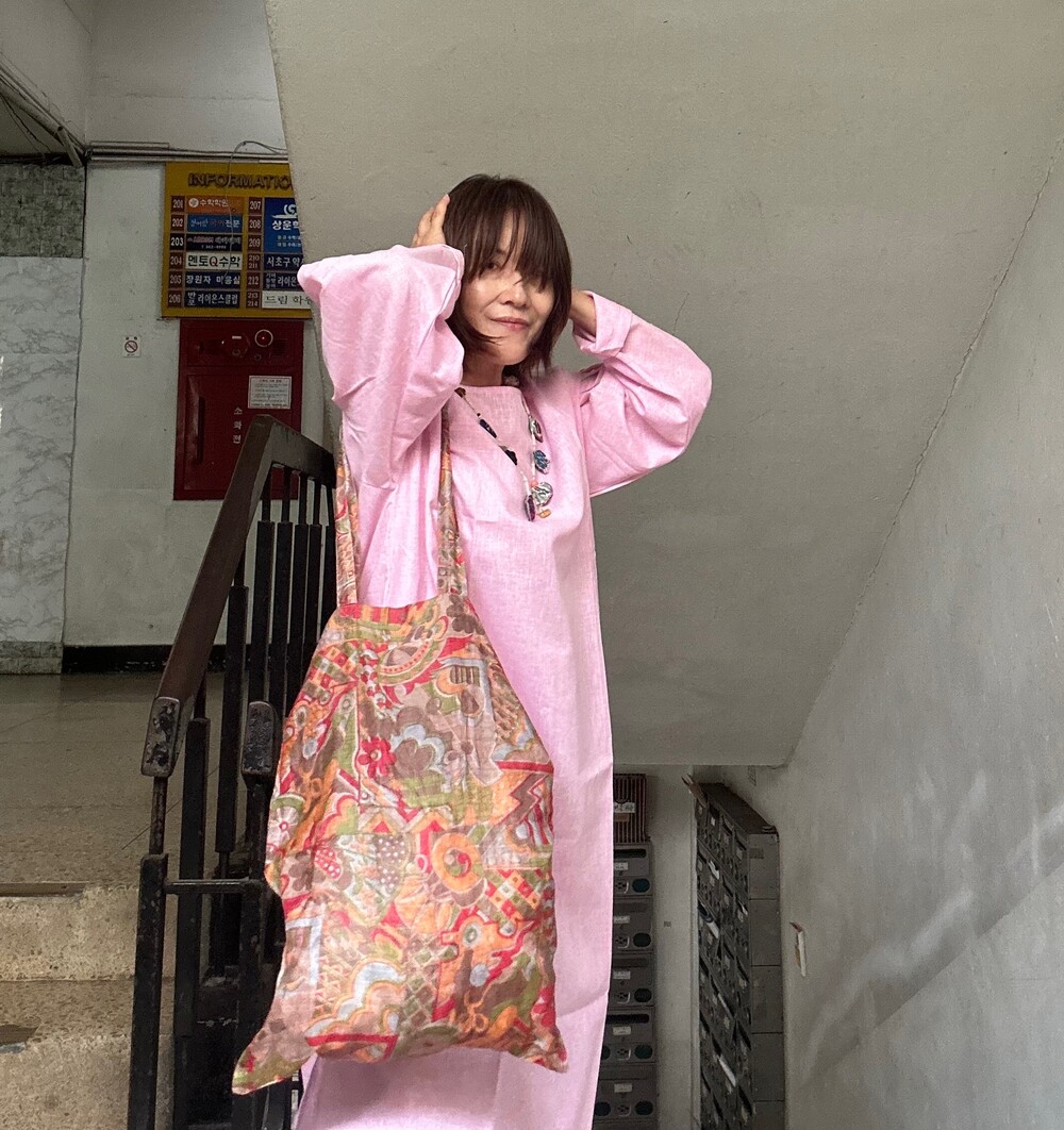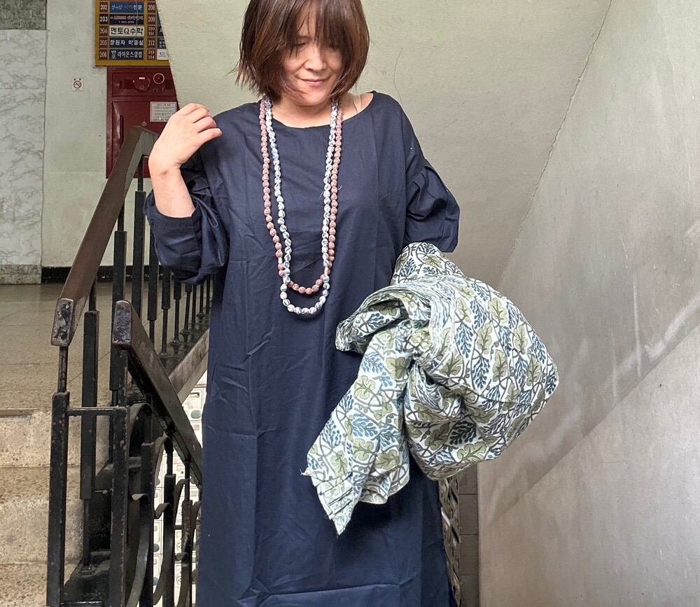 가슴둘레 58(반폭) 기장120의 편안한 디자인의 힌넨드레스에요. 이주반예상됩니다!