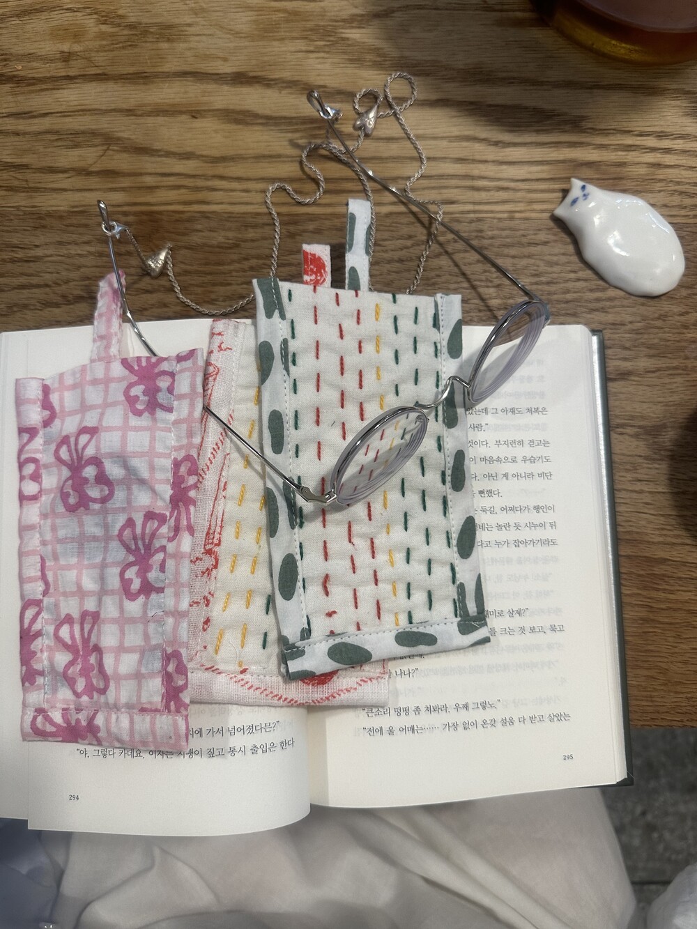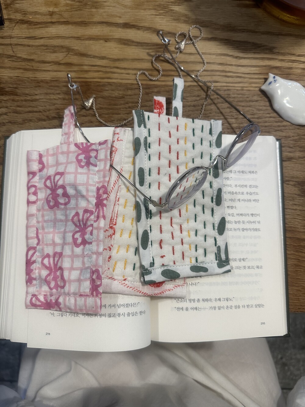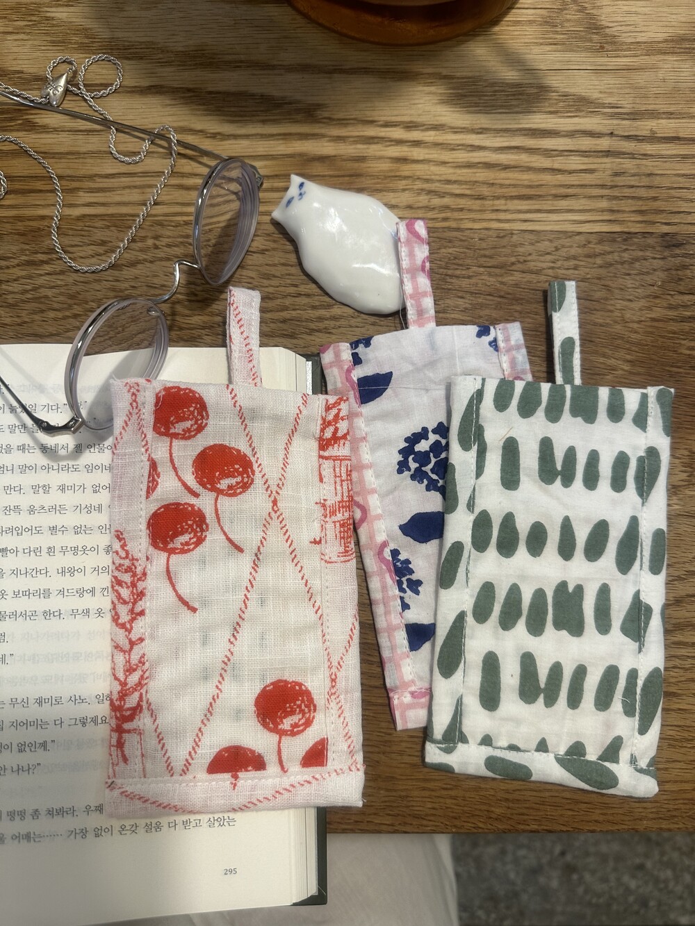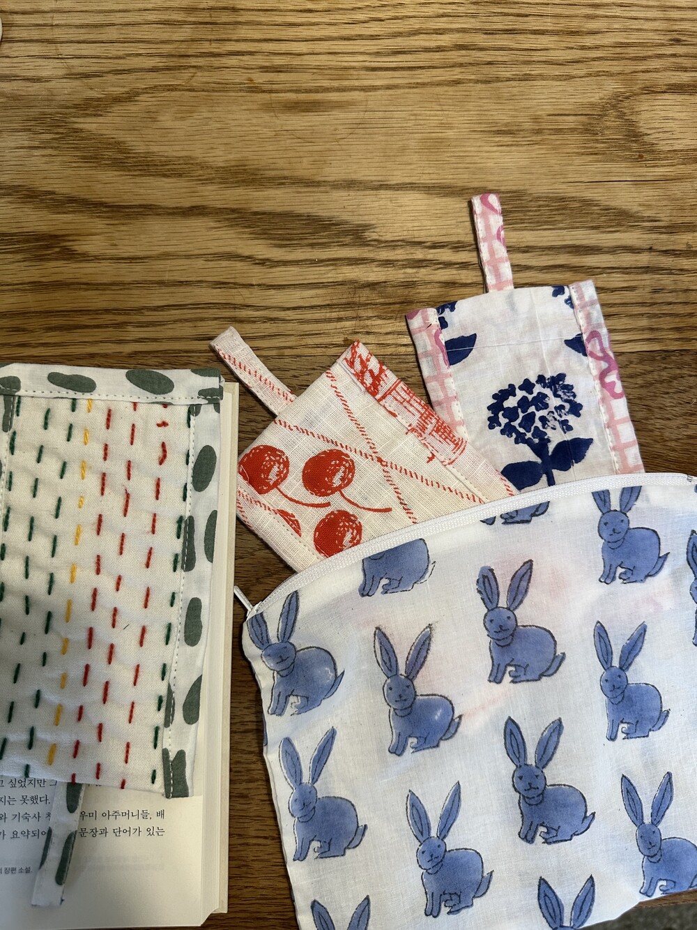 책갈피 3종과 지퍼 파우치 샛트.책갈피는 랜덤이에요.